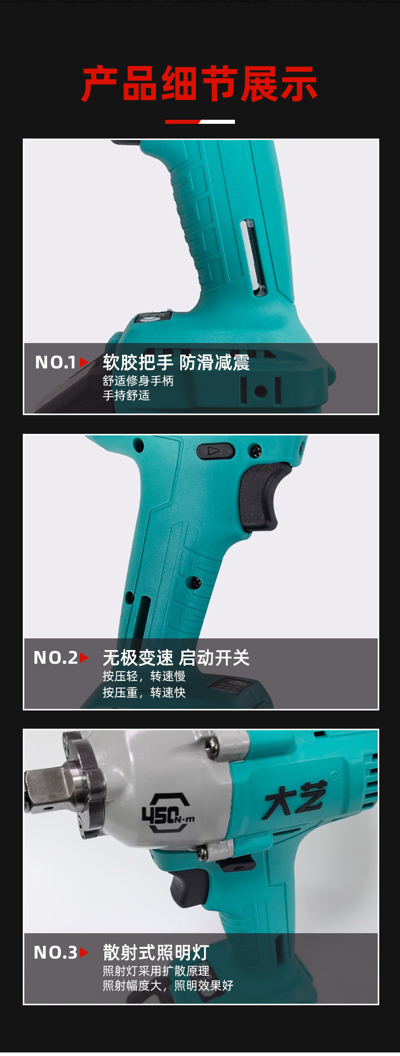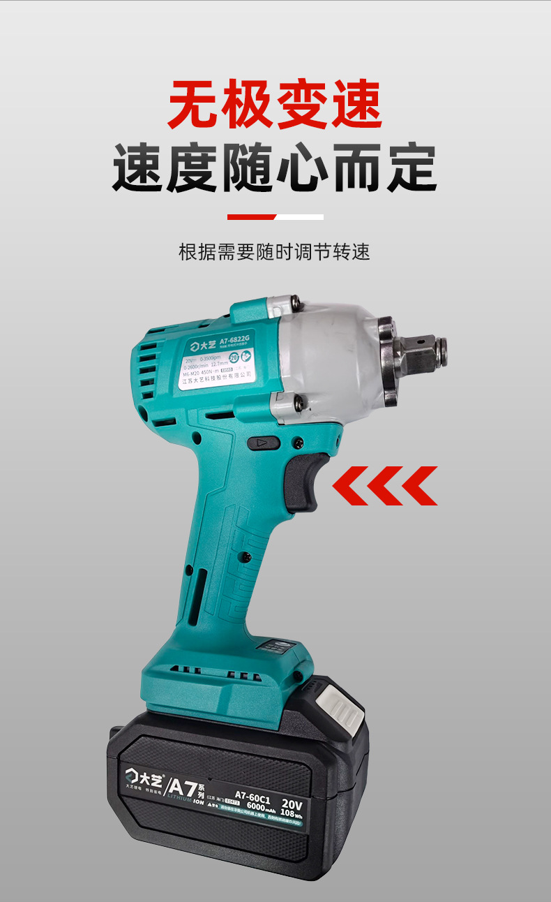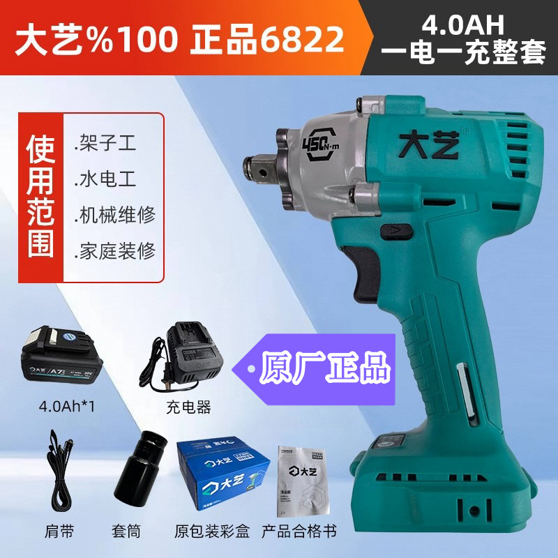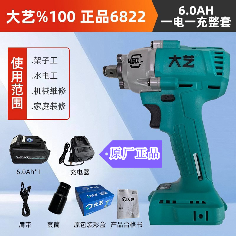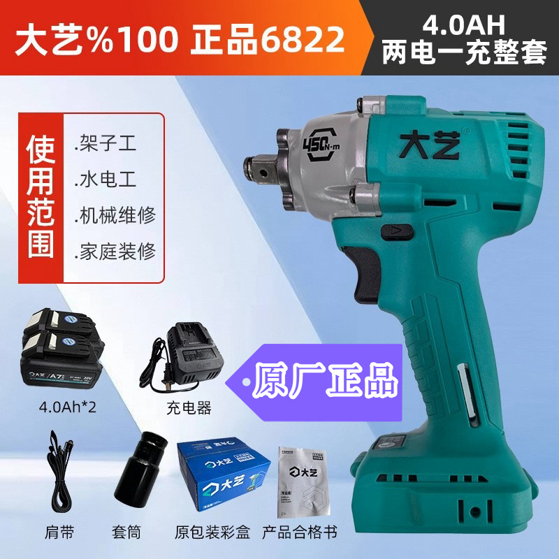 正品大艺450电动扳手A7-6822G无刷大扭力汽修架子冲击套筒电板手