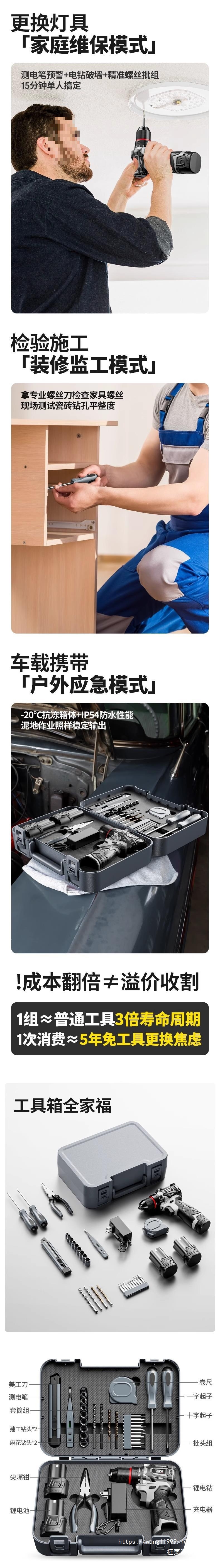 手电钻无刷锂电手钻电动螺丝刀大功率大钢炮锂电池工具套装