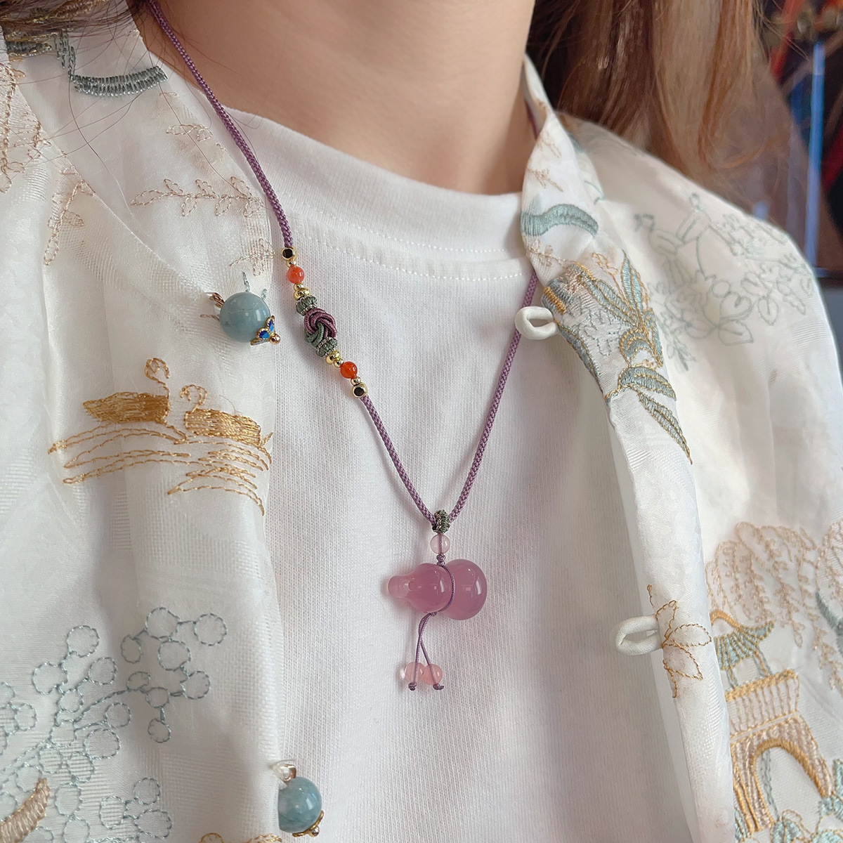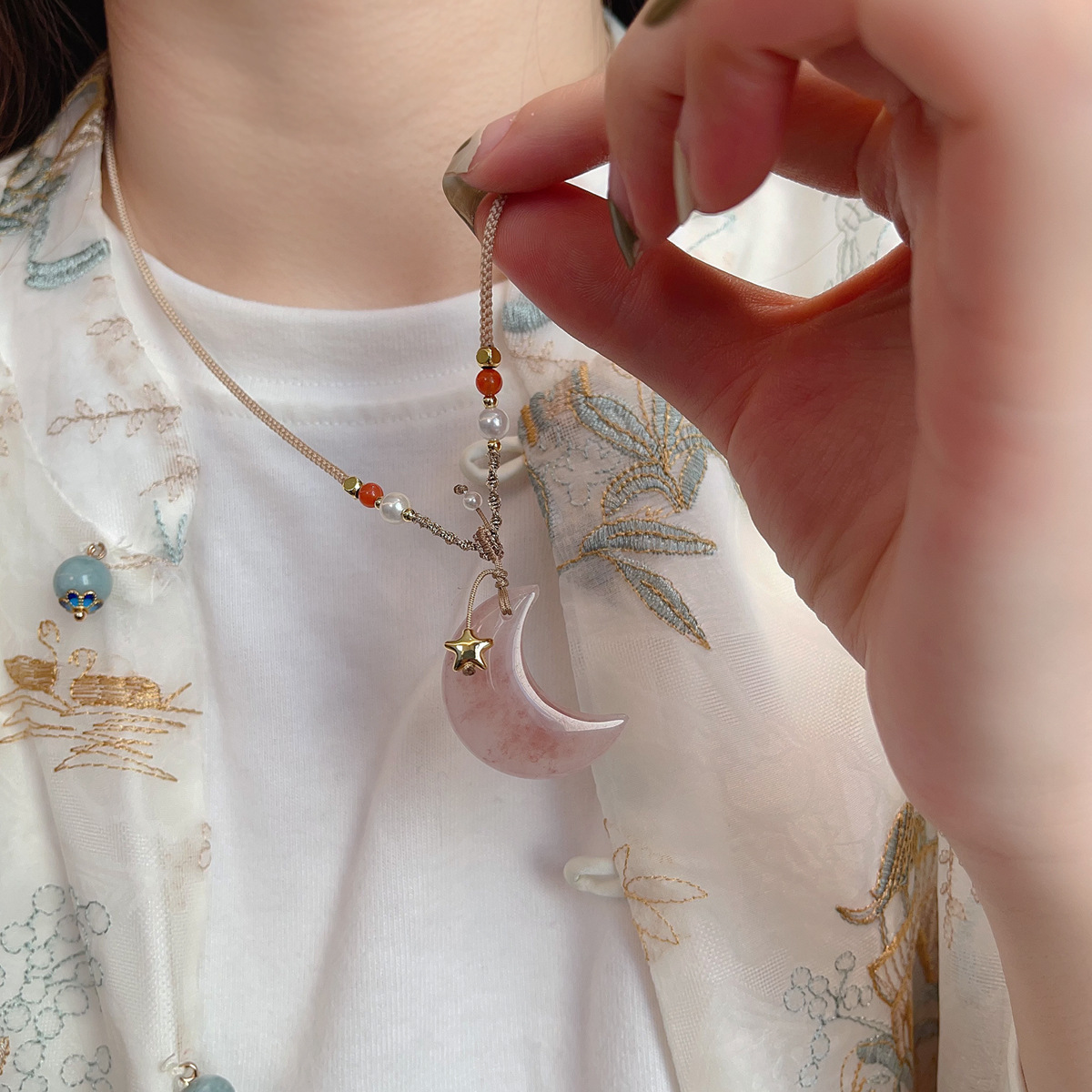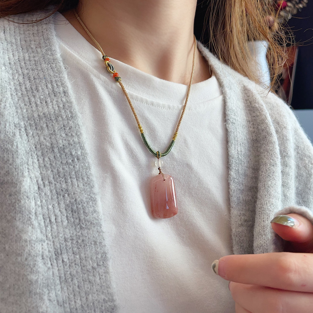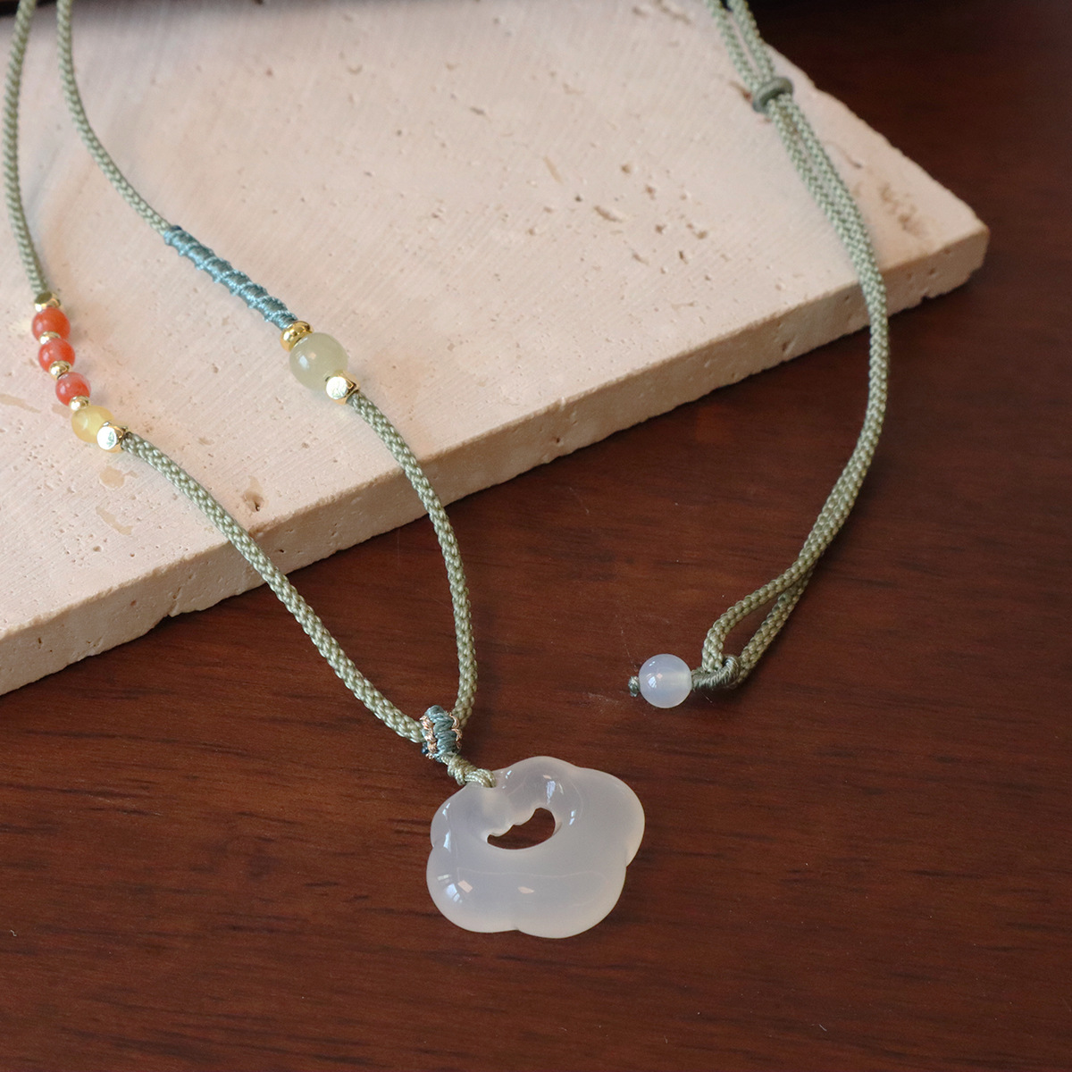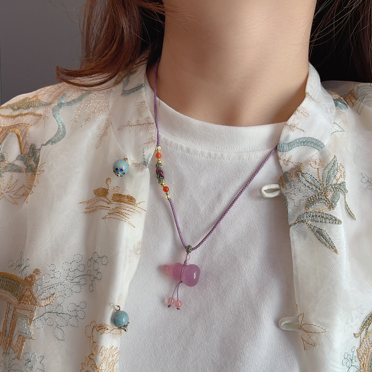 批发新中式天然石项链抽拉可调节锁骨链ins网红博主长款毛衣链