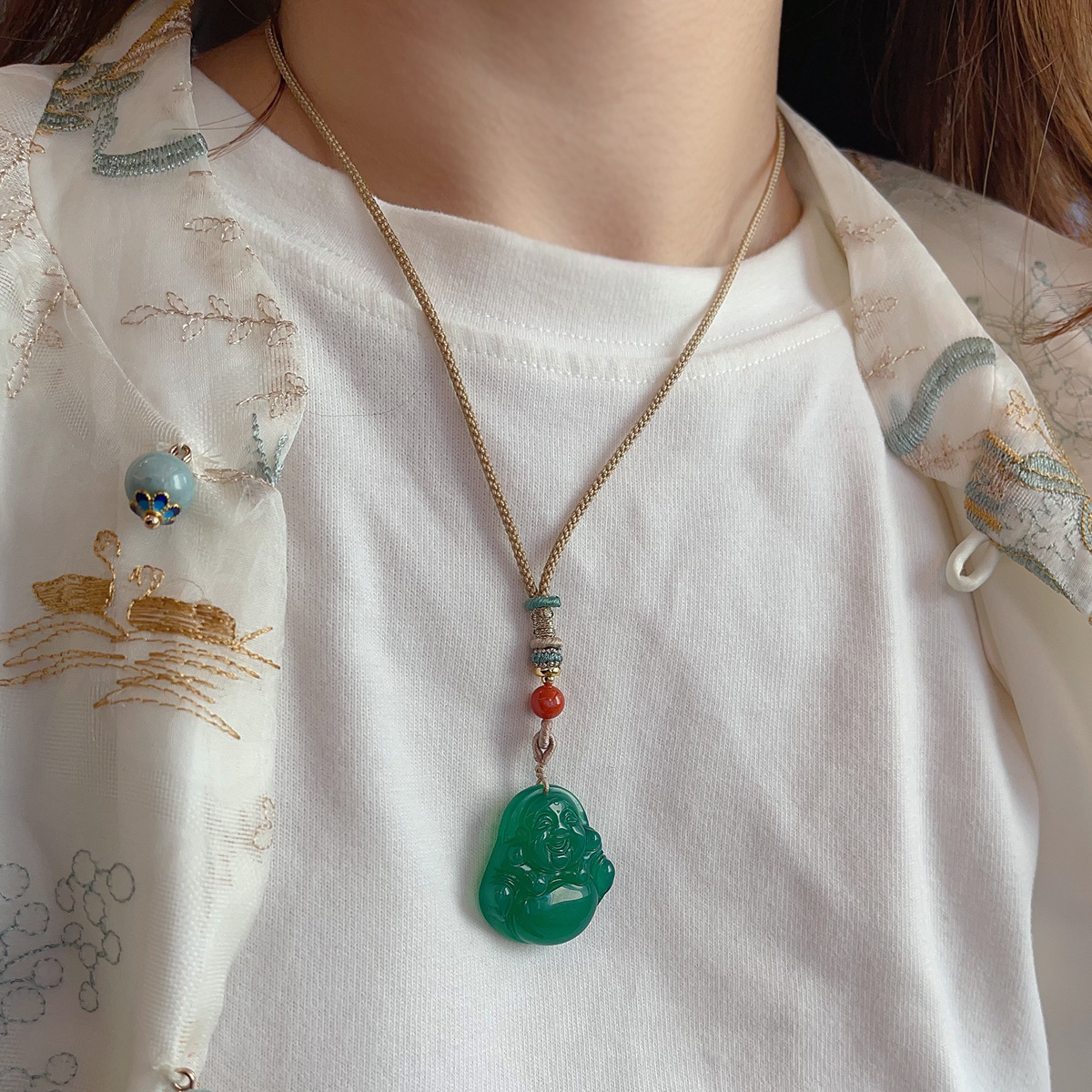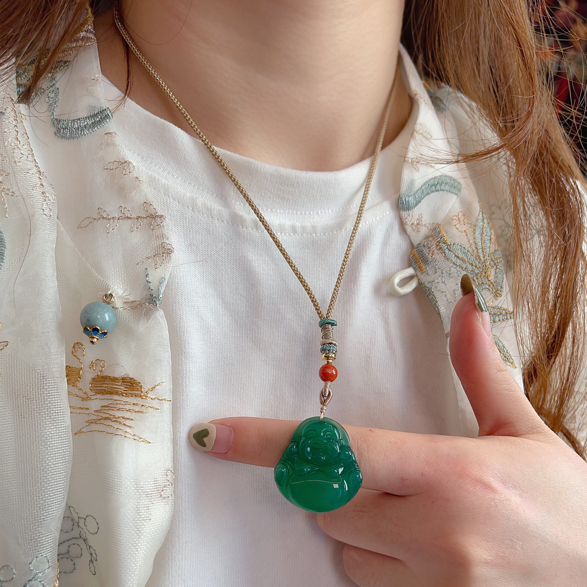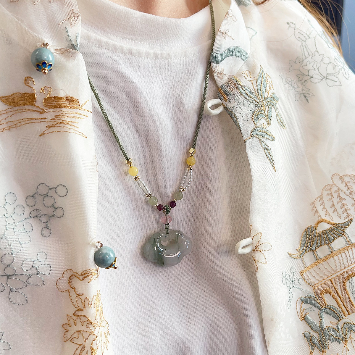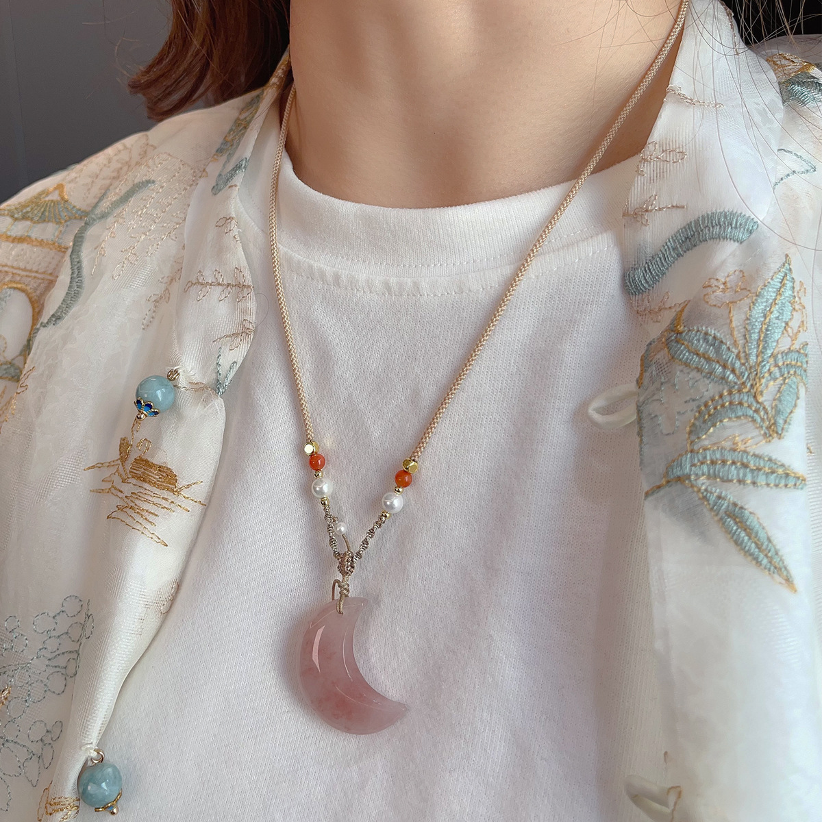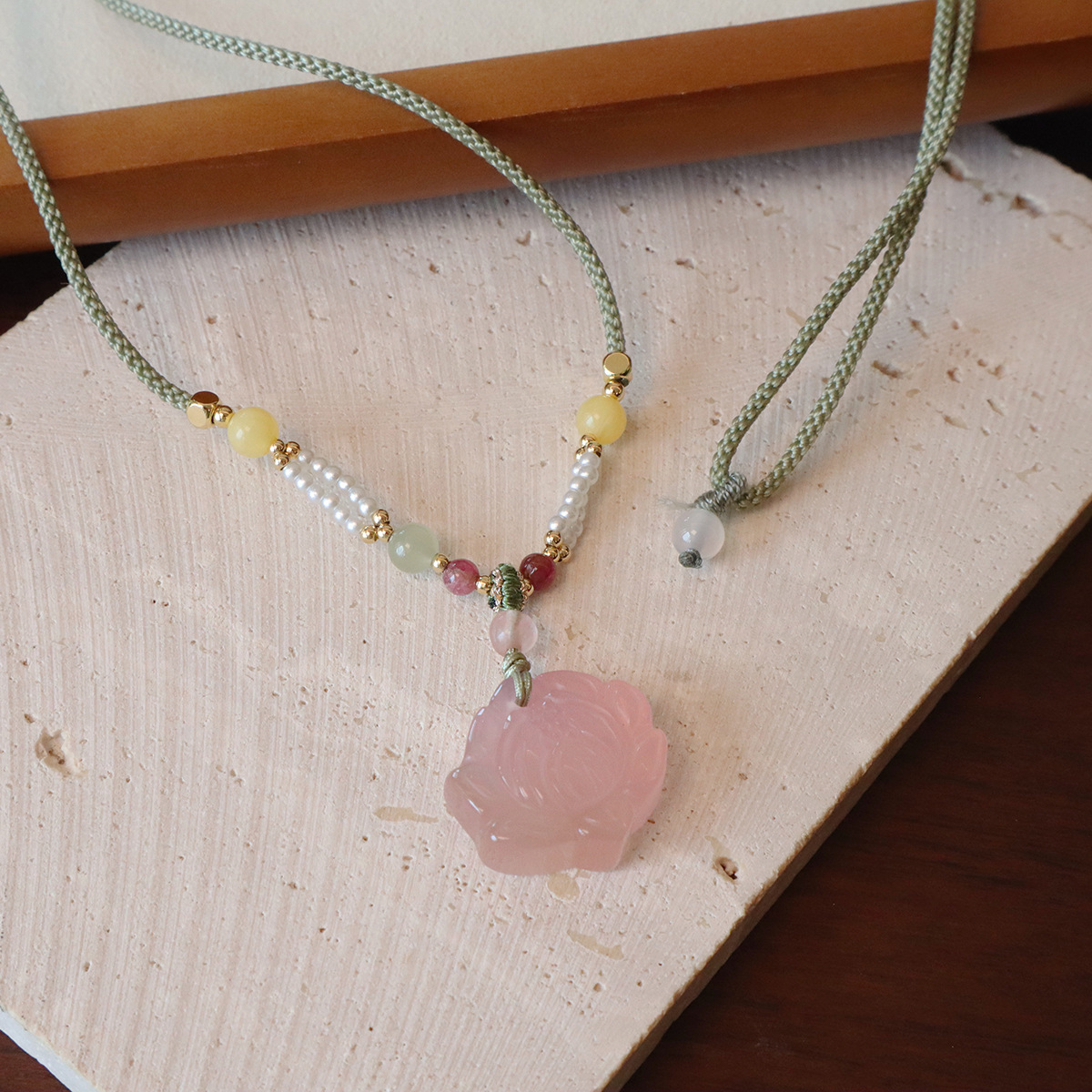 批发新中式天然石项链抽拉可调节锁骨链ins网红博主长款毛衣链