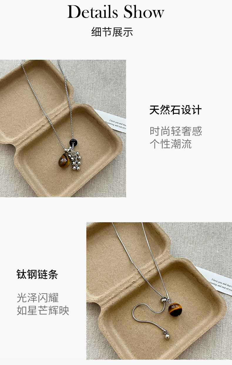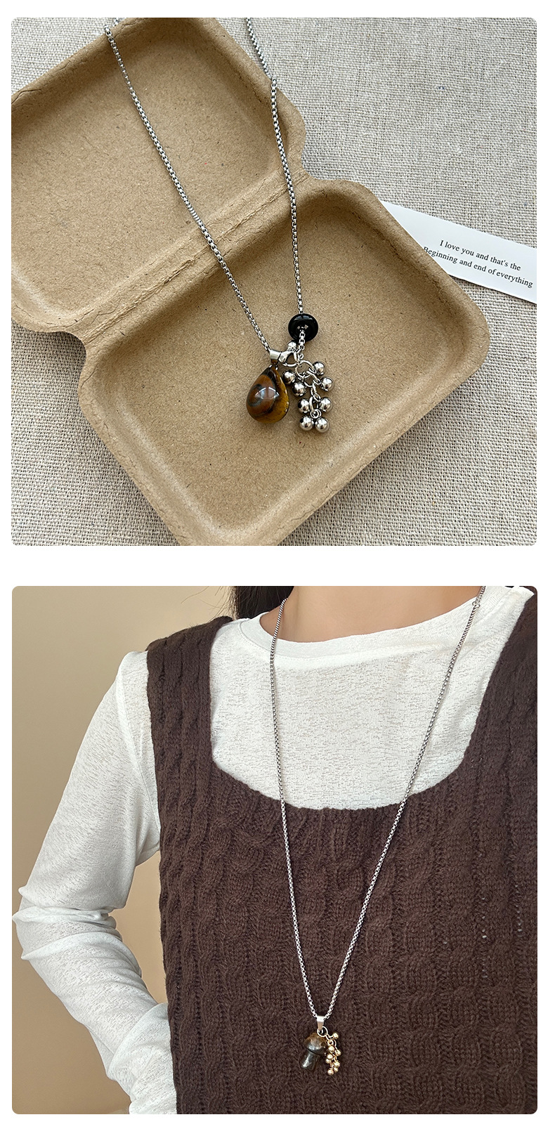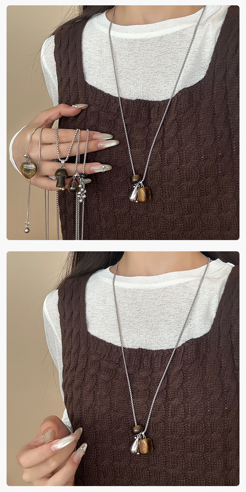 虎眼石花朵爱心吊坠项链女高级感小众设计长款毛衣链复古百搭配饰