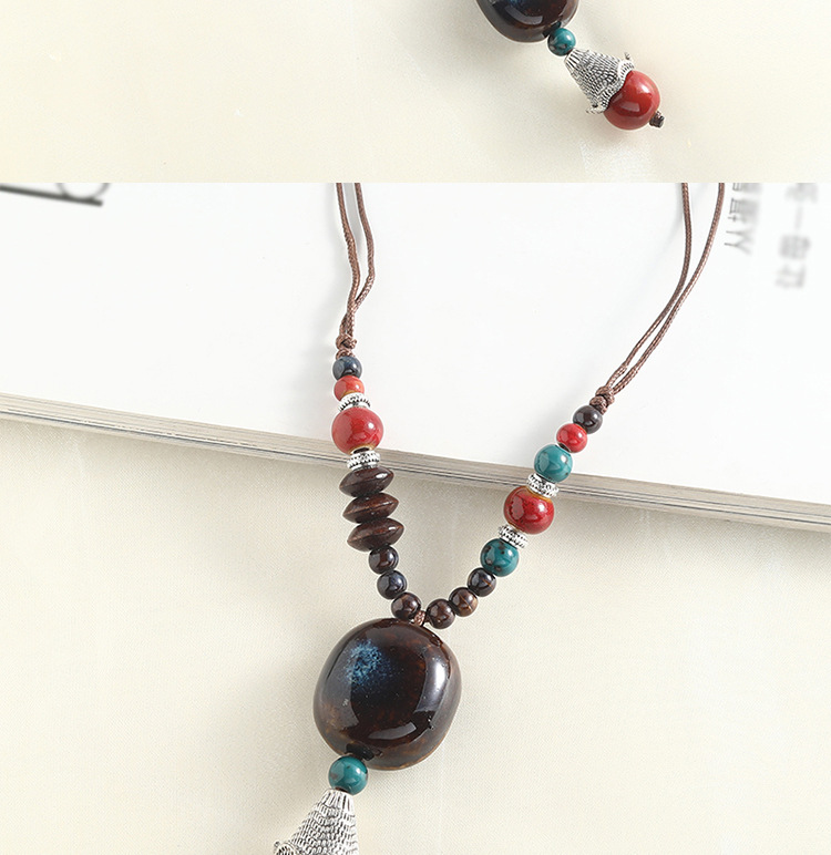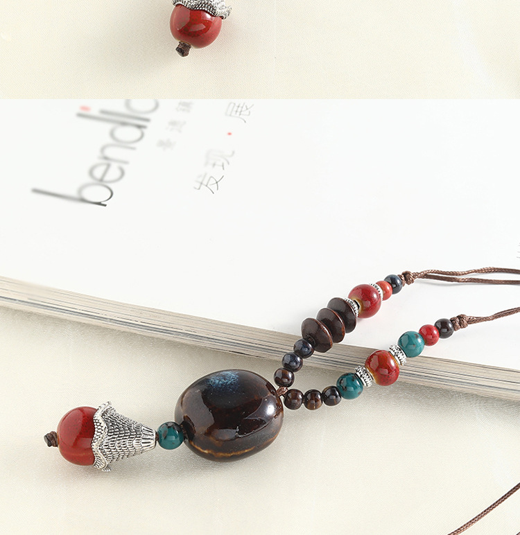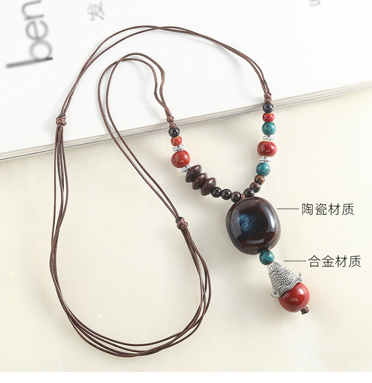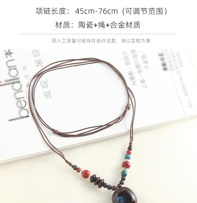 复古民族风陶瓷项链原创女小众百搭服饰配饰吊坠毛衣链长款秋冬
