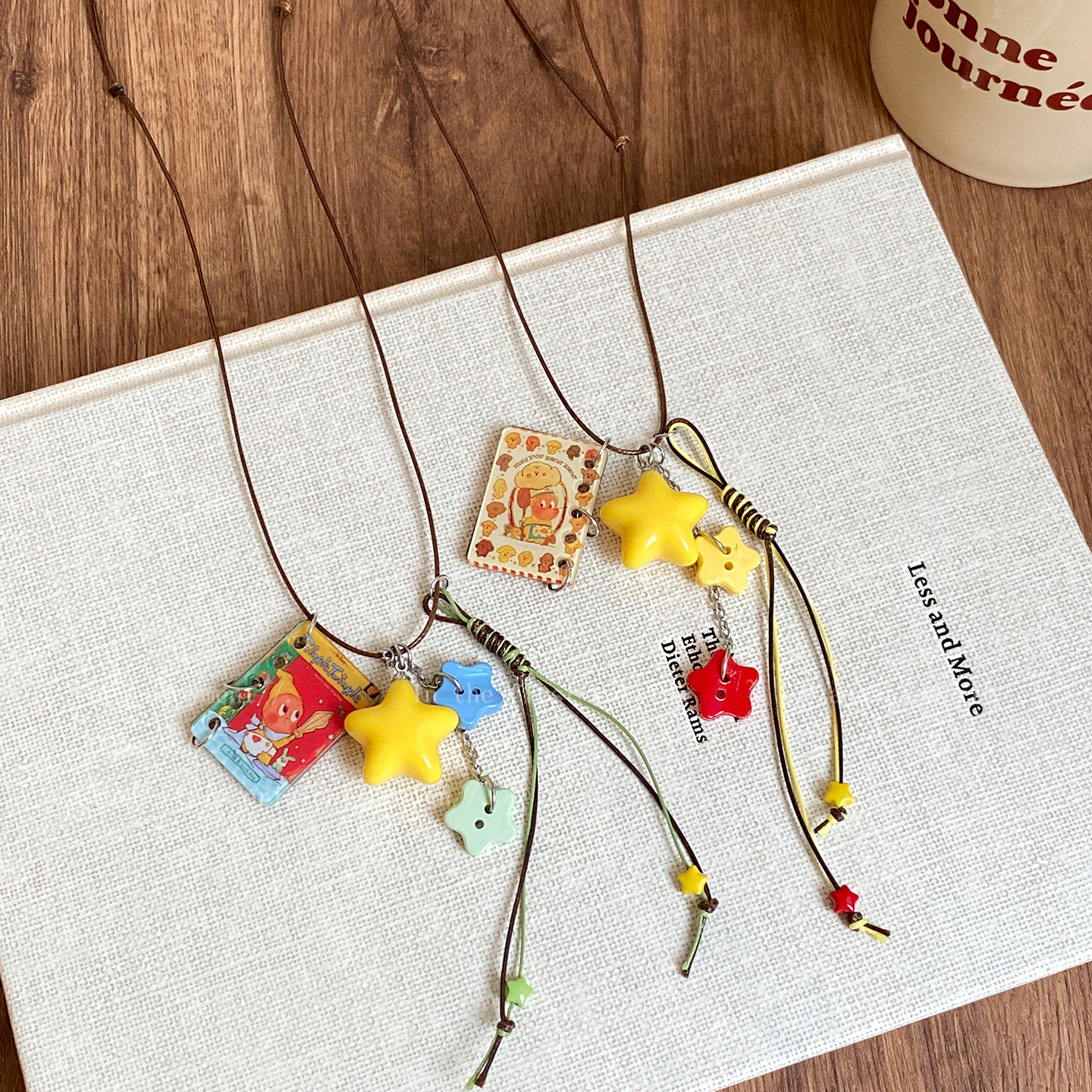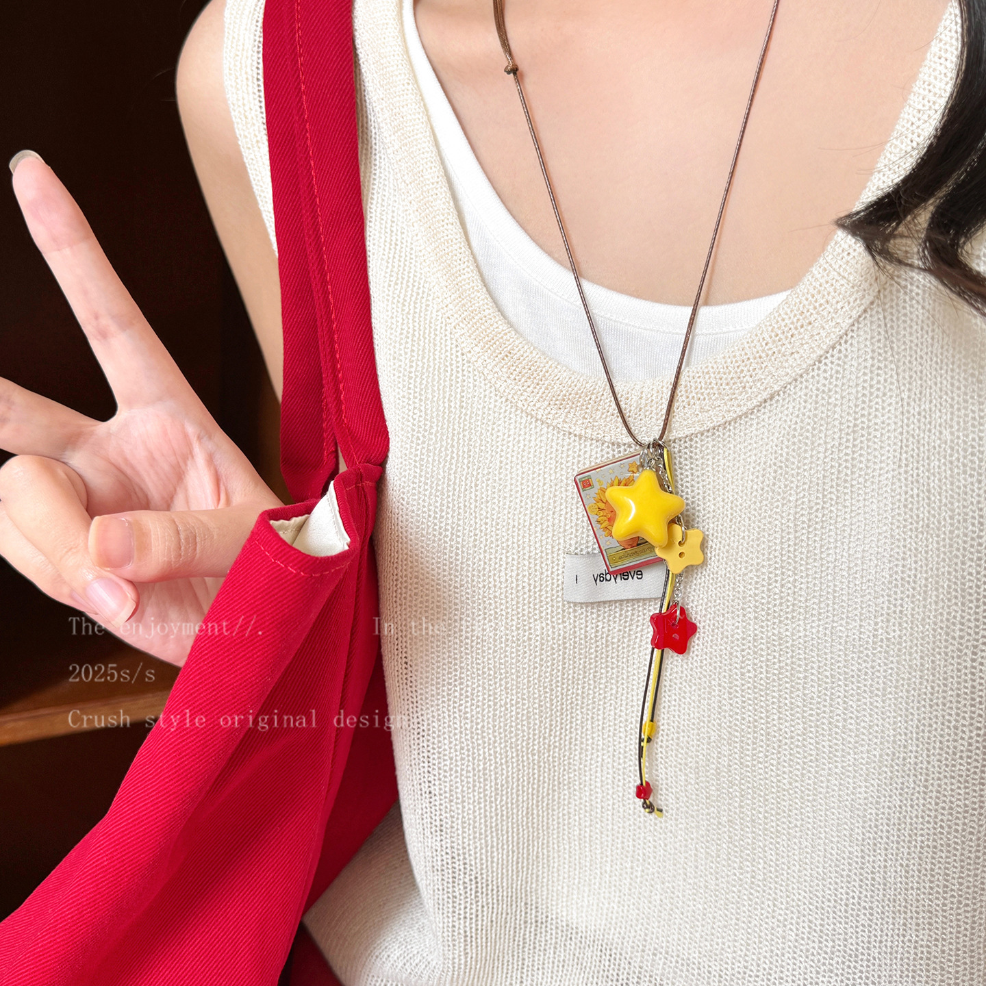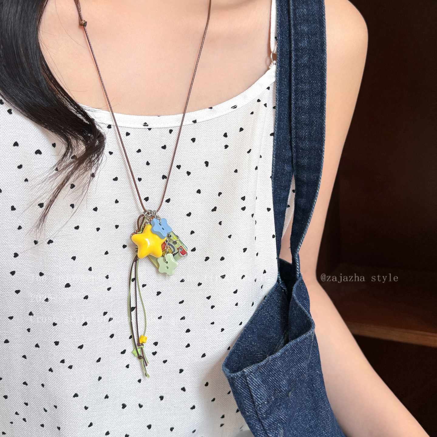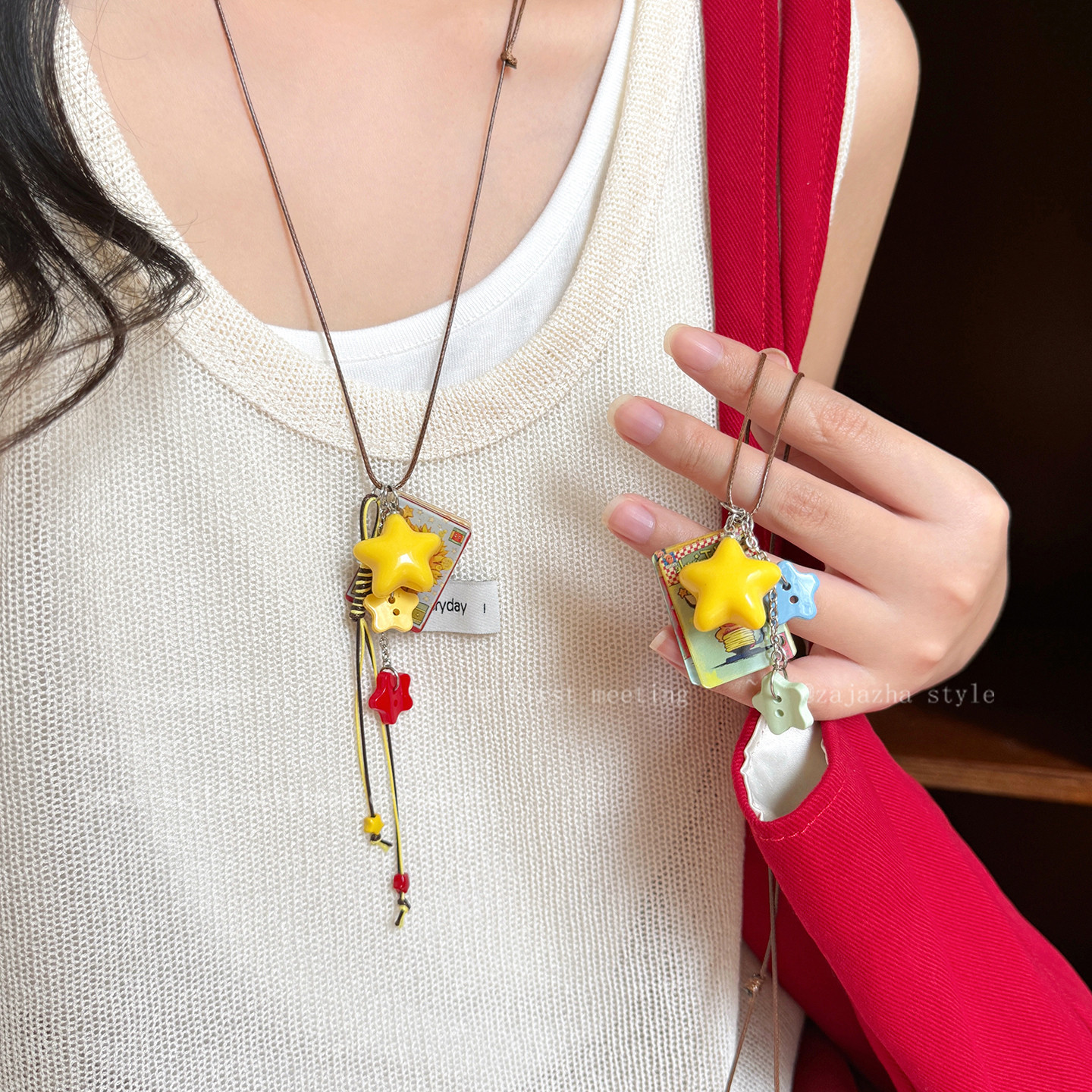童趣星星编织长款项链女款多巴胺2025新款爆款可爱卡通毛衣链配饰