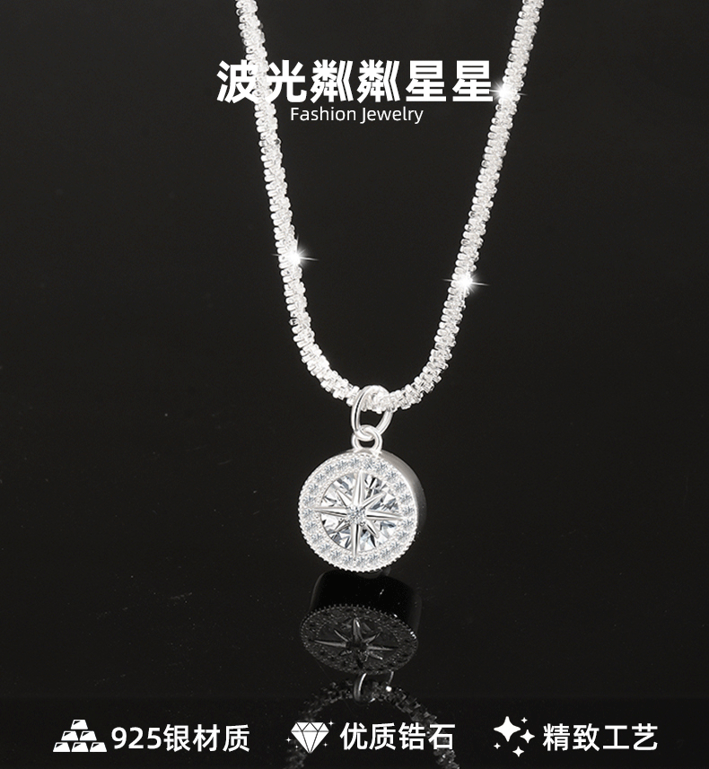 s925纯银波光粼粼项链女新款气质闪耀时尚优雅八芒星毛衣链锁骨链