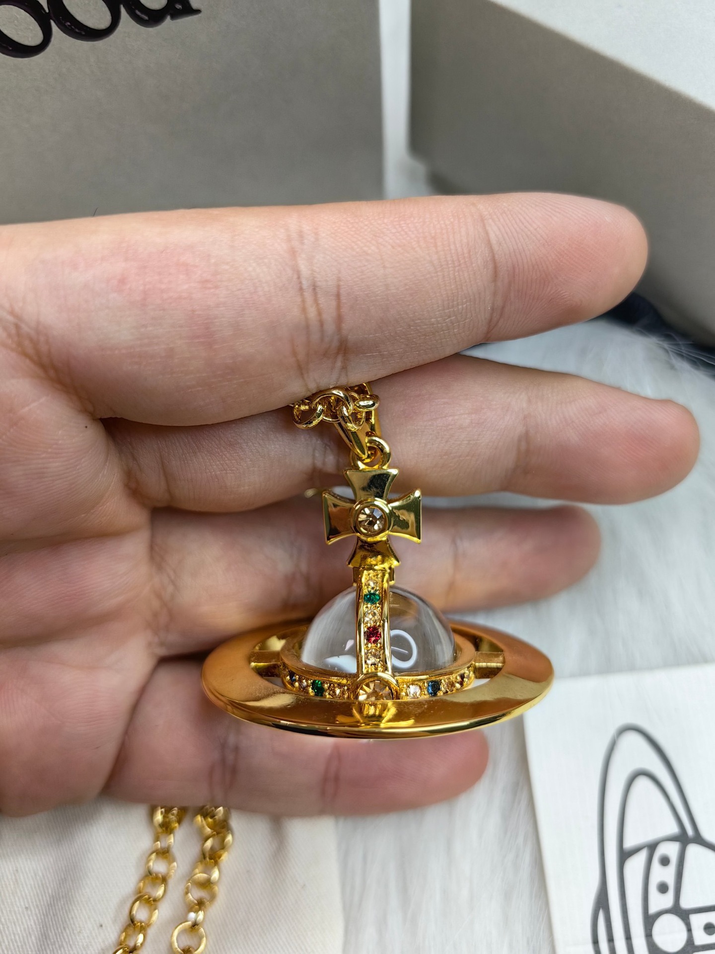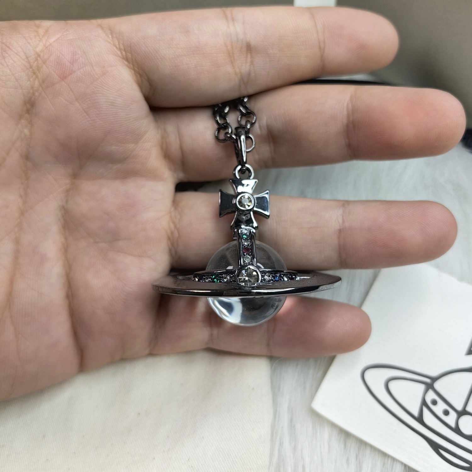 西太后大号20mm水晶球立体土星ORB飞碟项链女小红书爆款毛衣链