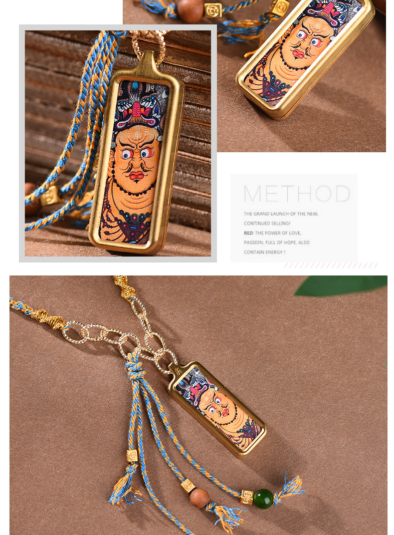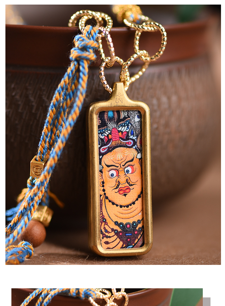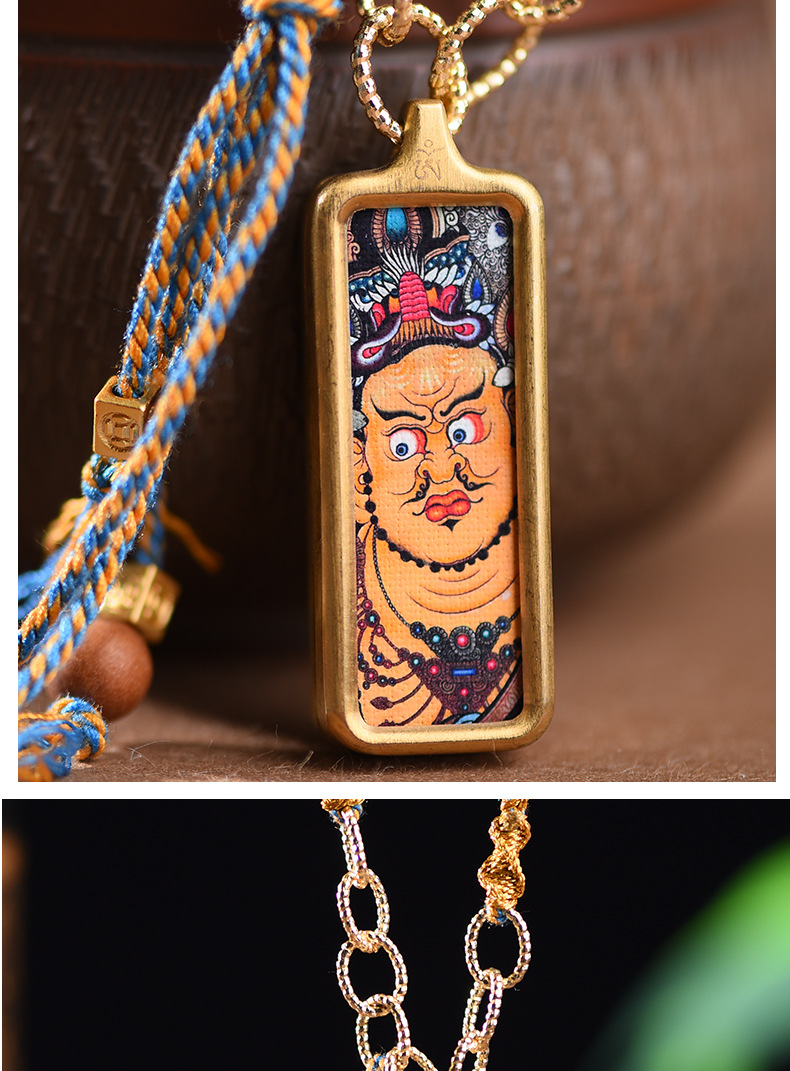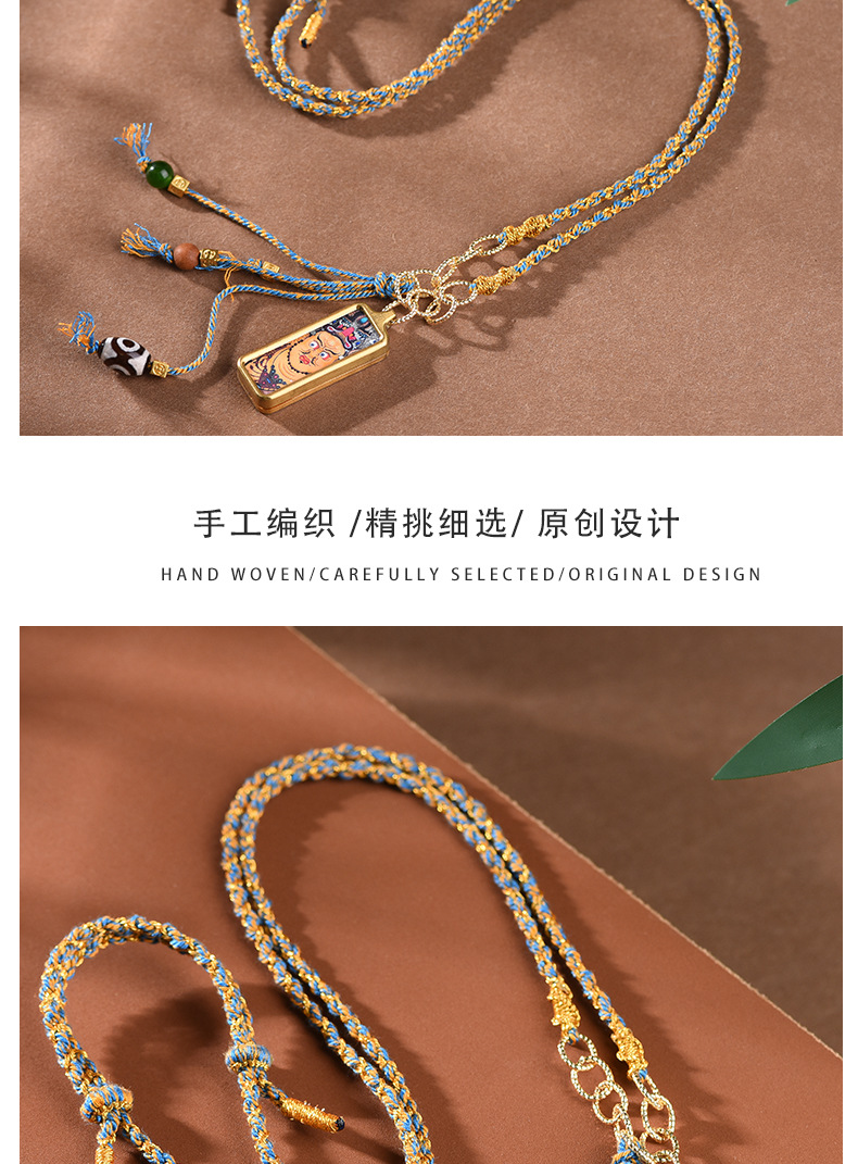 新中式手工编织项链绳项链手绘唐卡复古佛牌本命年挂坠牌毛衣链