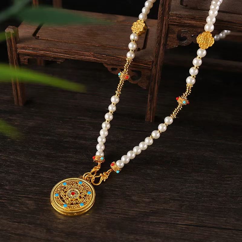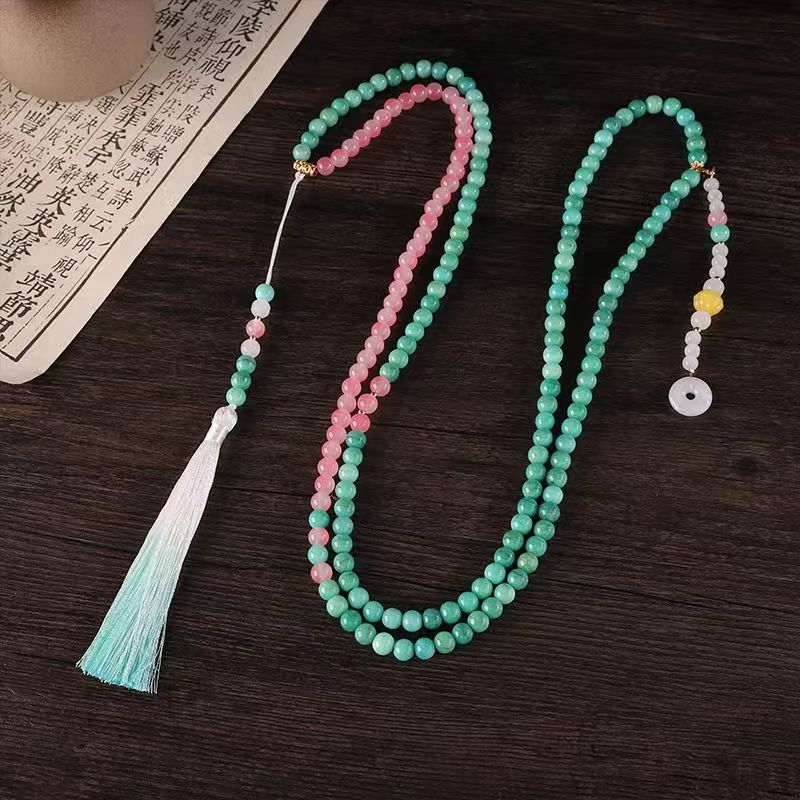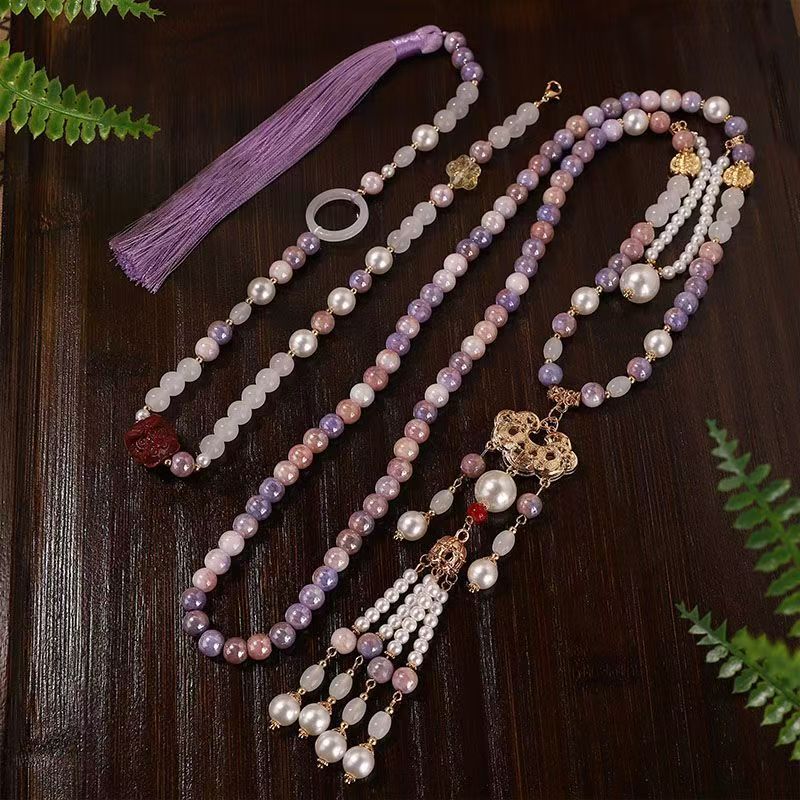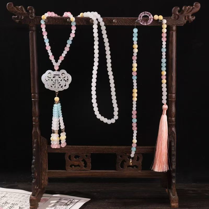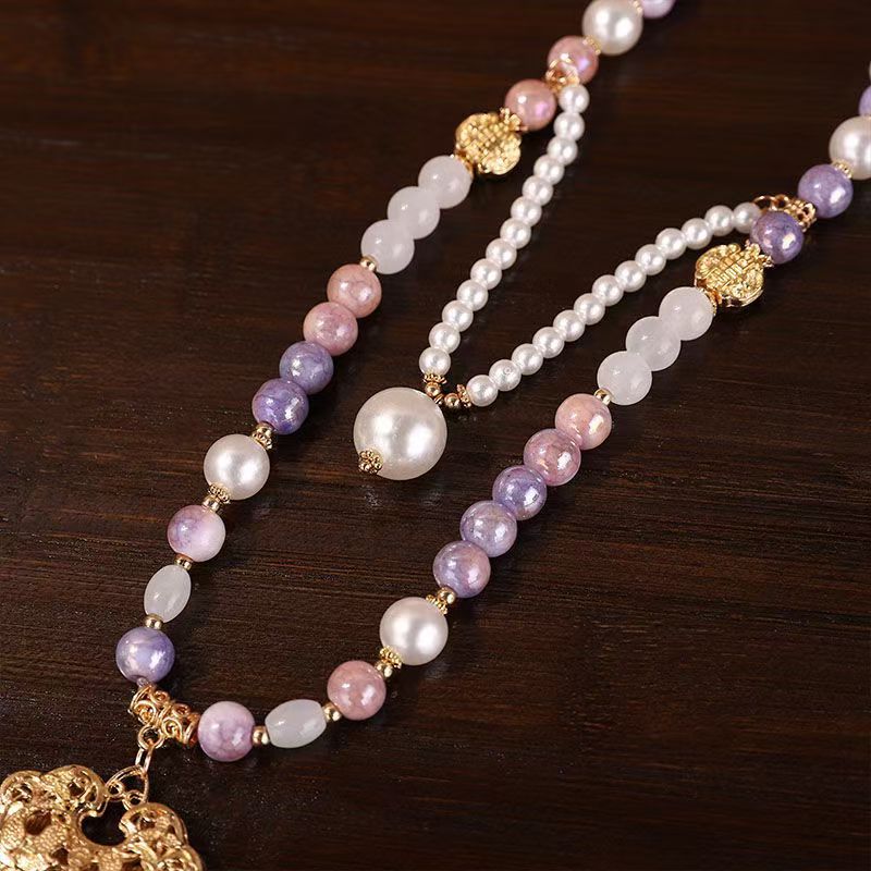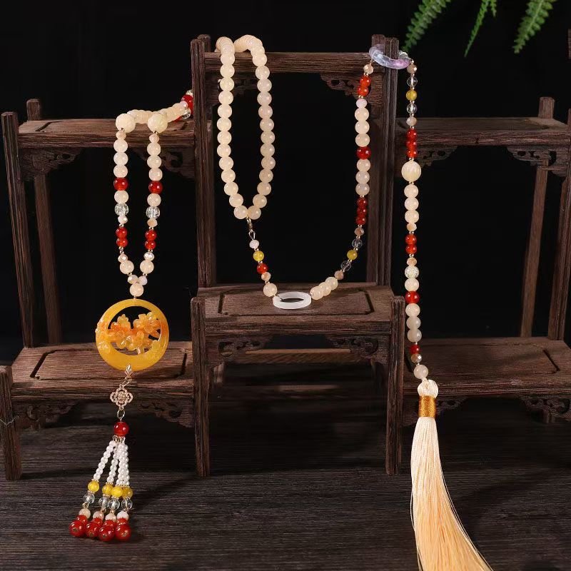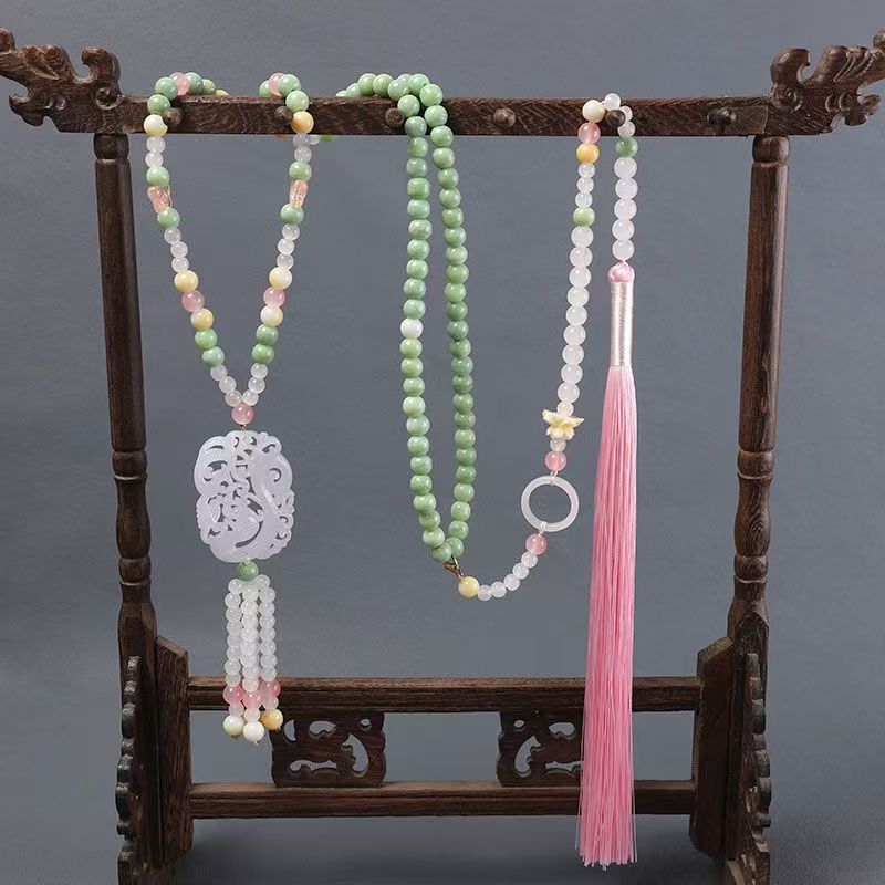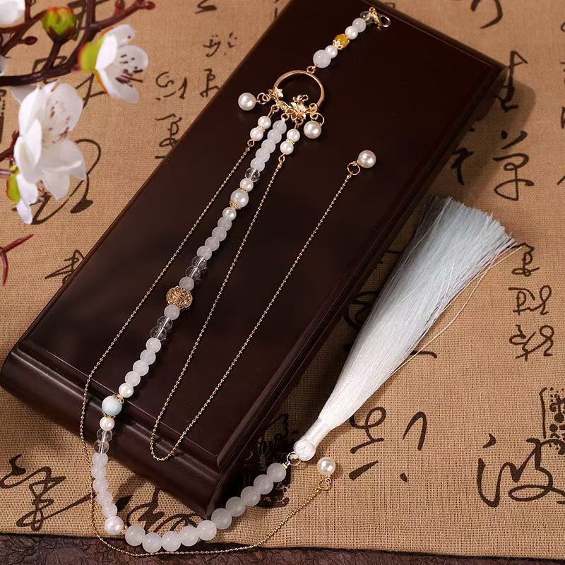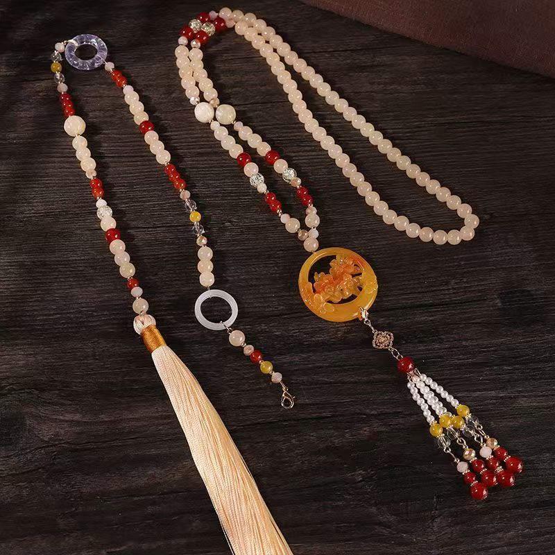 中式古法旗袍璎珞项链项圈长流苏背云长款白色贝珠毛衣链新配饰女