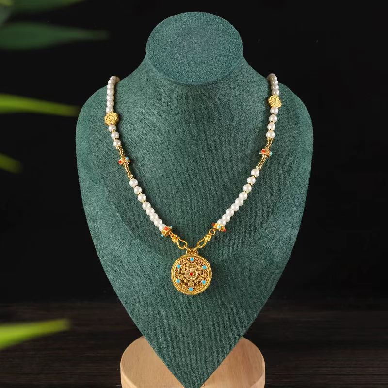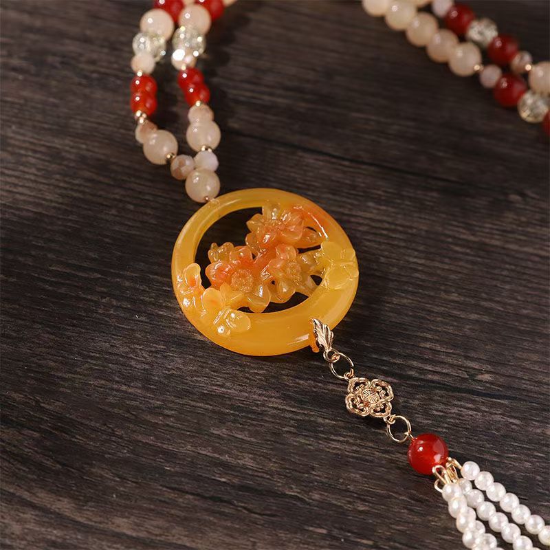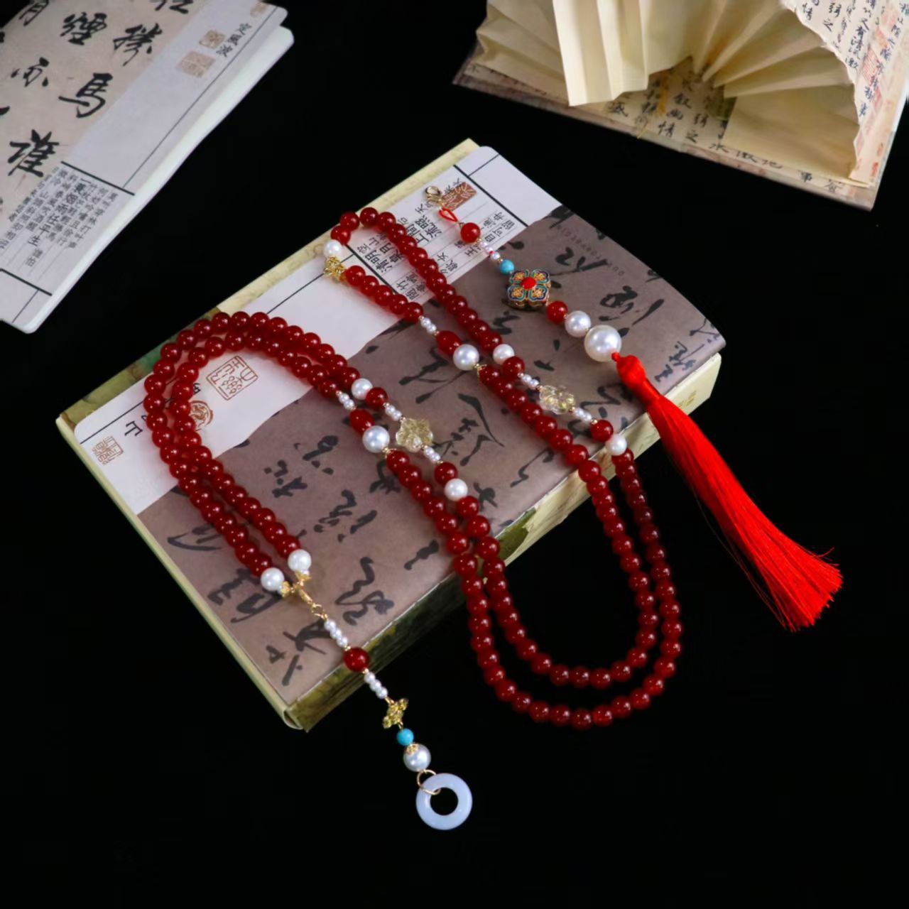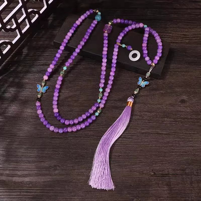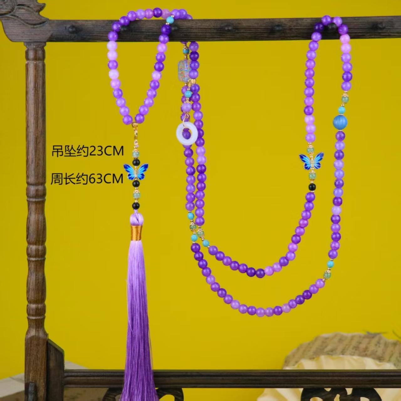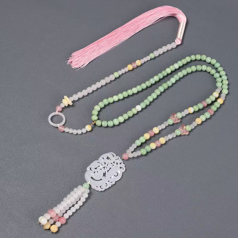 中式古法旗袍璎珞项链项圈长流苏背云长款白色贝珠毛衣链新配饰女