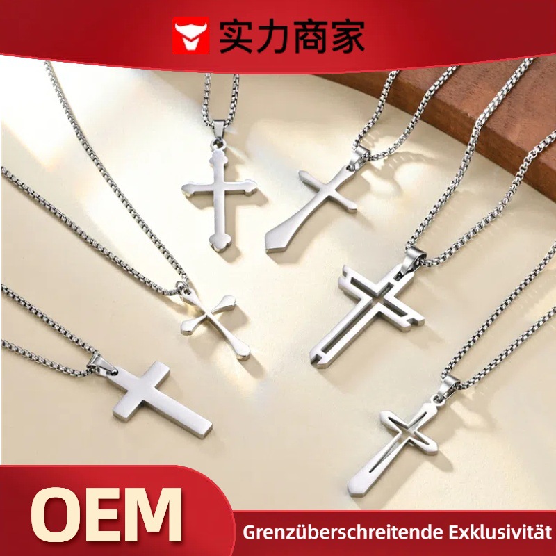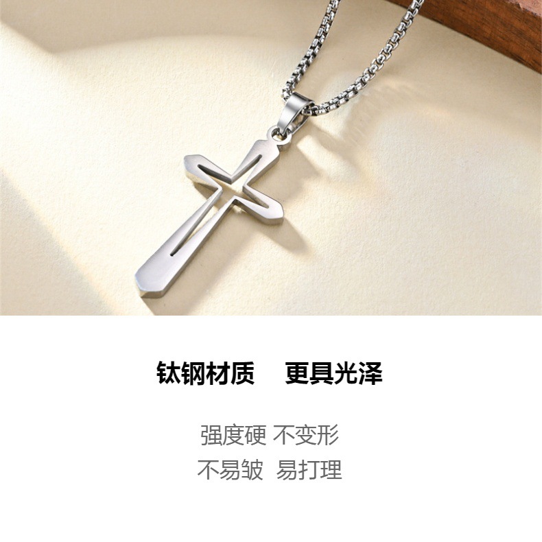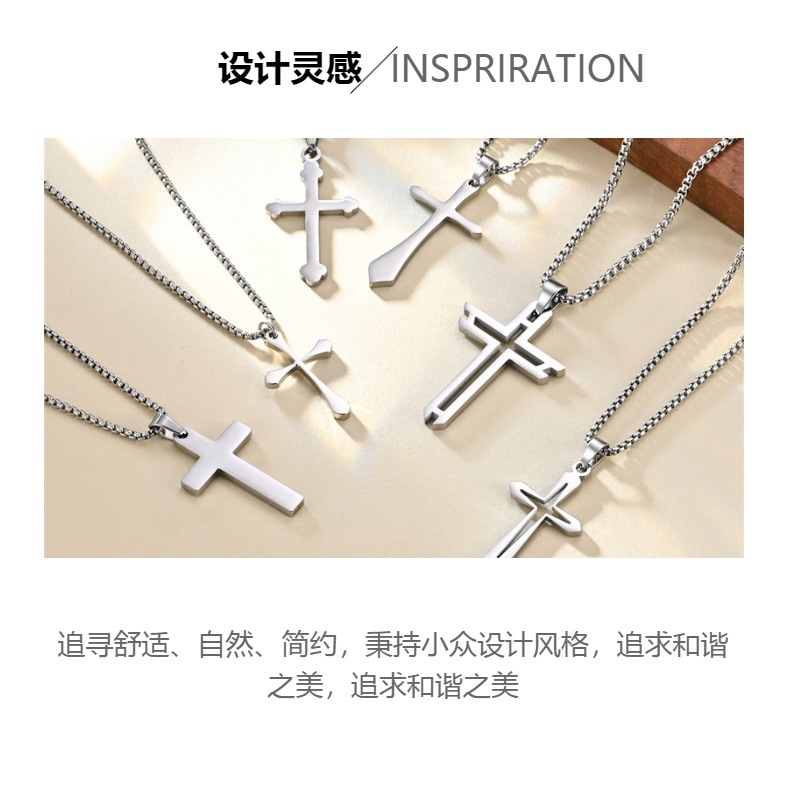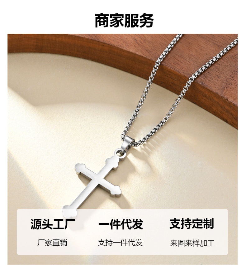 华越跨境嘻哈不锈钢十字架项链男简约时尚百搭毛衣链钛钢吊坠多款