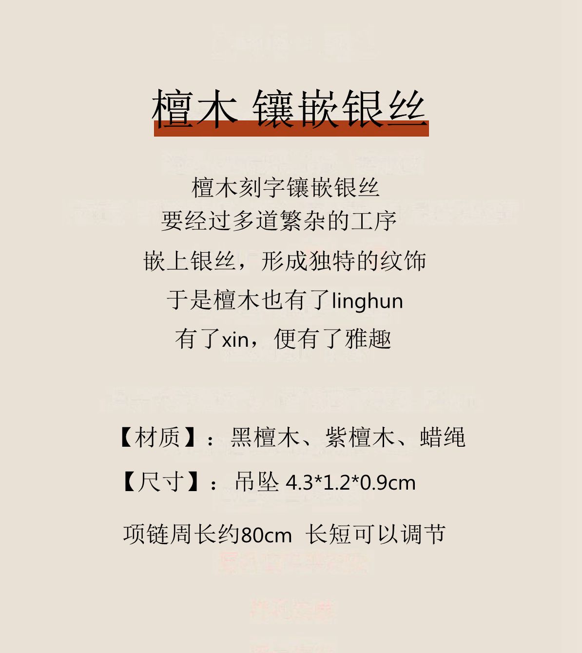 檀木镶嵌银丝吊坠项链男女百搭古风毛衣链长款文艺复古风情侣配饰