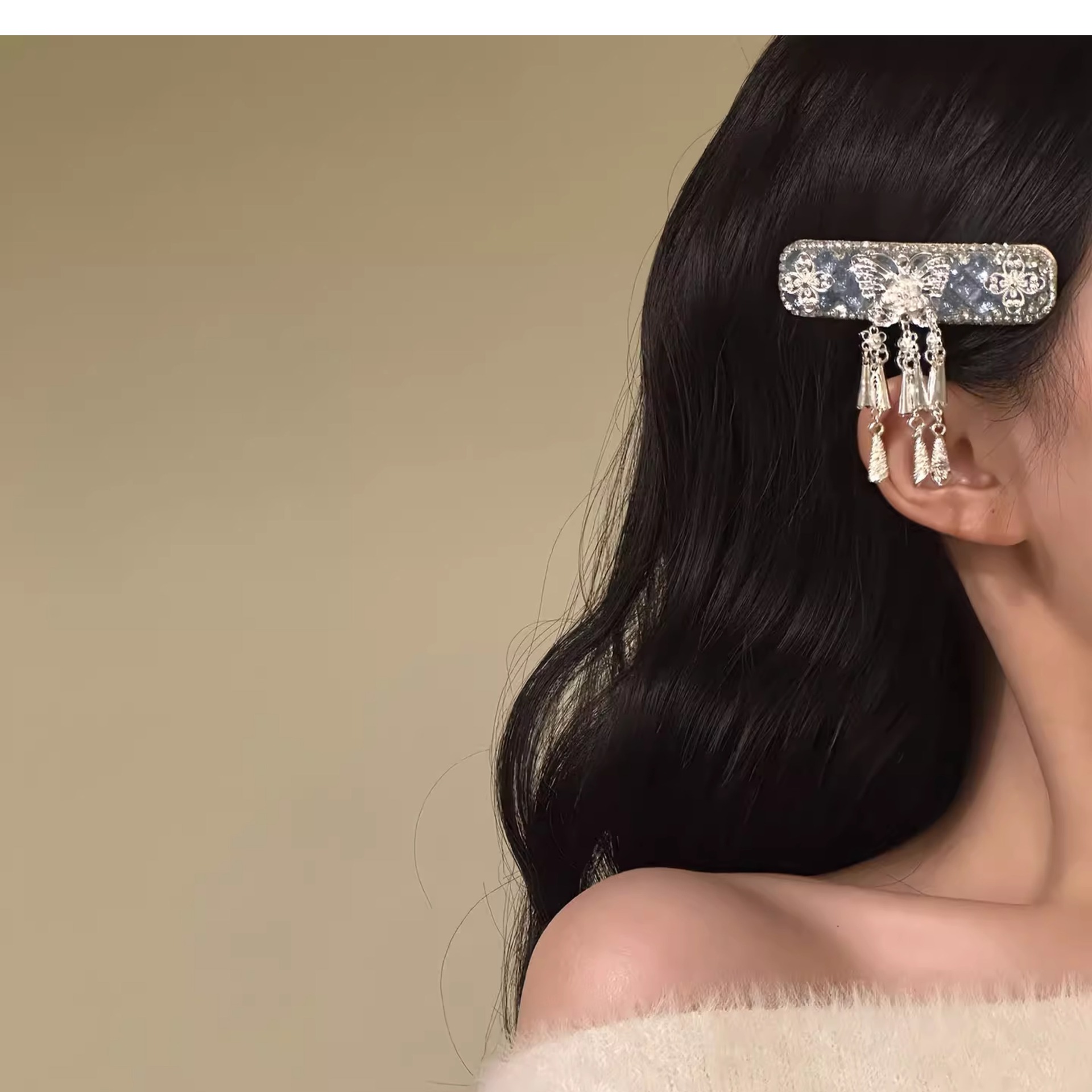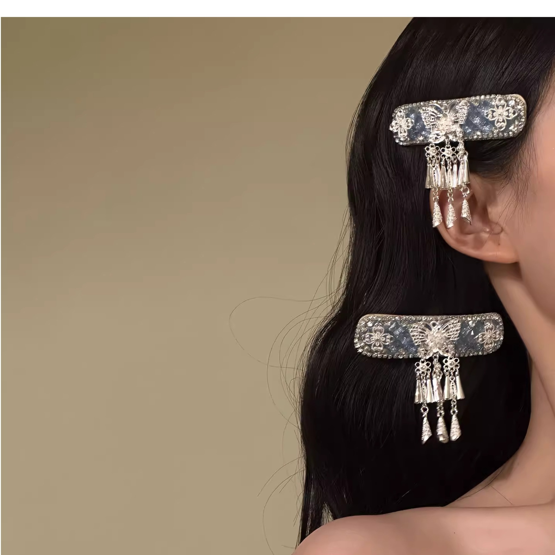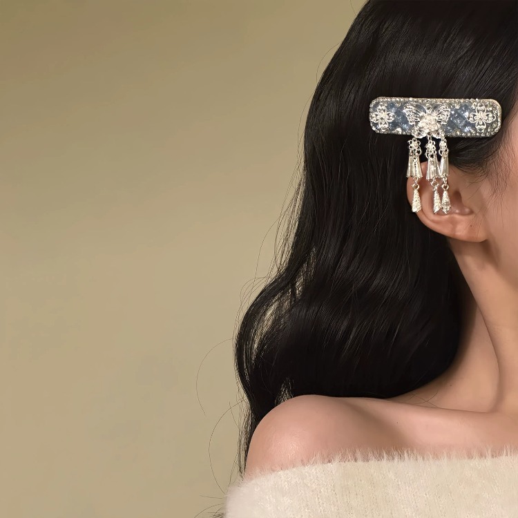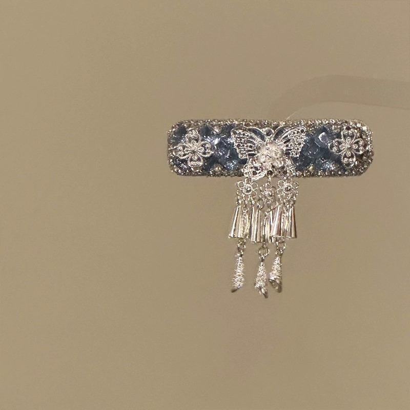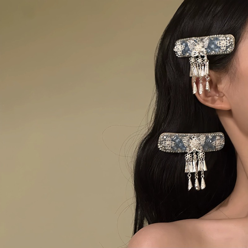 民族风仿银蝴蝶流苏发夹女新中式轻奢高级侧边碎发bb夹子发卡发饰
