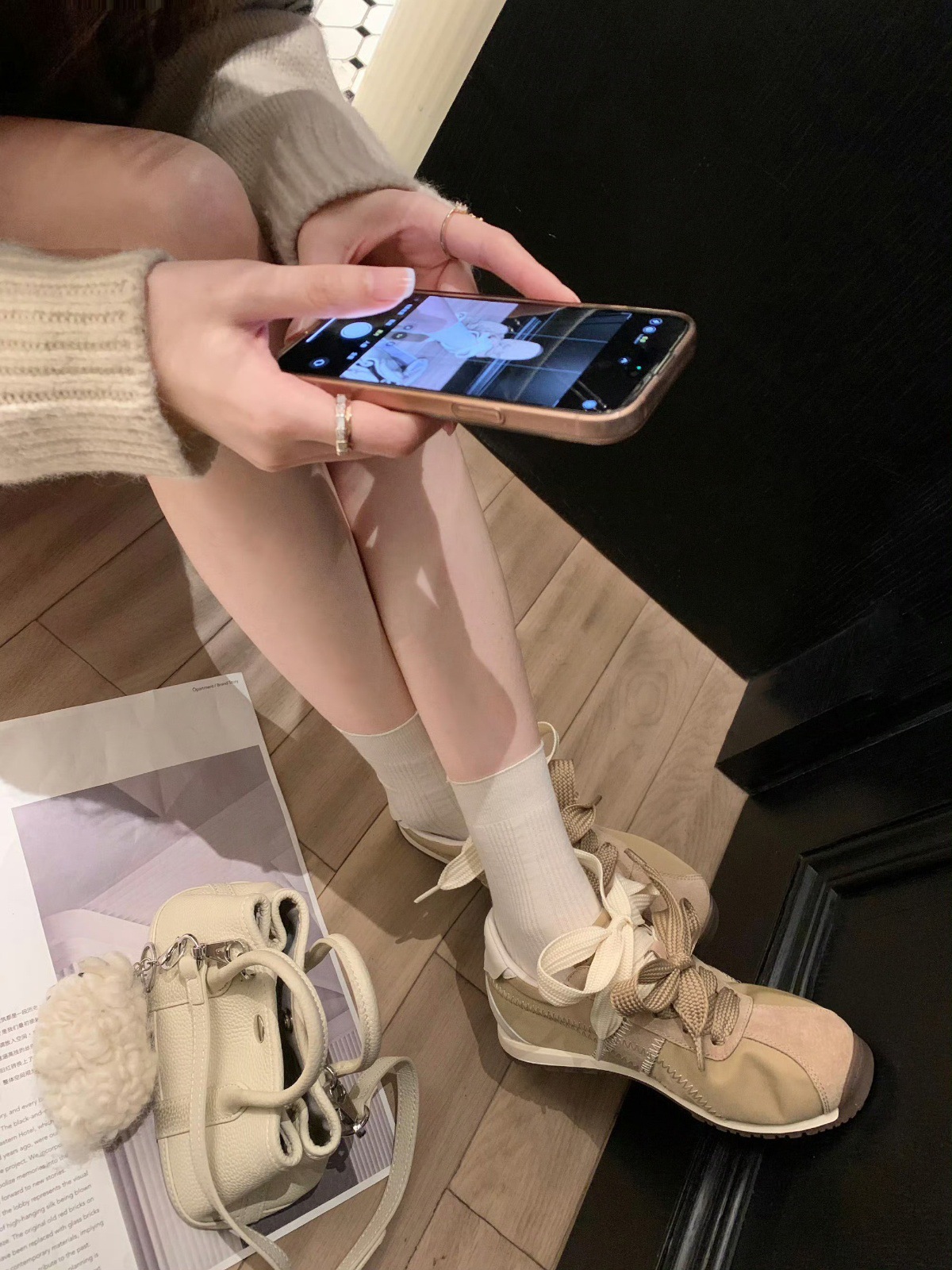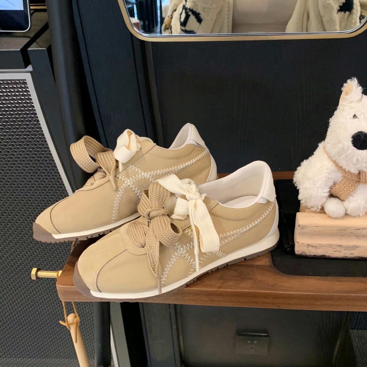 羊皮版~芭蕾风百搭真皮厚底德训鞋女百搭休闲运动板鞋绑带阿甘鞋