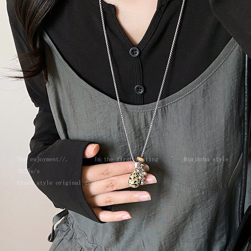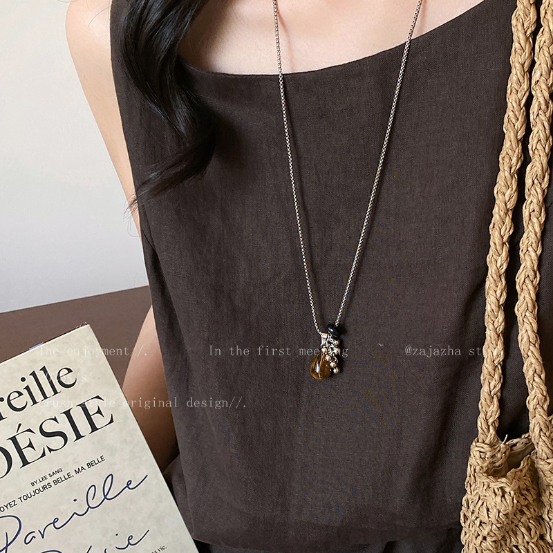钛钢项链博主同款虎眼石葡萄串吊坠小众高级感长款毛衣链可调节女