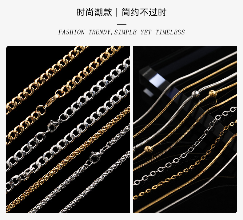 源头工厂批发钛钢项链男嘻哈饰品diy女锁骨链毛衣链饰品配饰单链