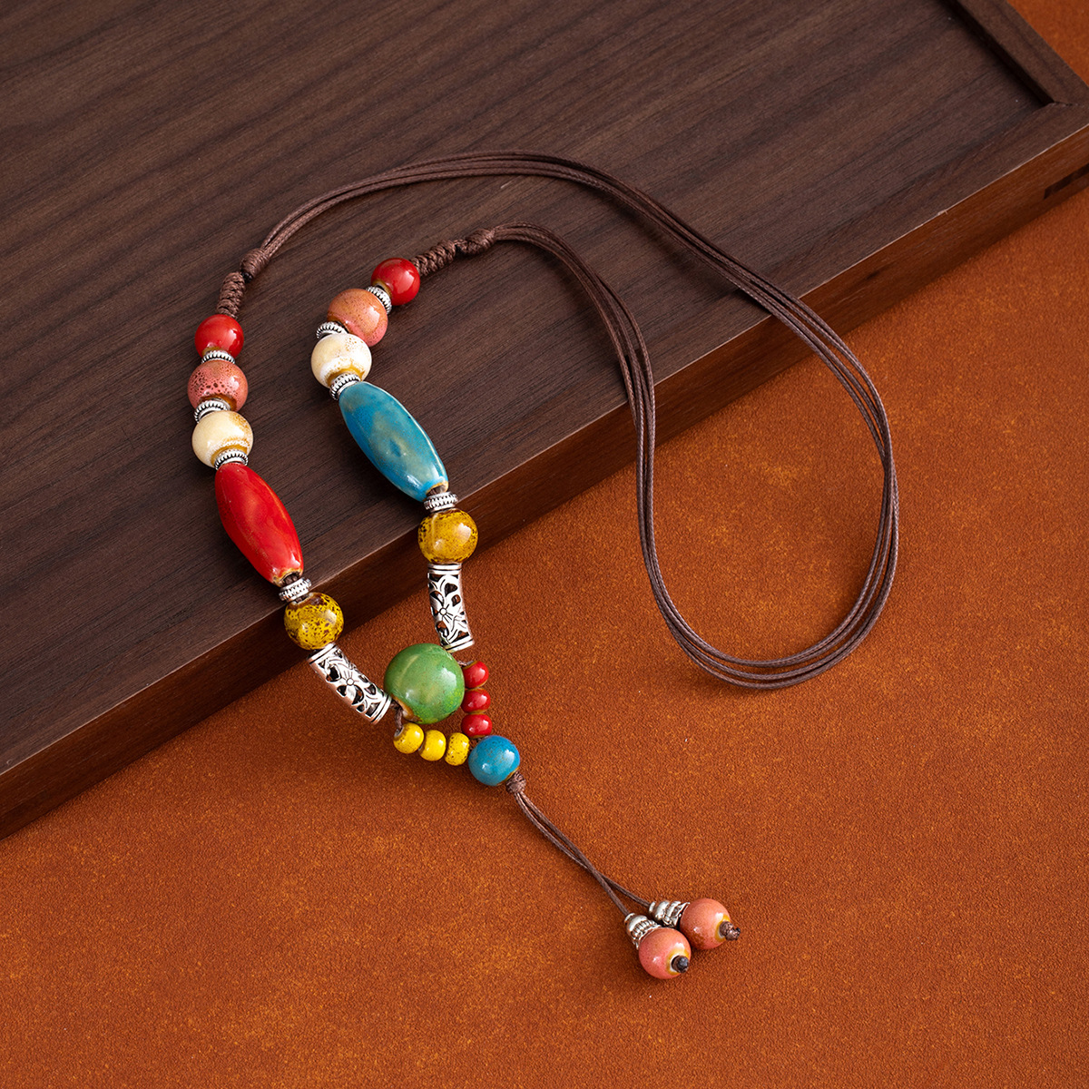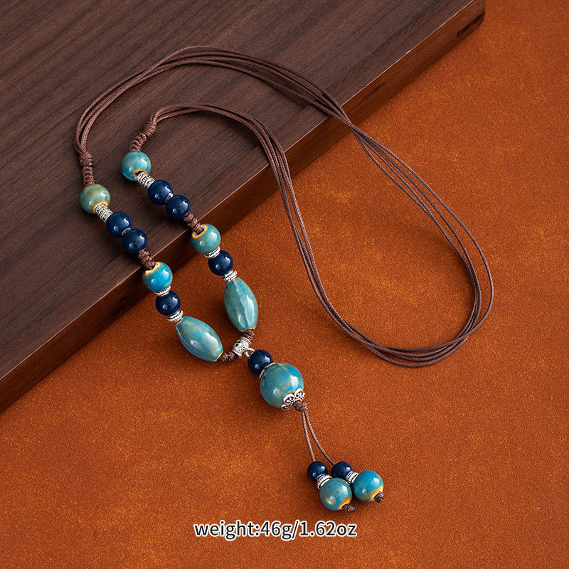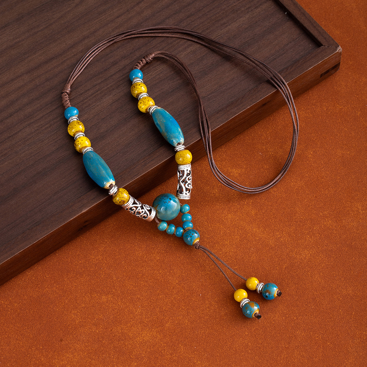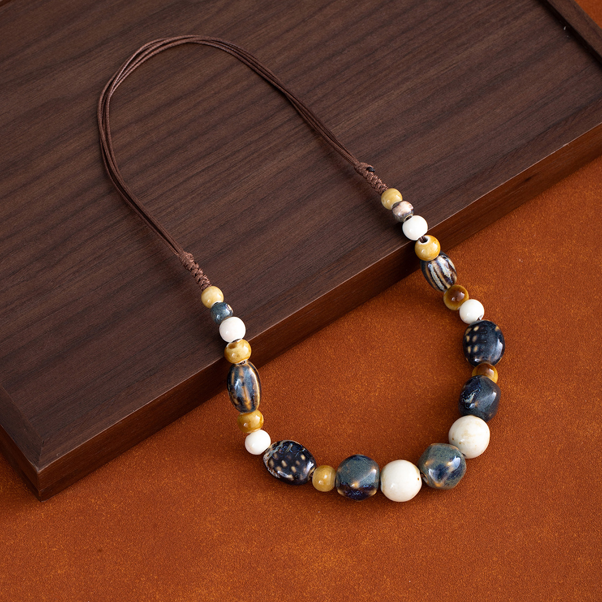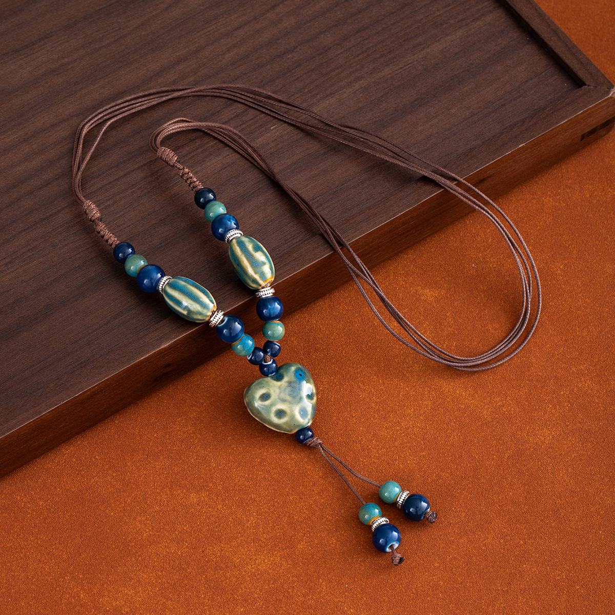景德镇陶瓷不掉色热销项链新中式民族风毛衣链古风编织绳长款颈链