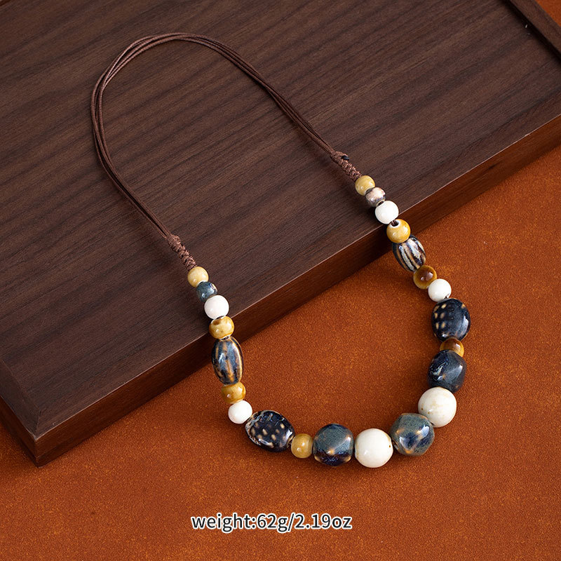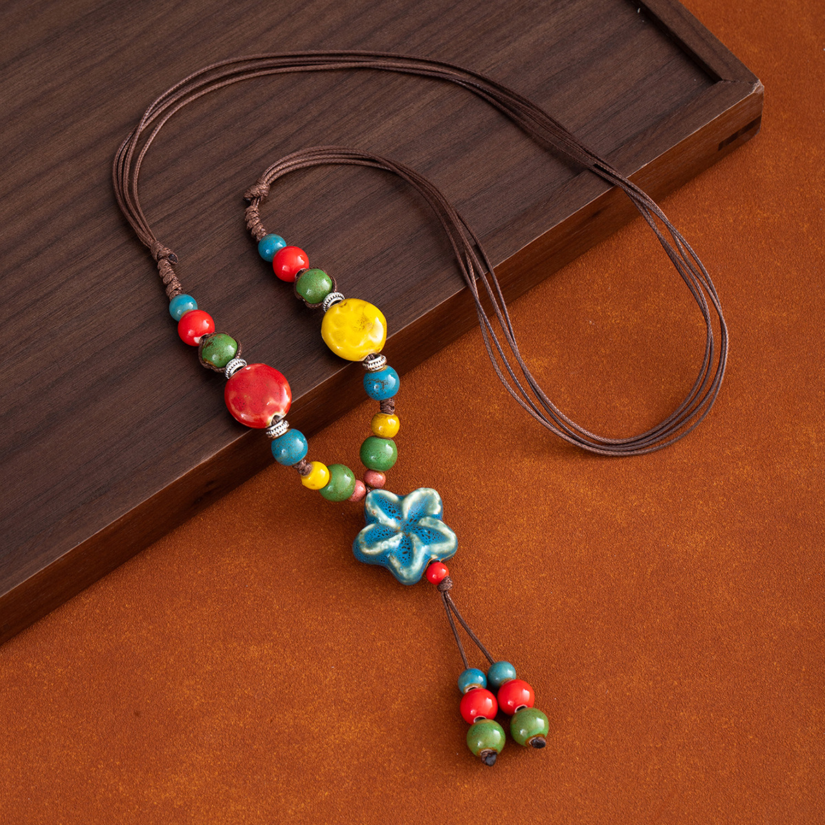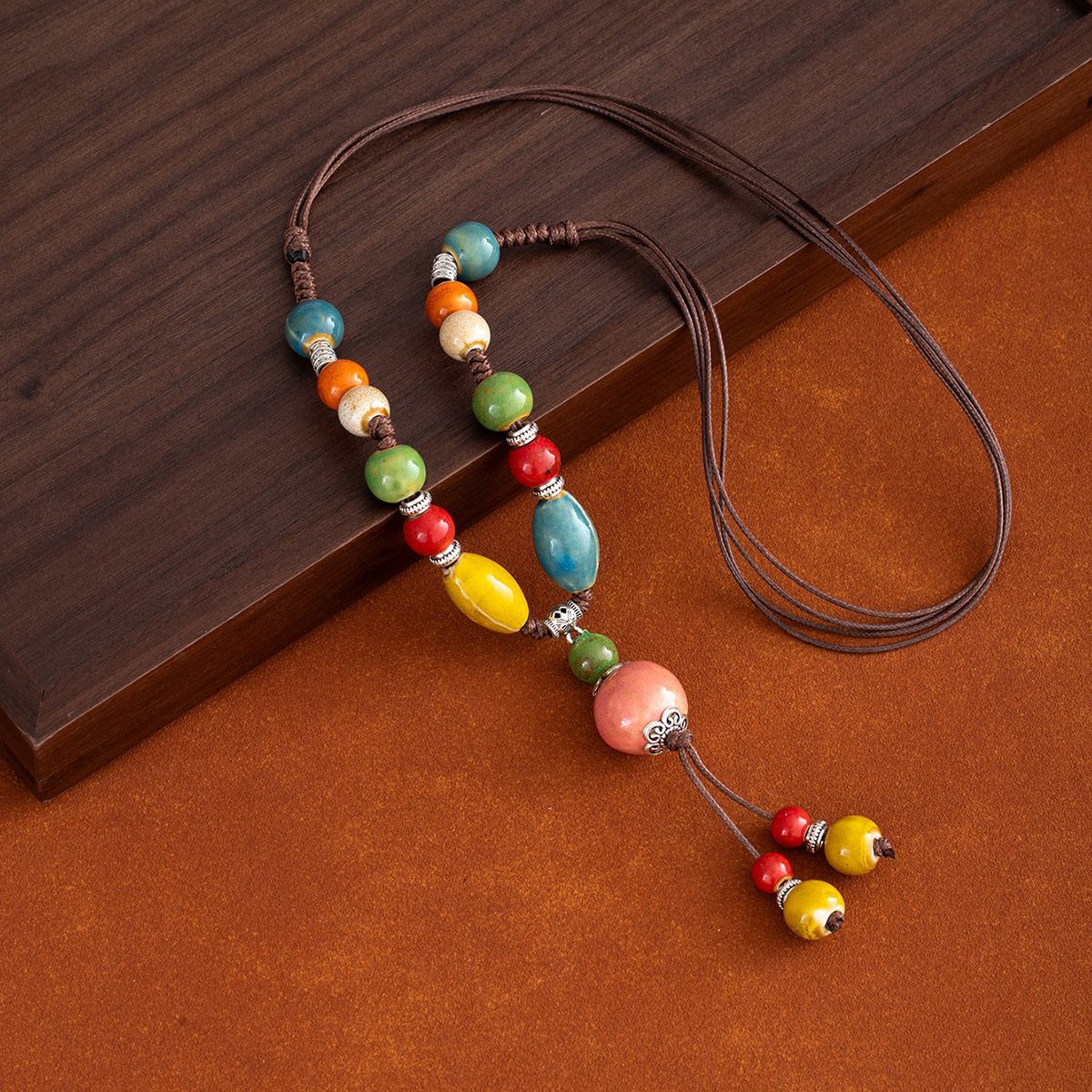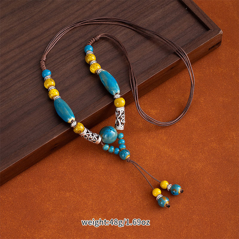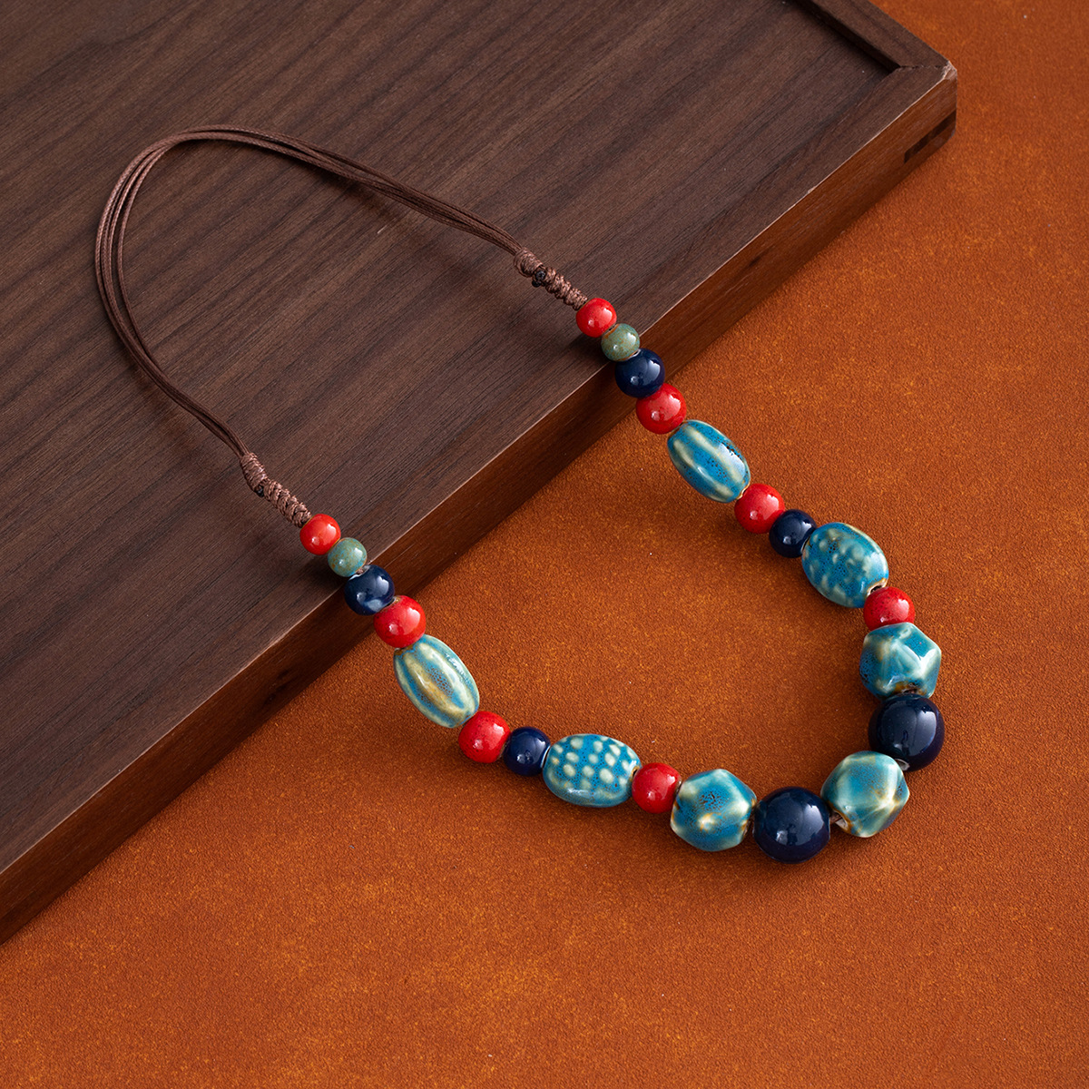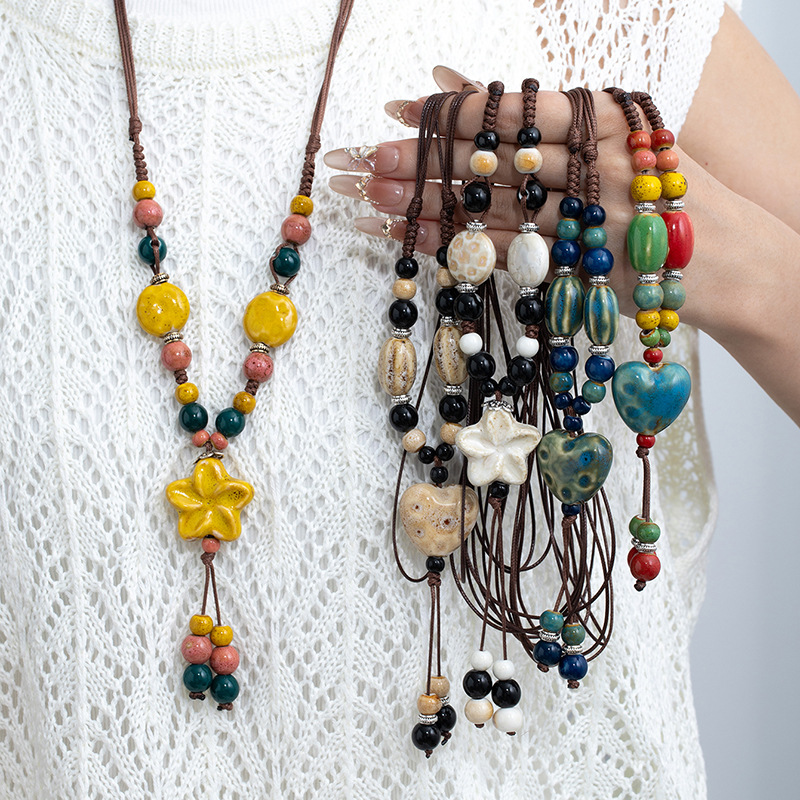 景德镇陶瓷不掉色热销项链新中式民族风毛衣链古风编织绳长款颈链
