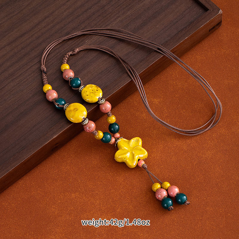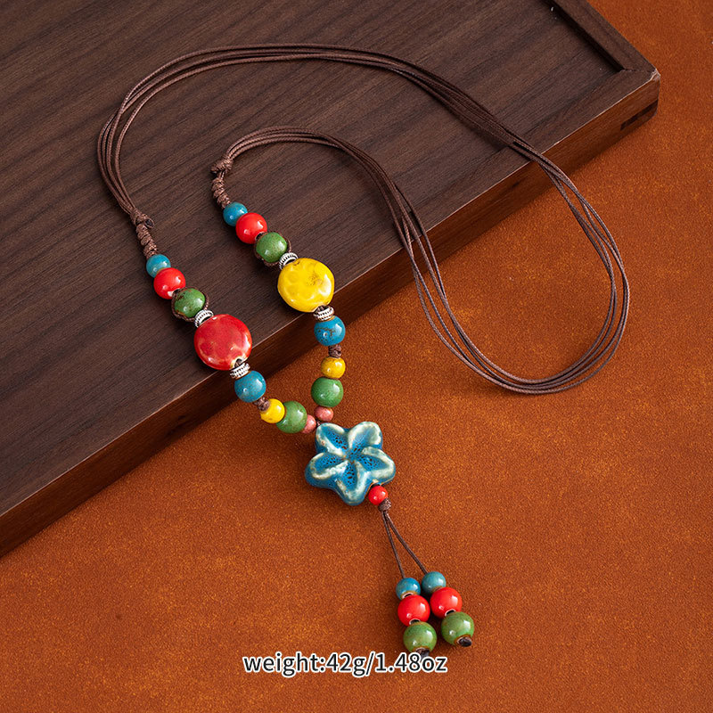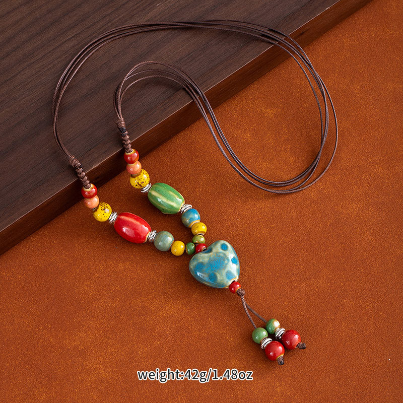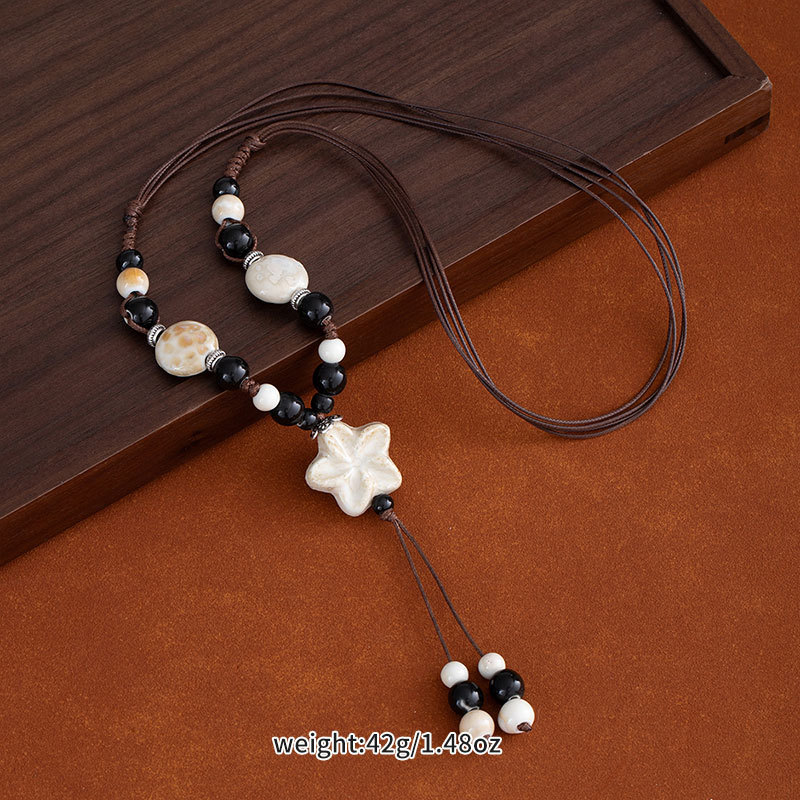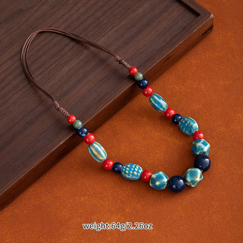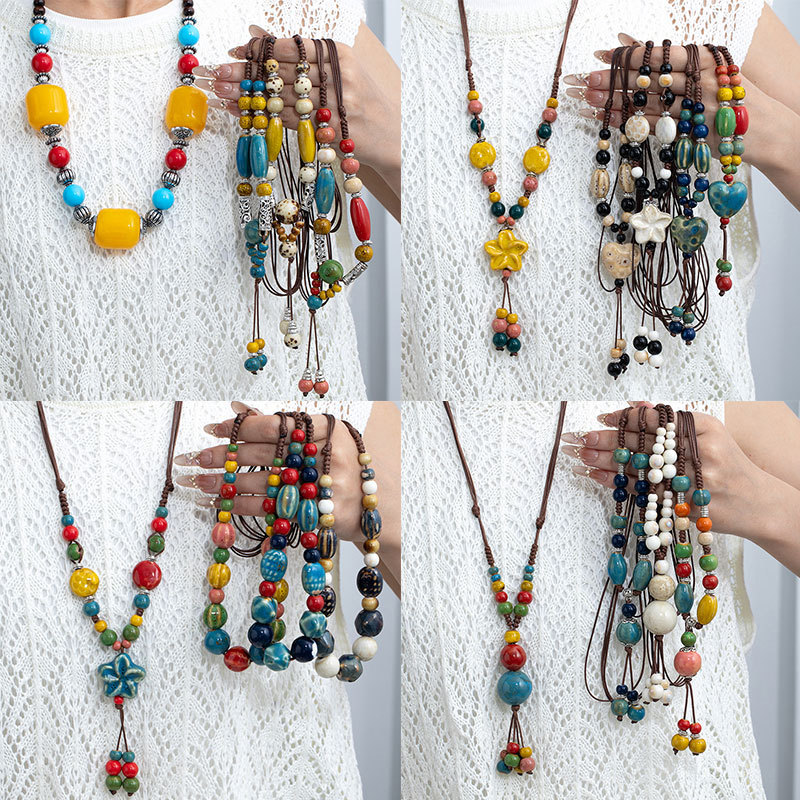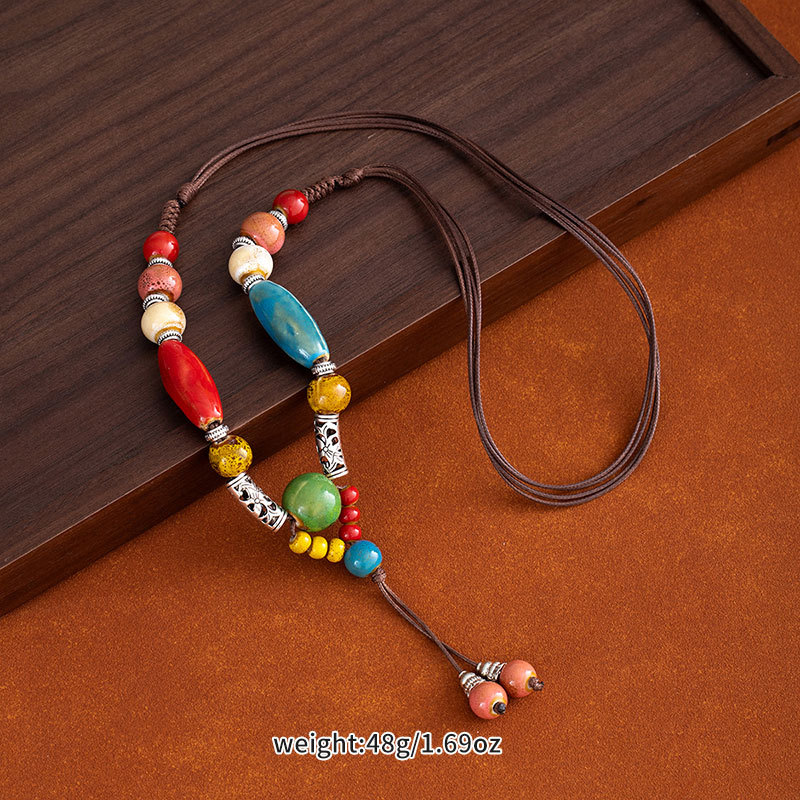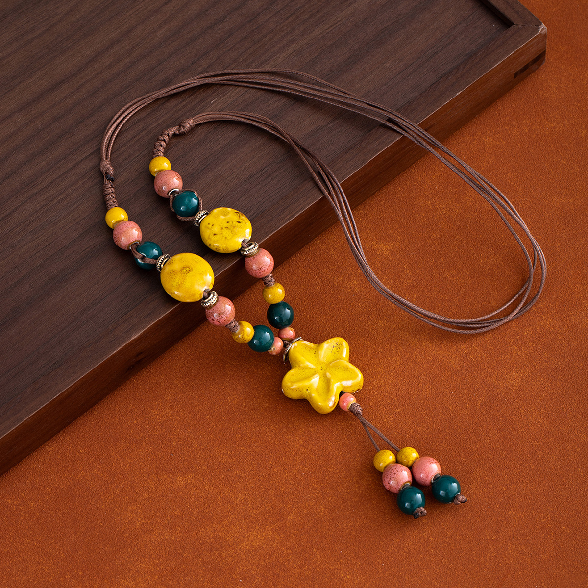 景德镇陶瓷不掉色热销项链新中式民族风毛衣链古风编织绳长款颈链