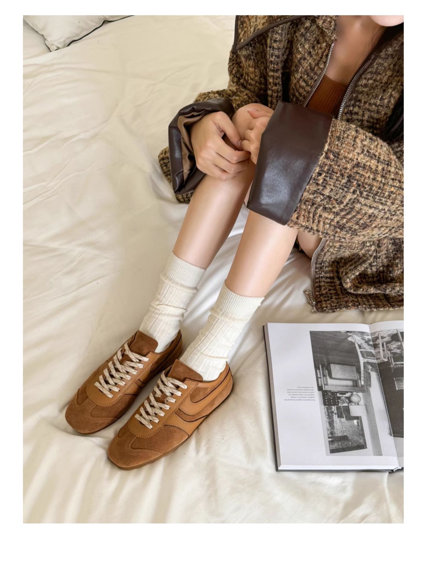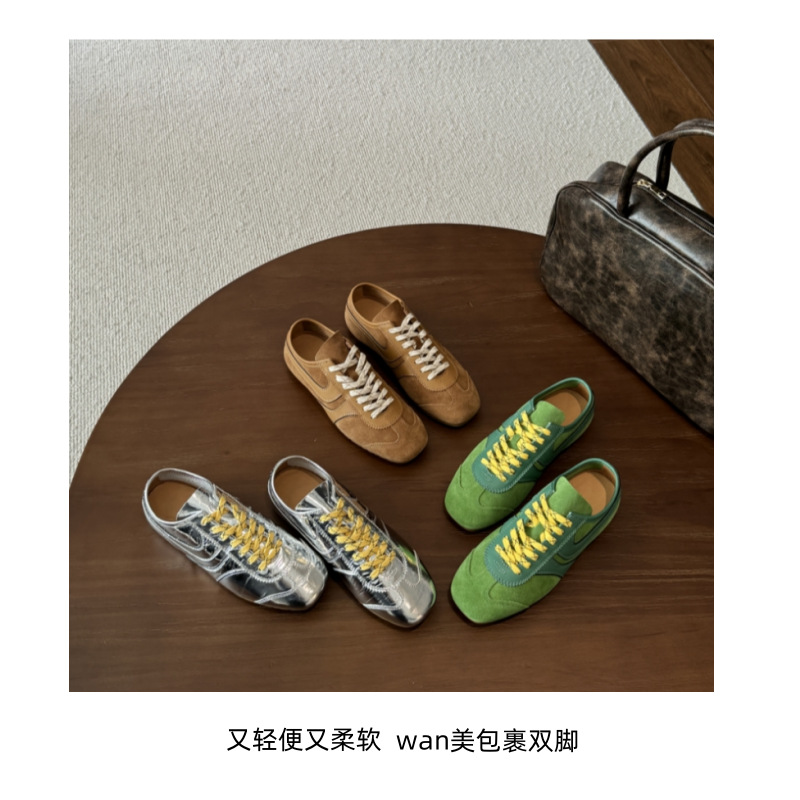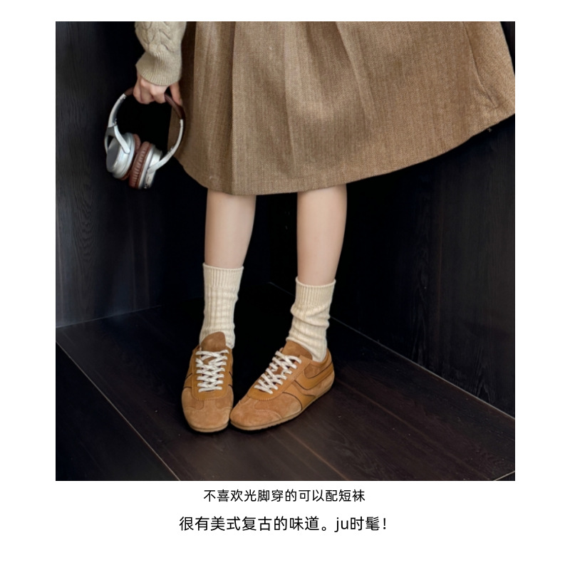 牛皮版~秋季真皮阿甘鞋休闲百搭运动鞋复古系带小众低帮德训鞋女