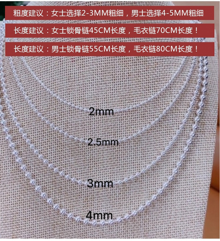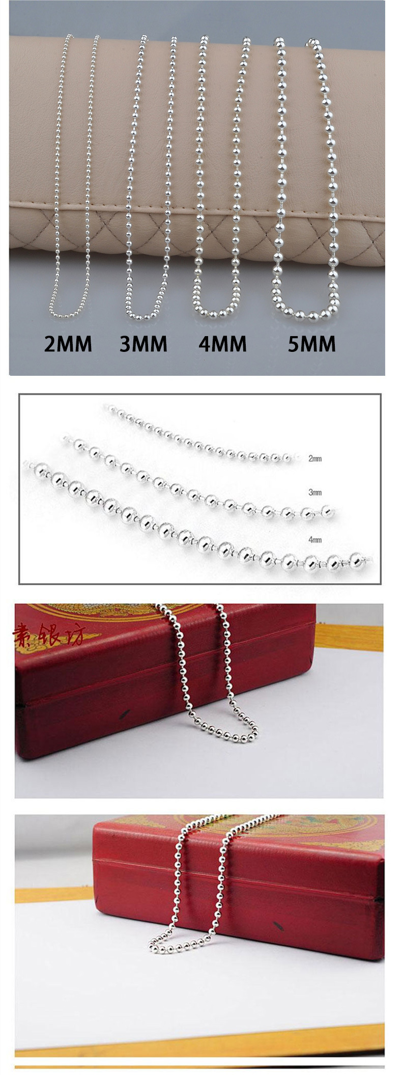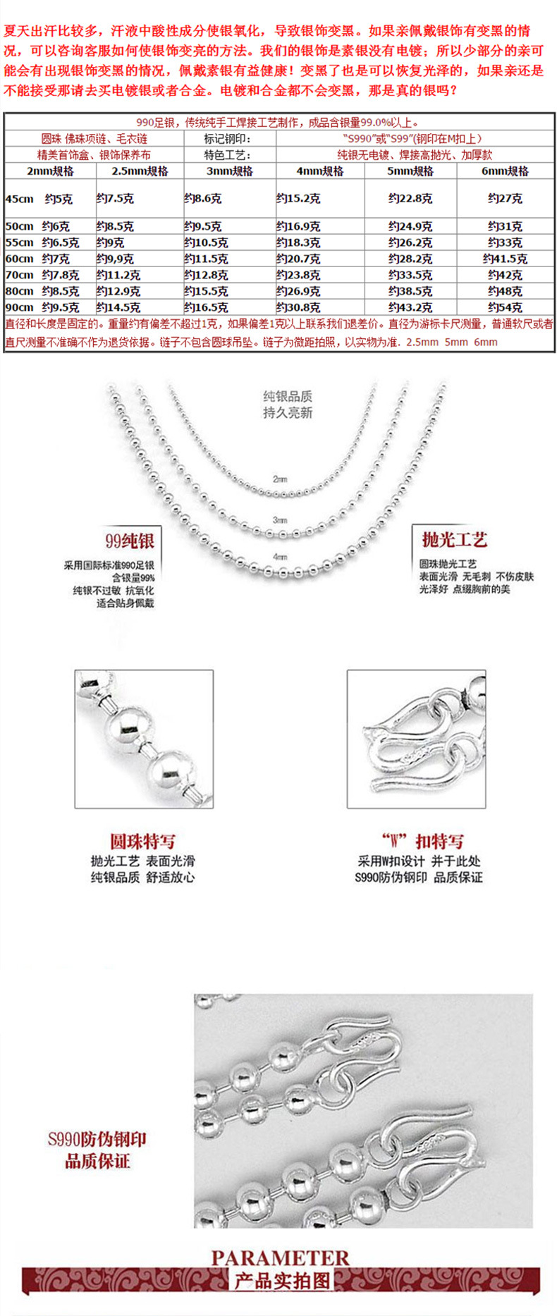 佛珠简约豆豆长链圆珠毛衣链纯银项链999足银女正品银项链 无吊坠