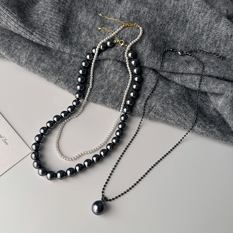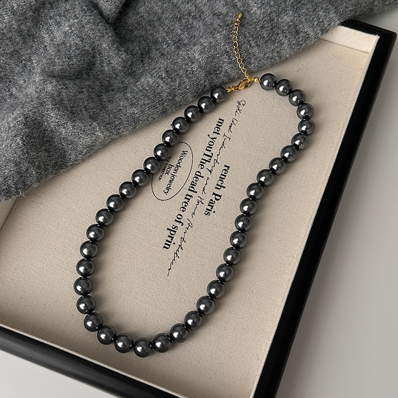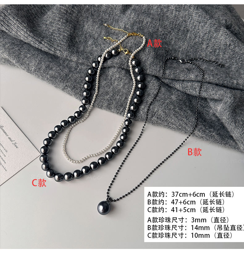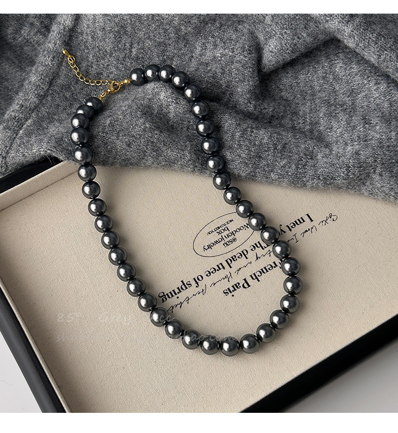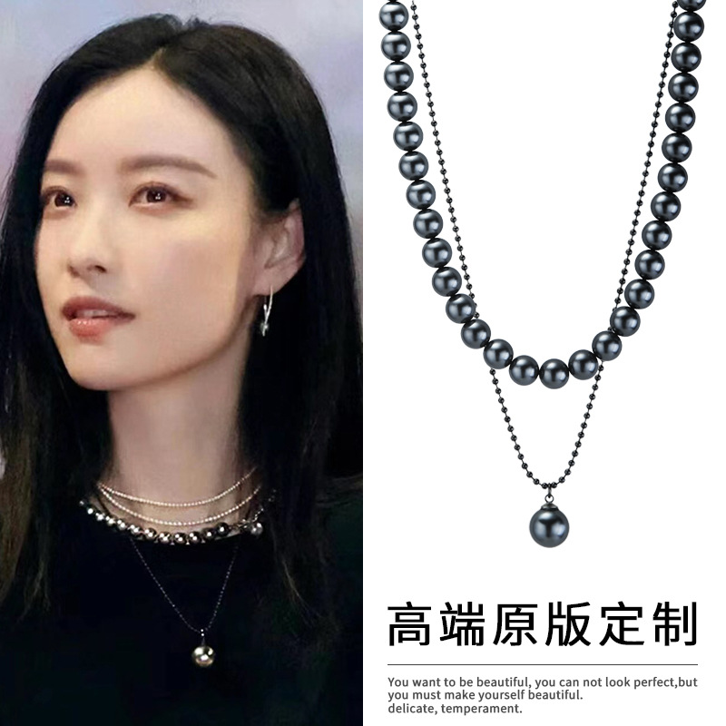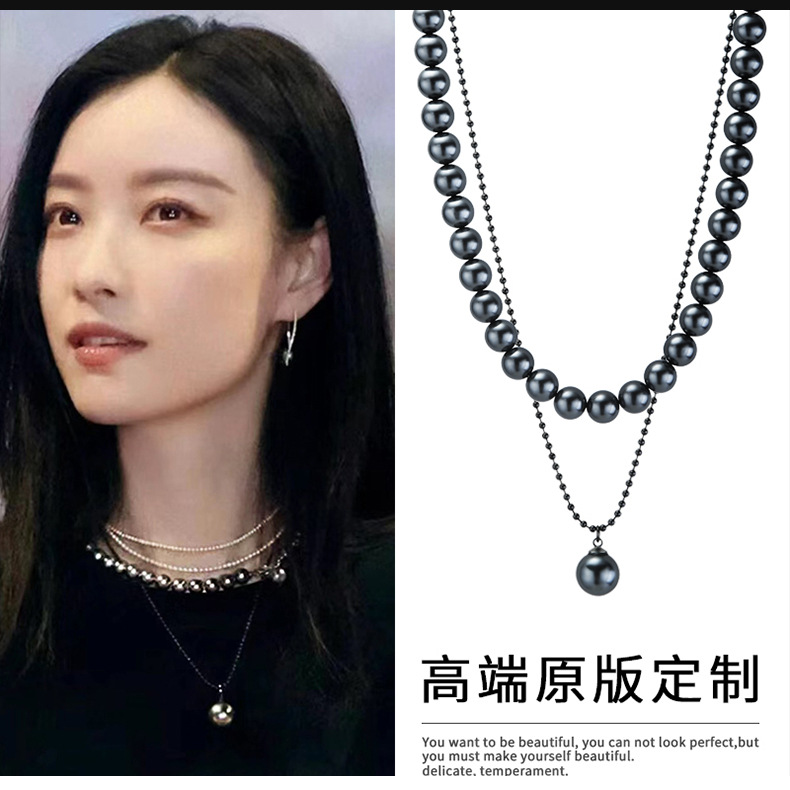 倪妮同款大溪地黑色珍珠项链女轻奢高级感锁骨链气质毛衣链脖颈链
