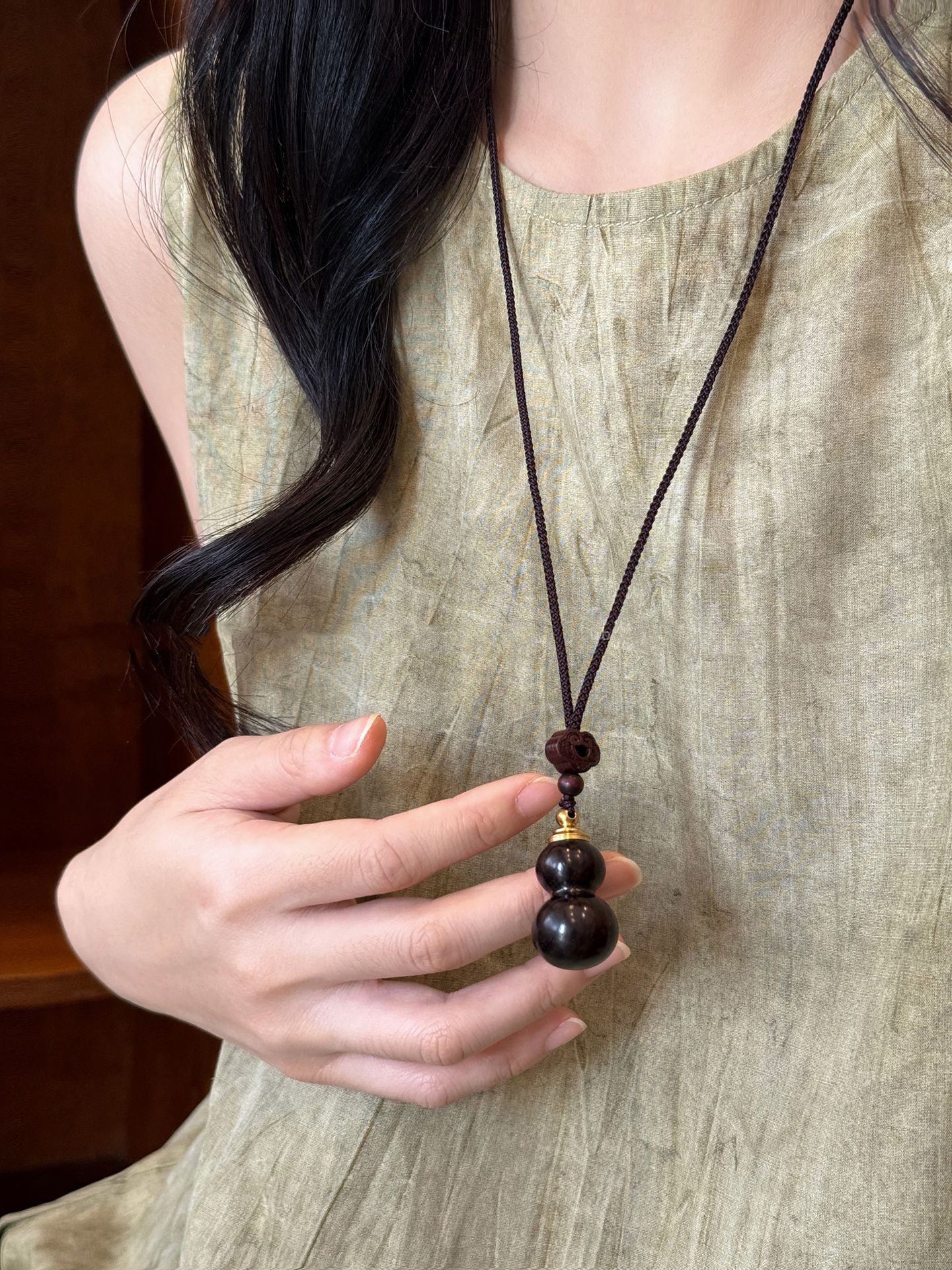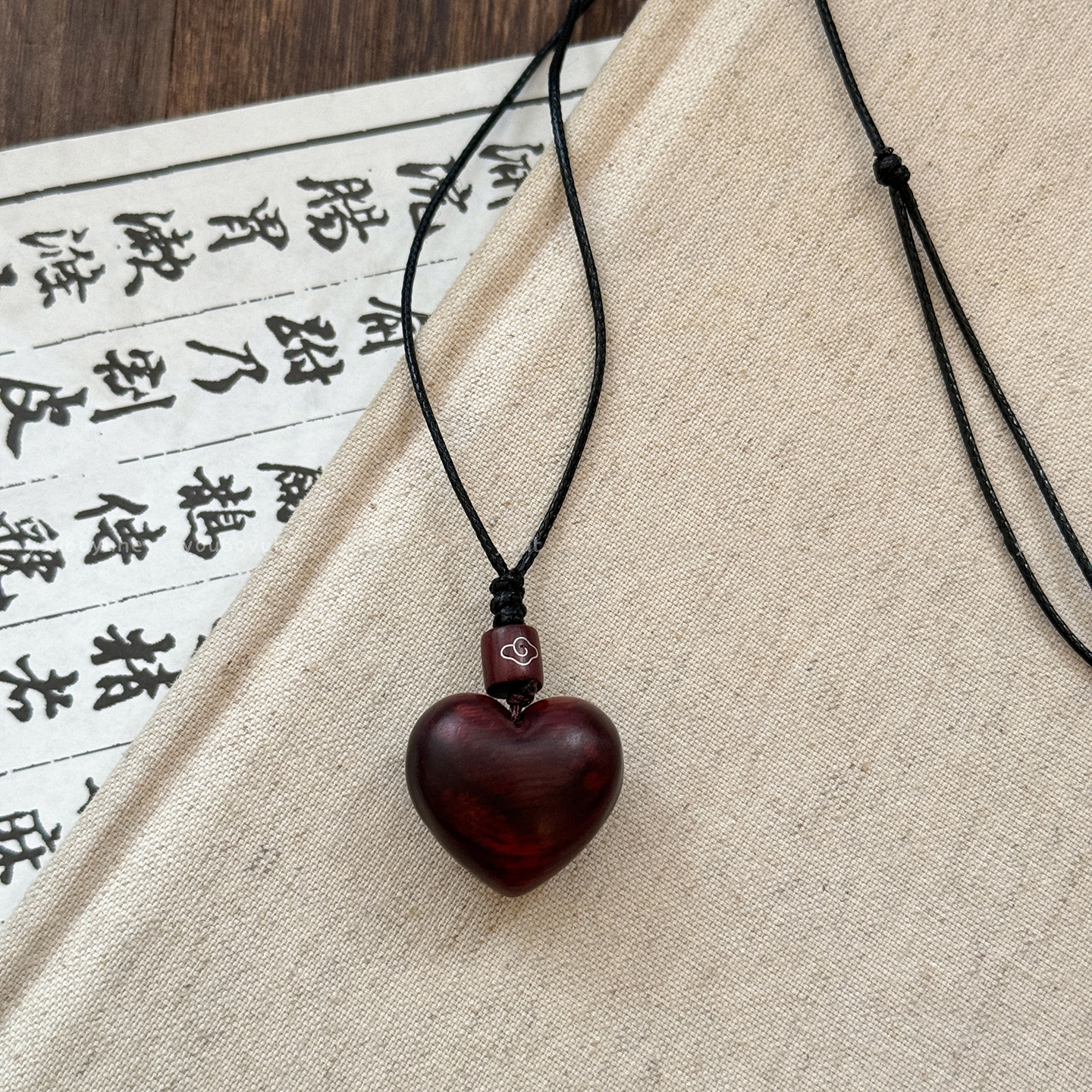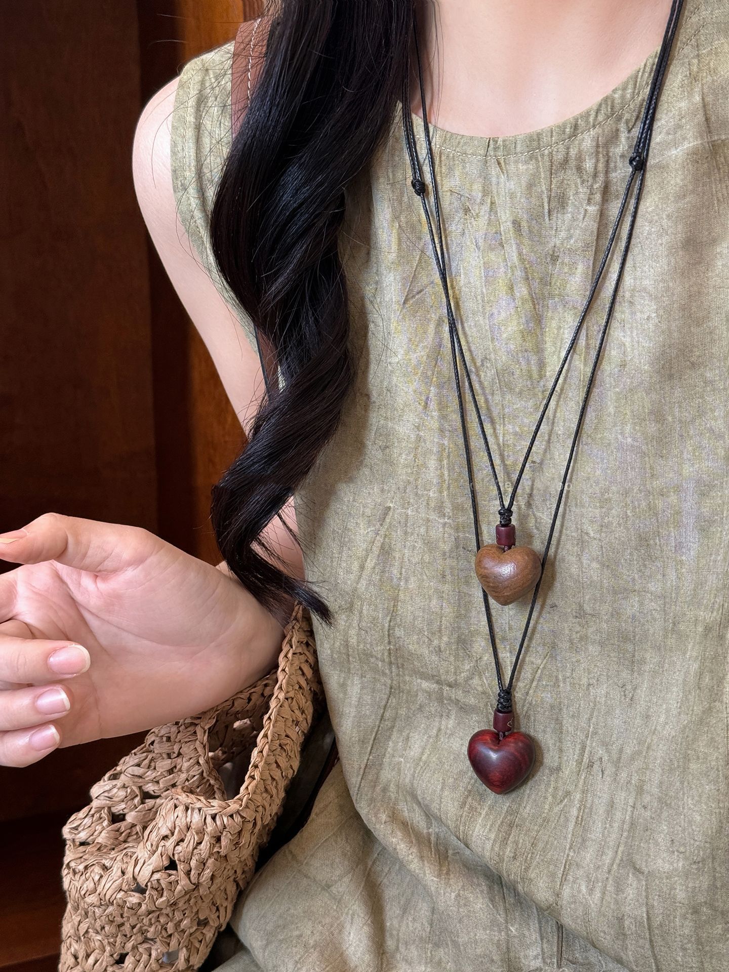 复古风蜡绳木头爱心吊坠项链气质高级感毛衣链时尚项饰设计感小众