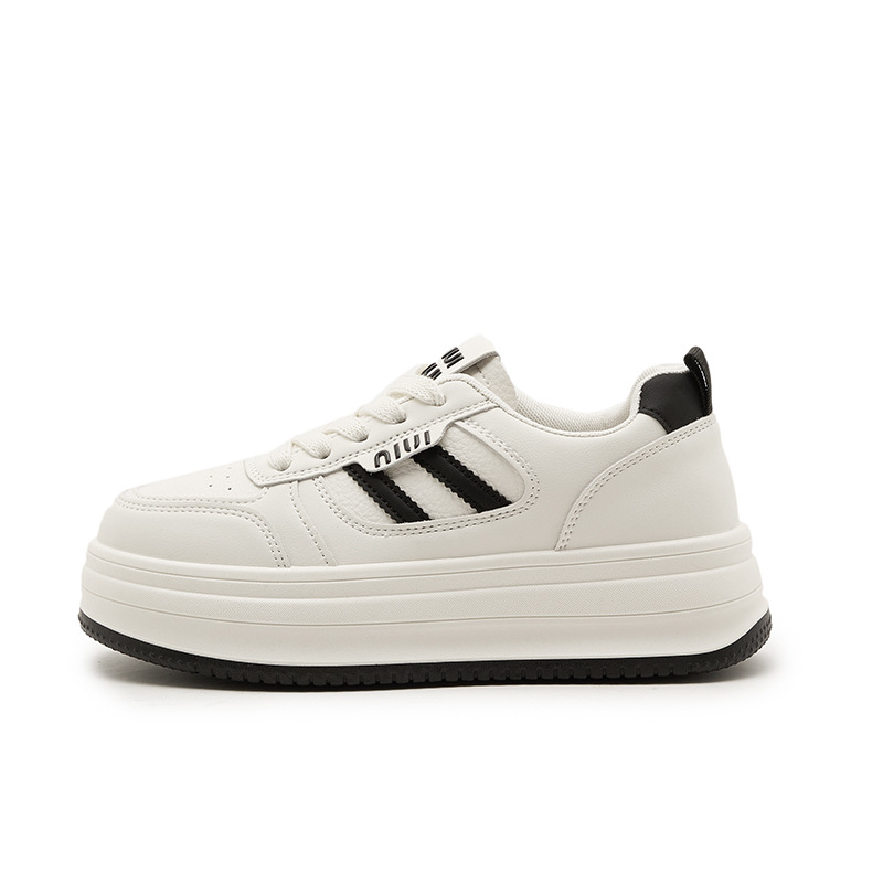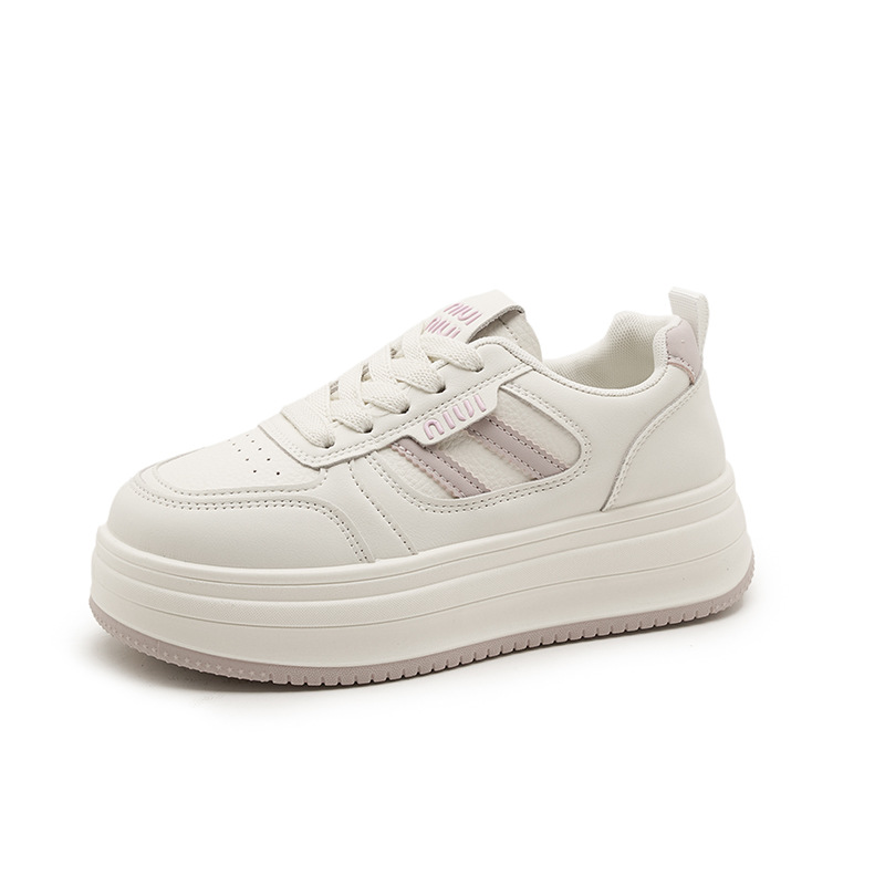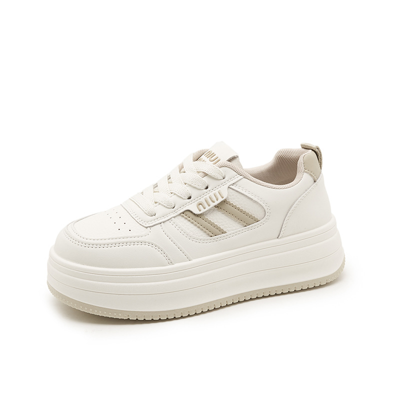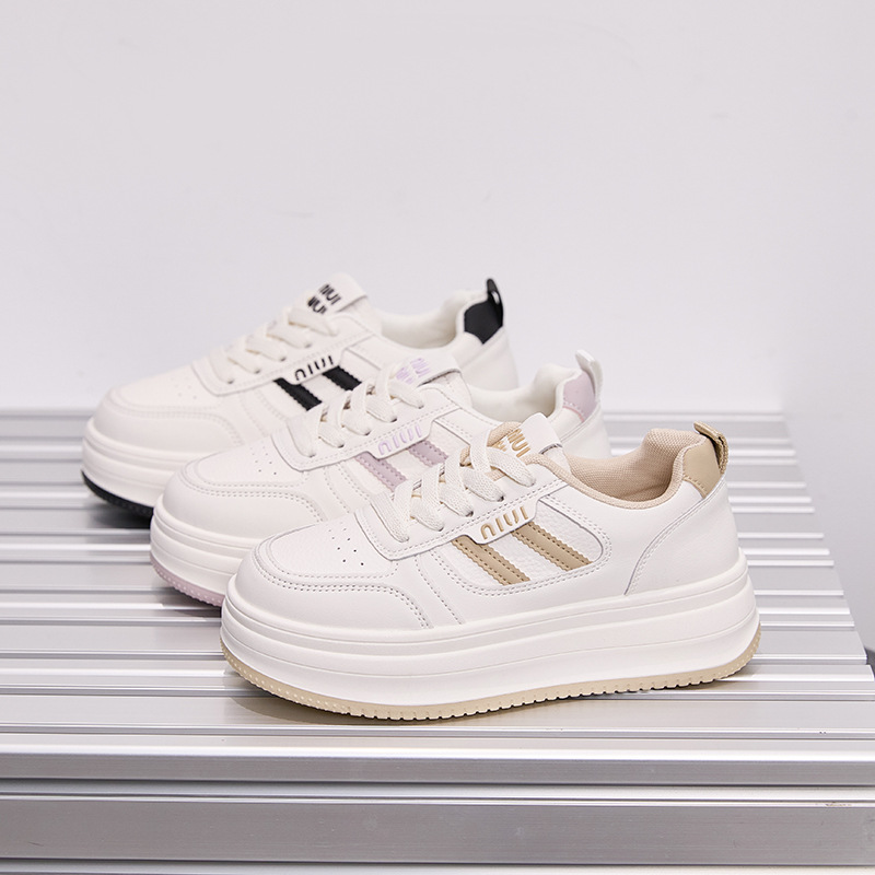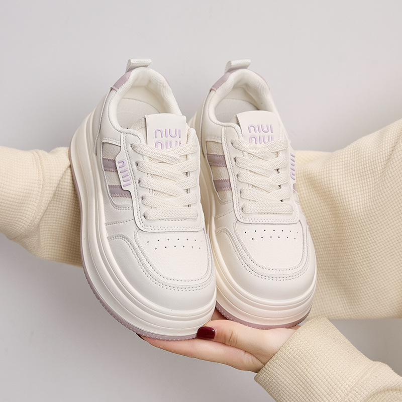 真皮小白鞋2025秋季新款厚底休闲运动鞋超火系带透气板鞋女单鞋女