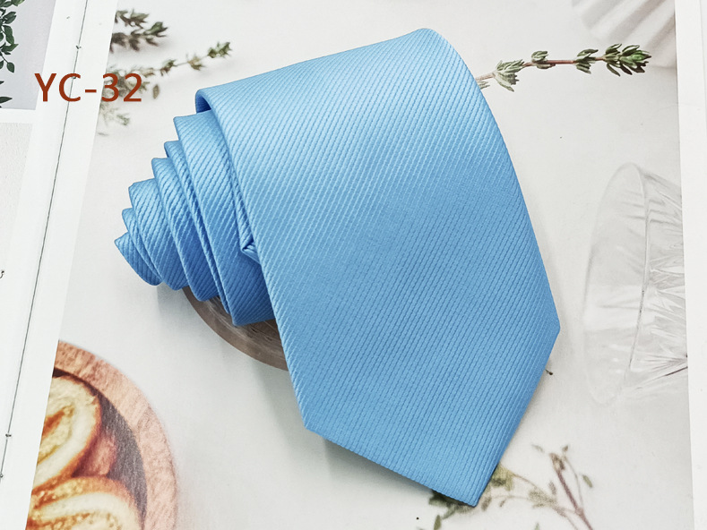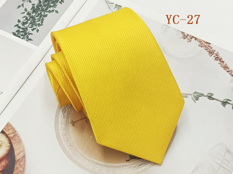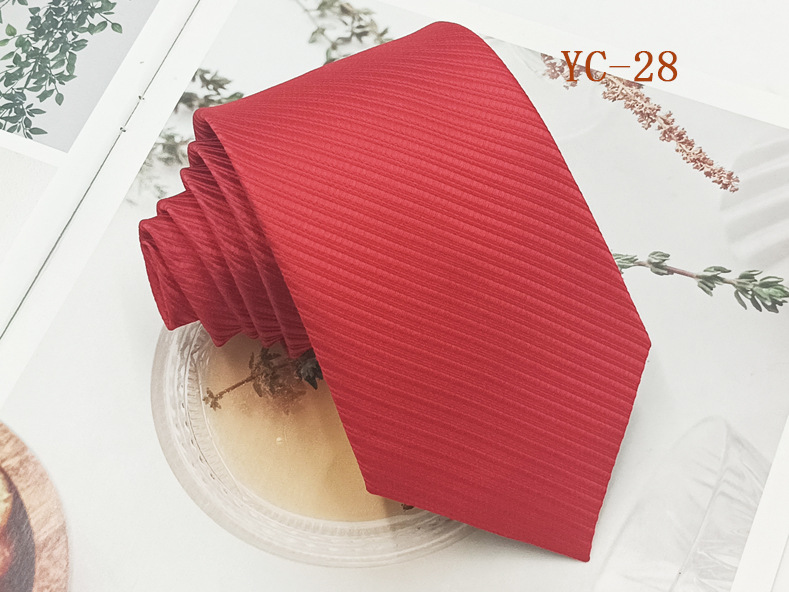 商务休闲男士领带 涤纶丝斜纹黑色红色西装配饰 8cm手打纯色领带