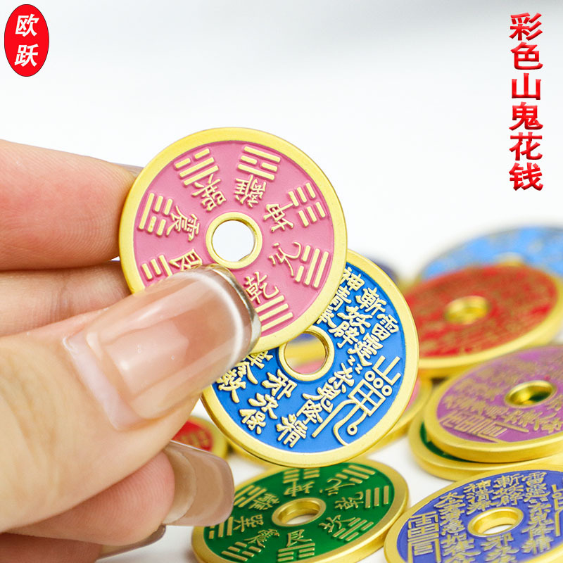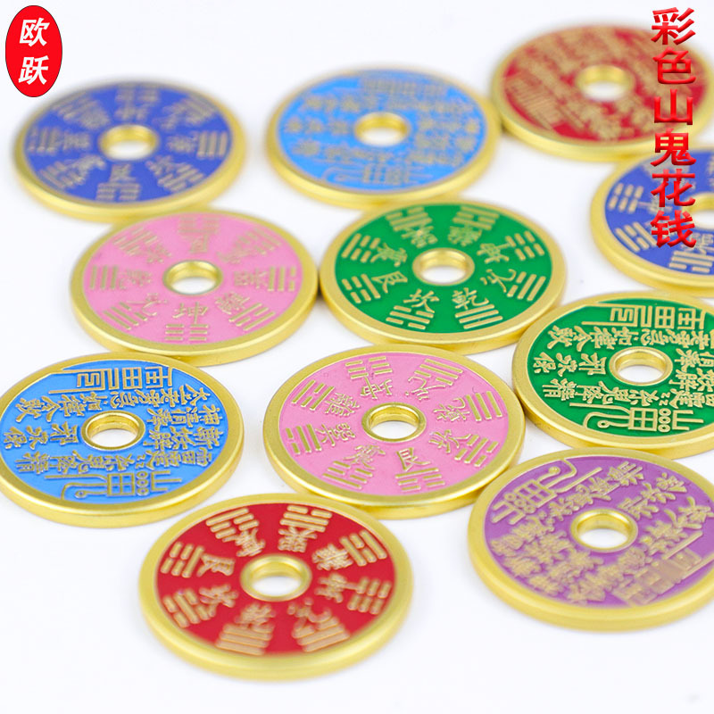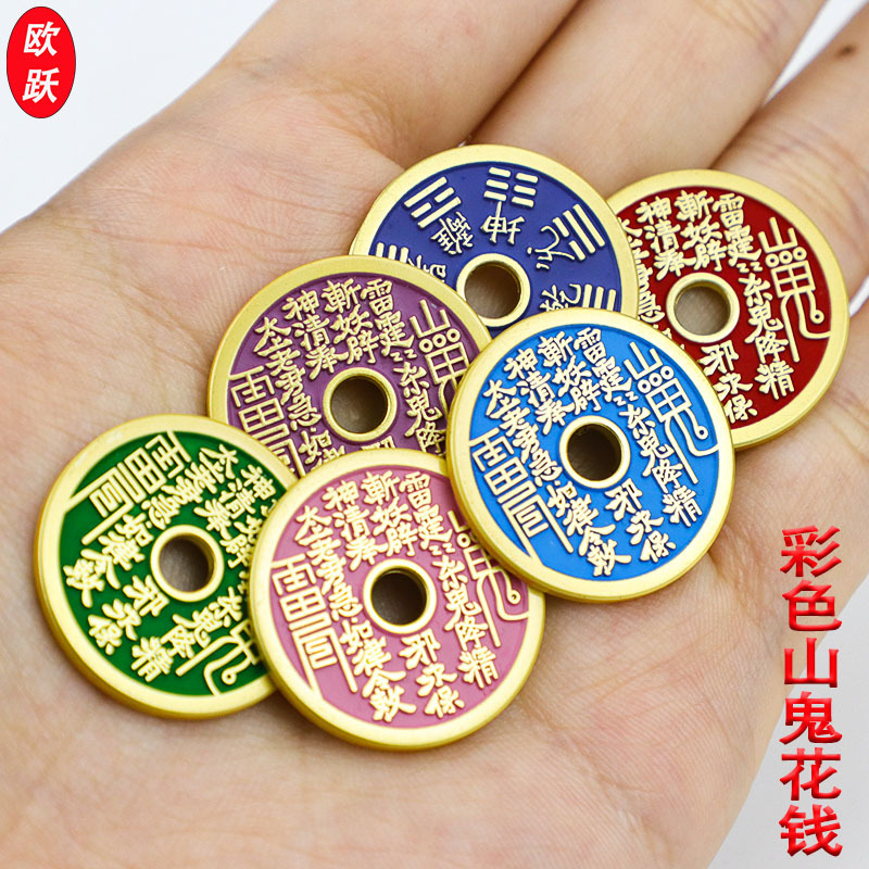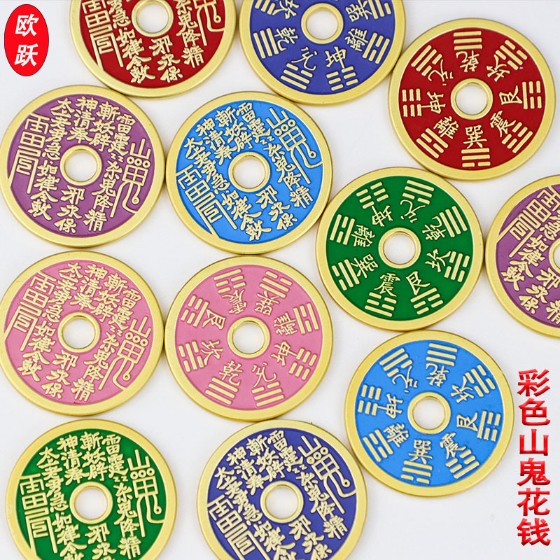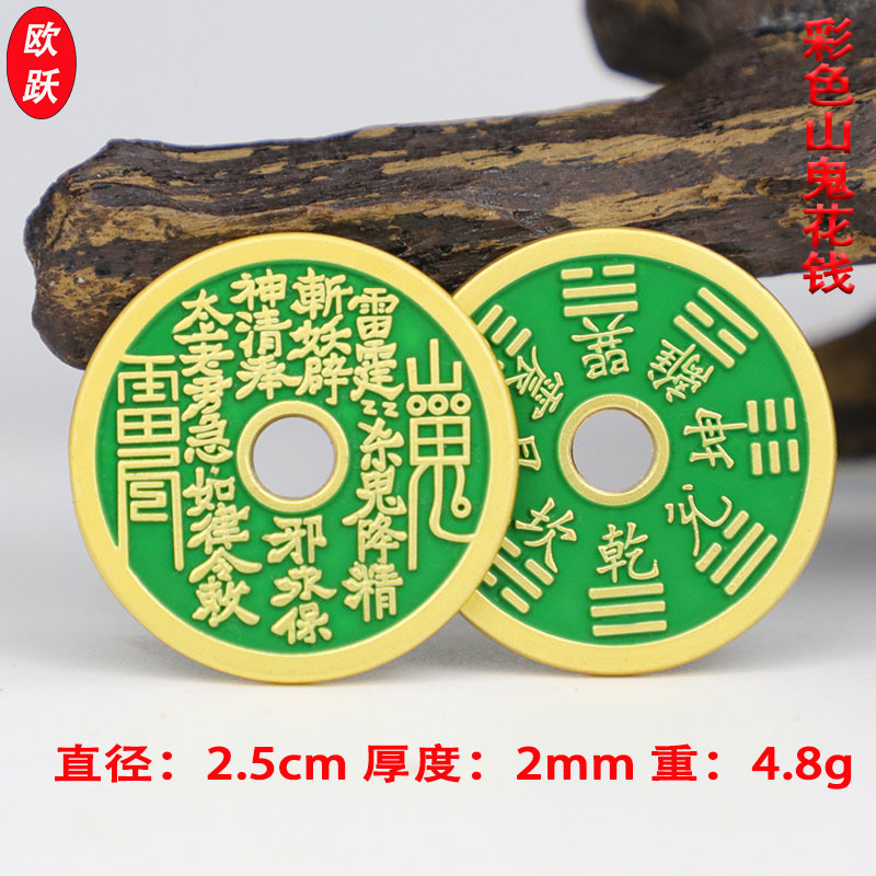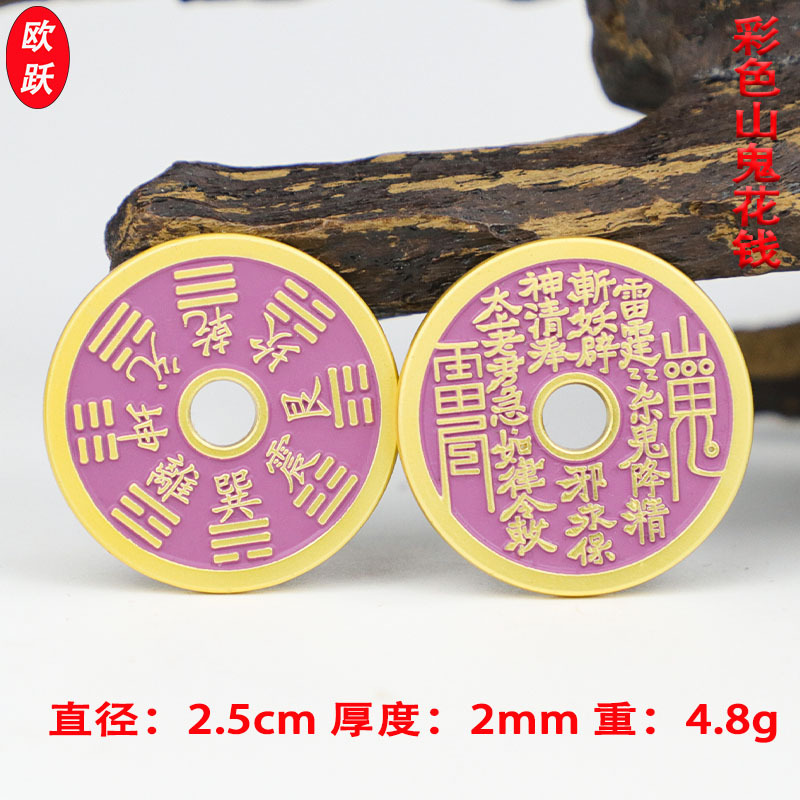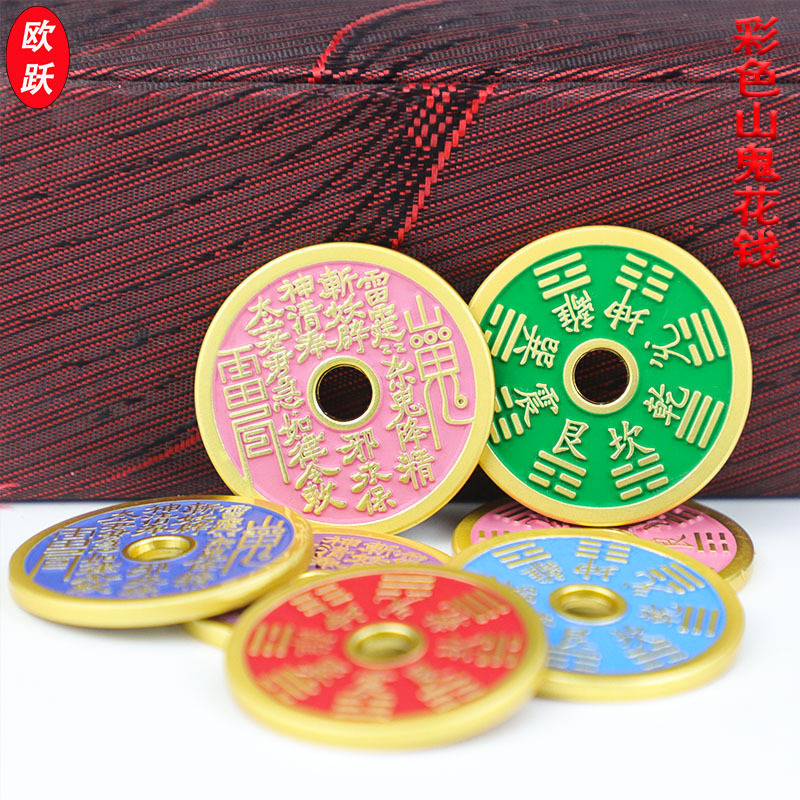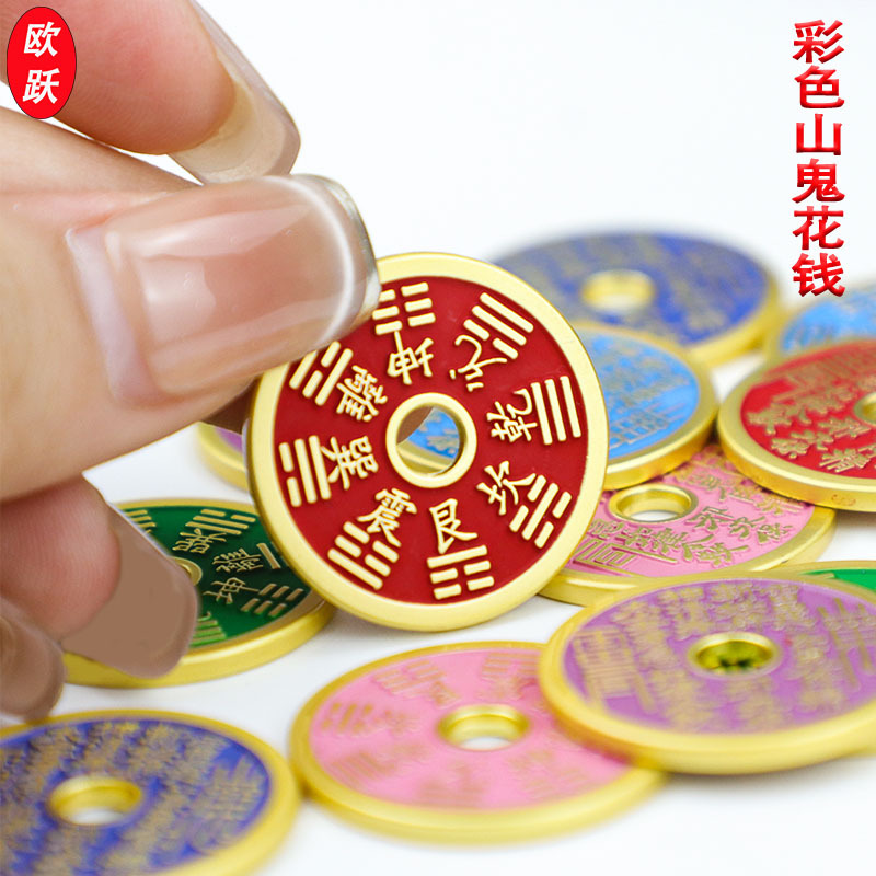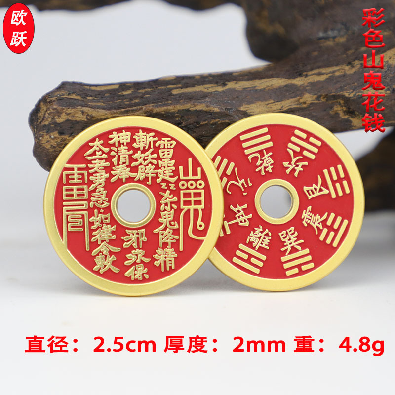 欧跃批发朱砂彩色山鬼花钱八卦钱币仿古铜钱复古铜币中式挂件