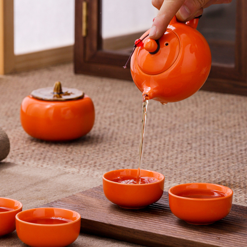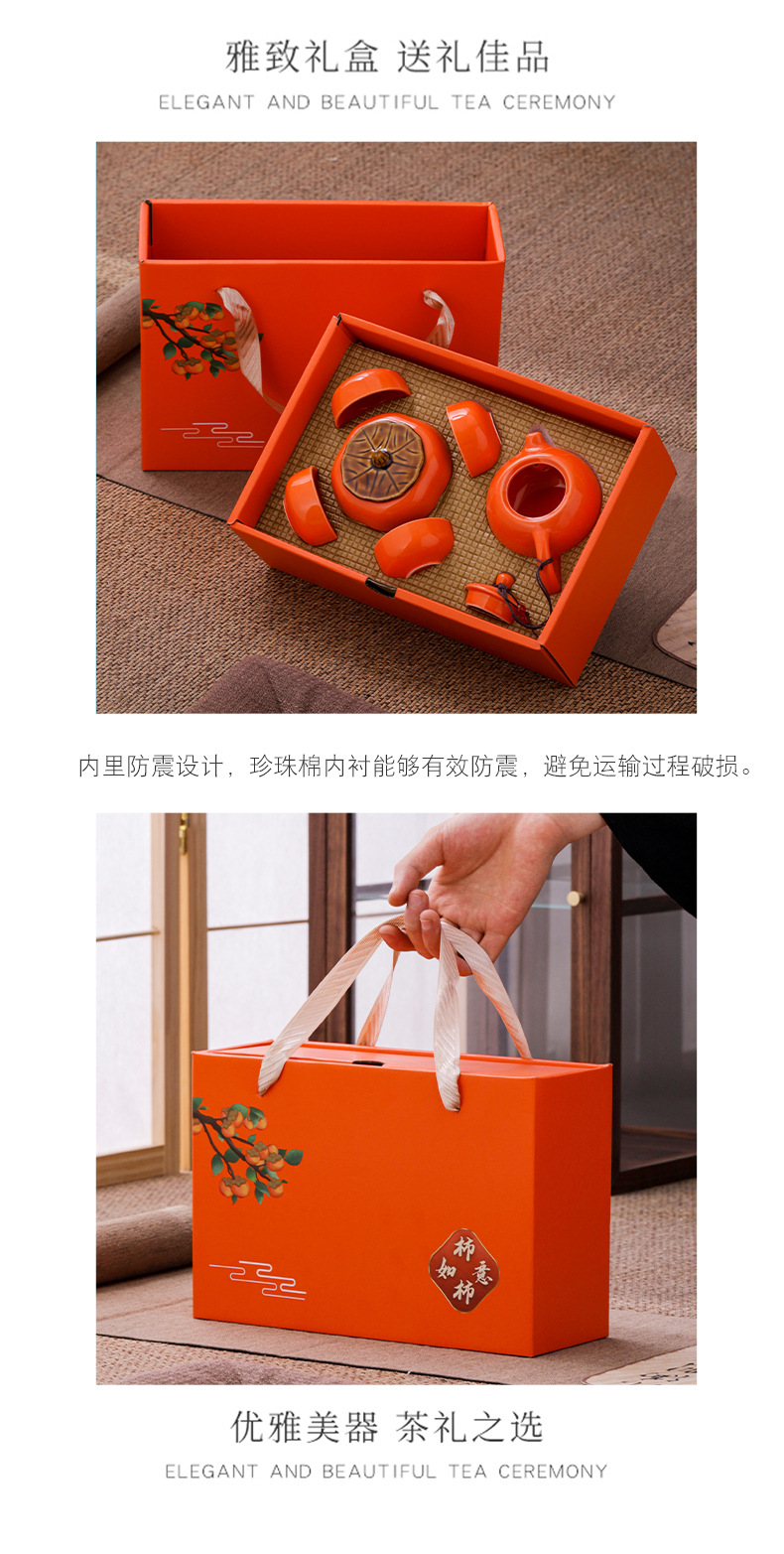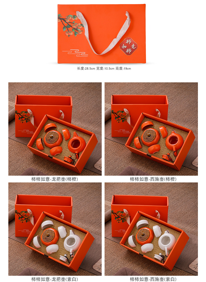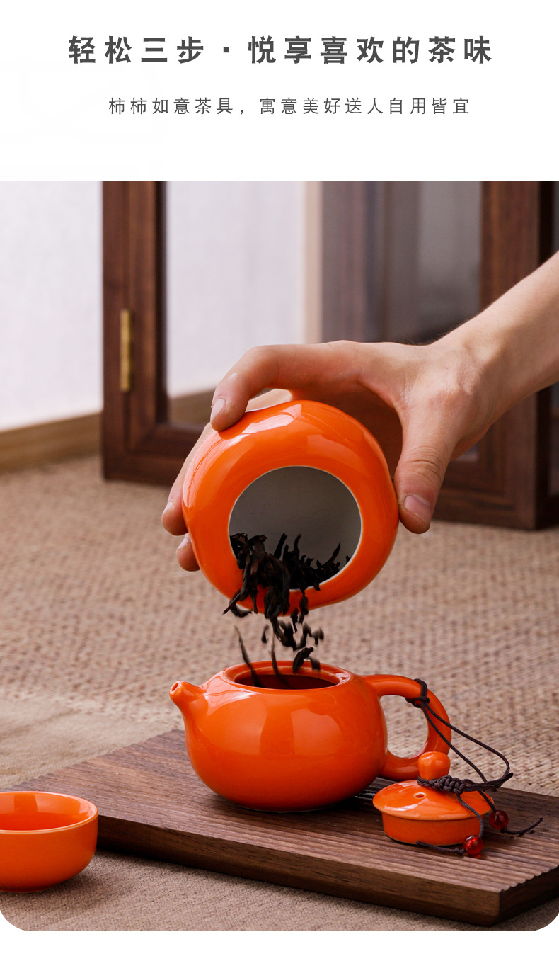 柿柿如意茶具套装陶瓷礼品新年年会乔迁婚礼伴手礼柿子礼盒茶壶