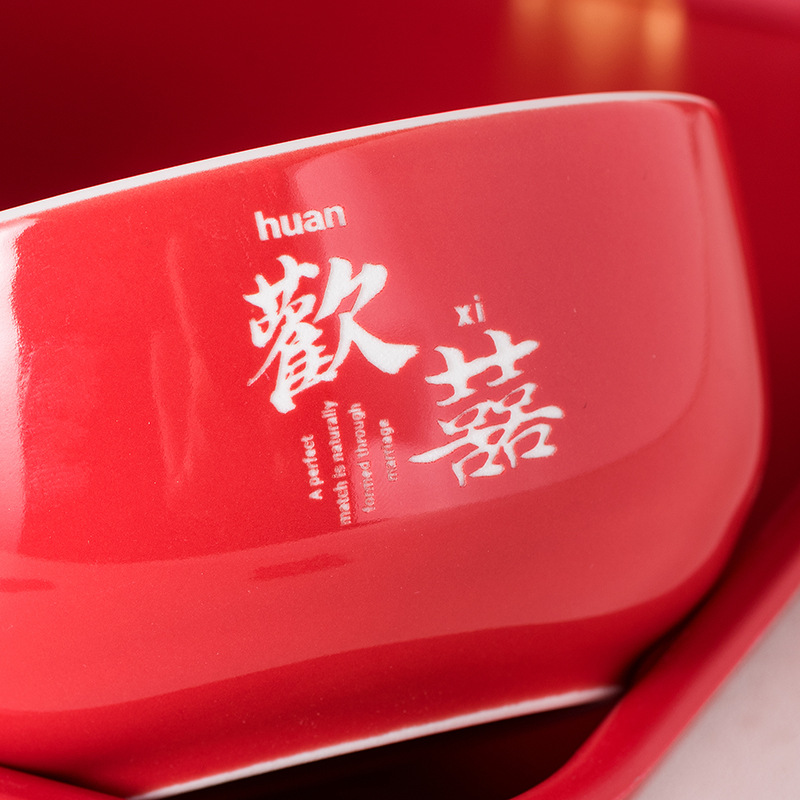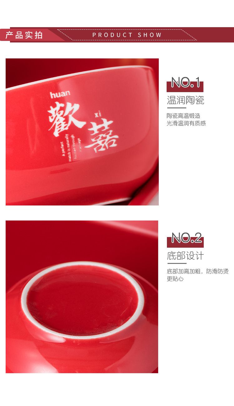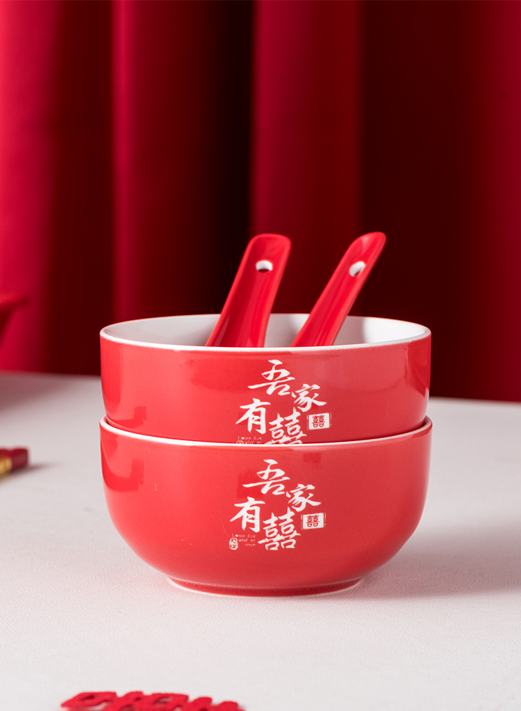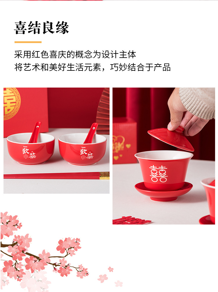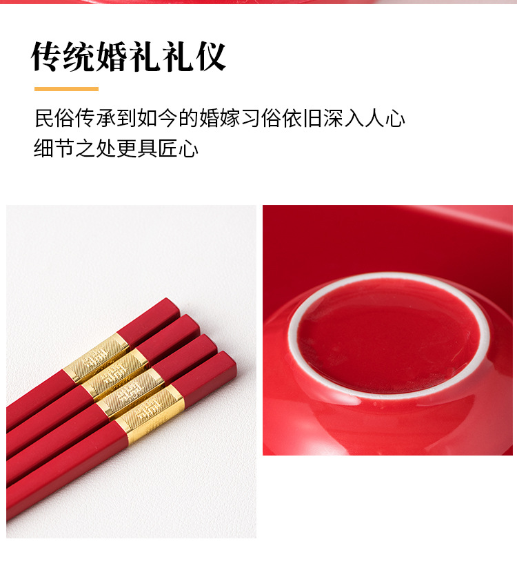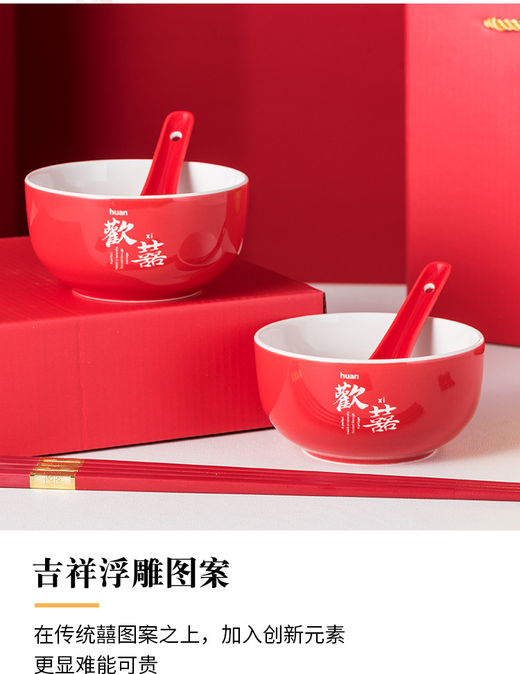 茶杯结婚改口陪嫁喜碗敬酒碗筷茶具套装一对红色喜庆婚礼杯子用品