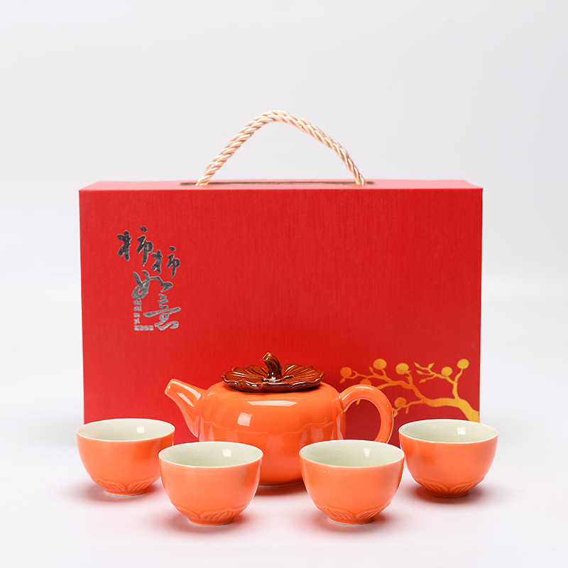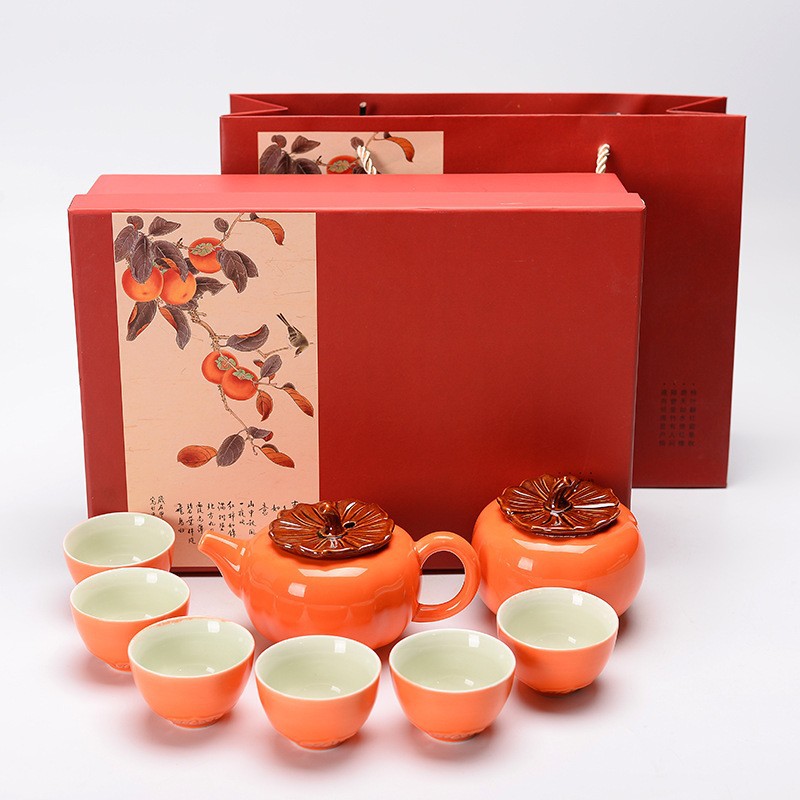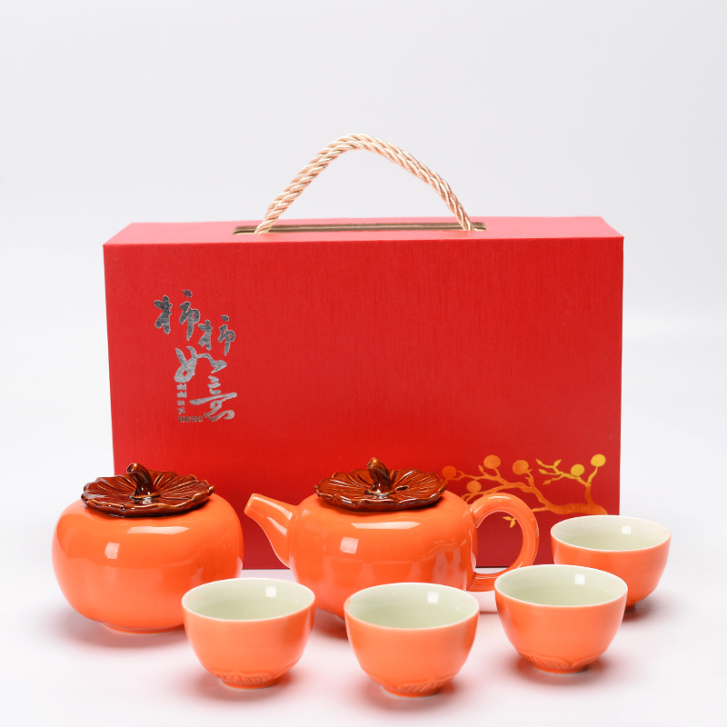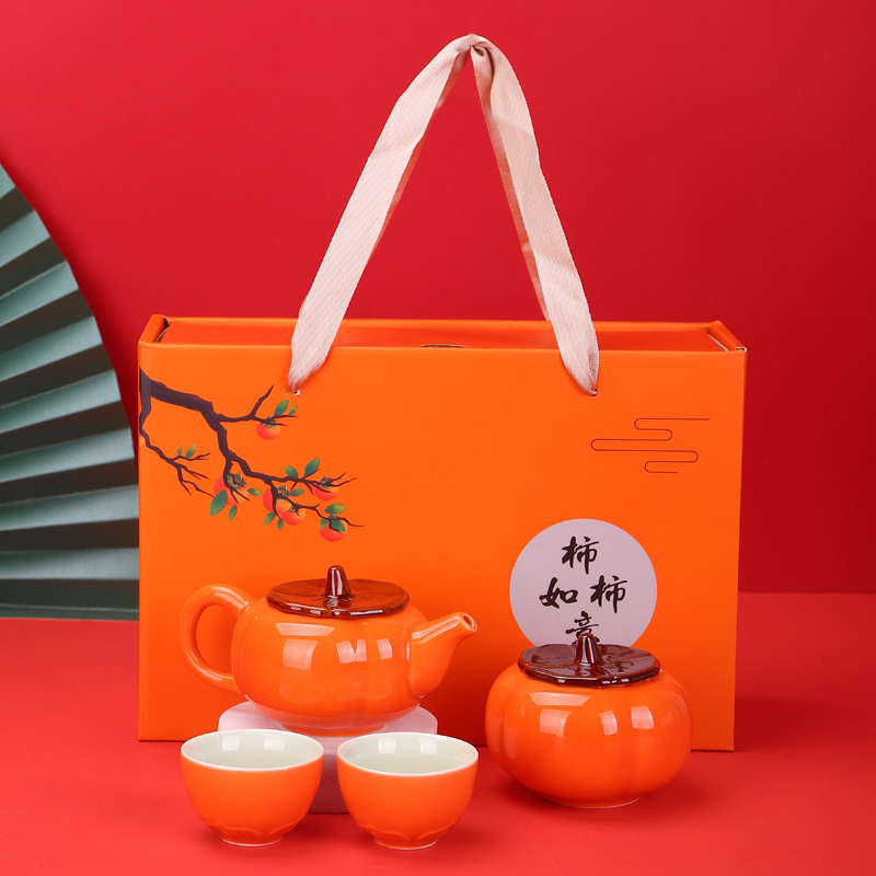 端午保险如意茶具柿子茶叶罐套装婚礼喜庆商务开业活动礼品logo