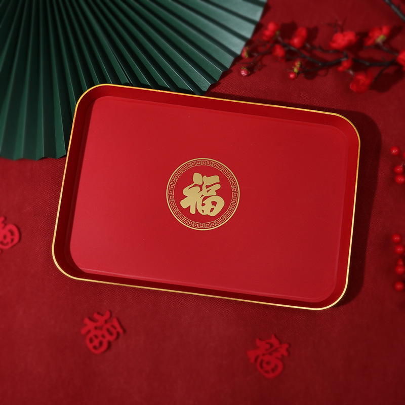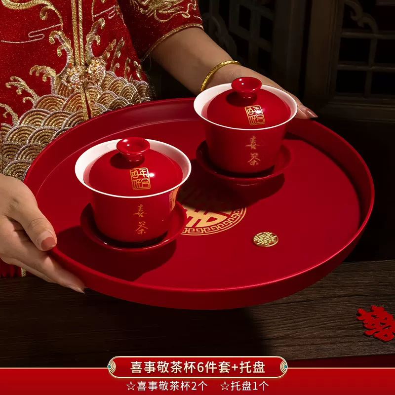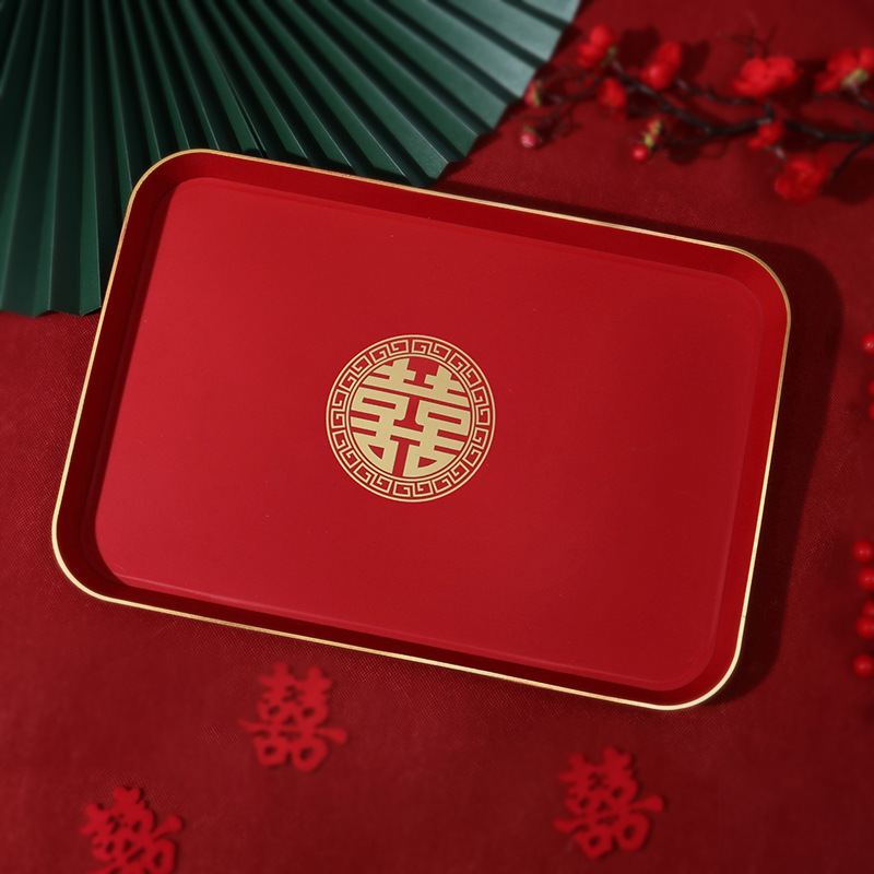 婚礼干果盘结婚用品水果瓜子花生喜宴家用大红婚庆新人敬酒茶托盘