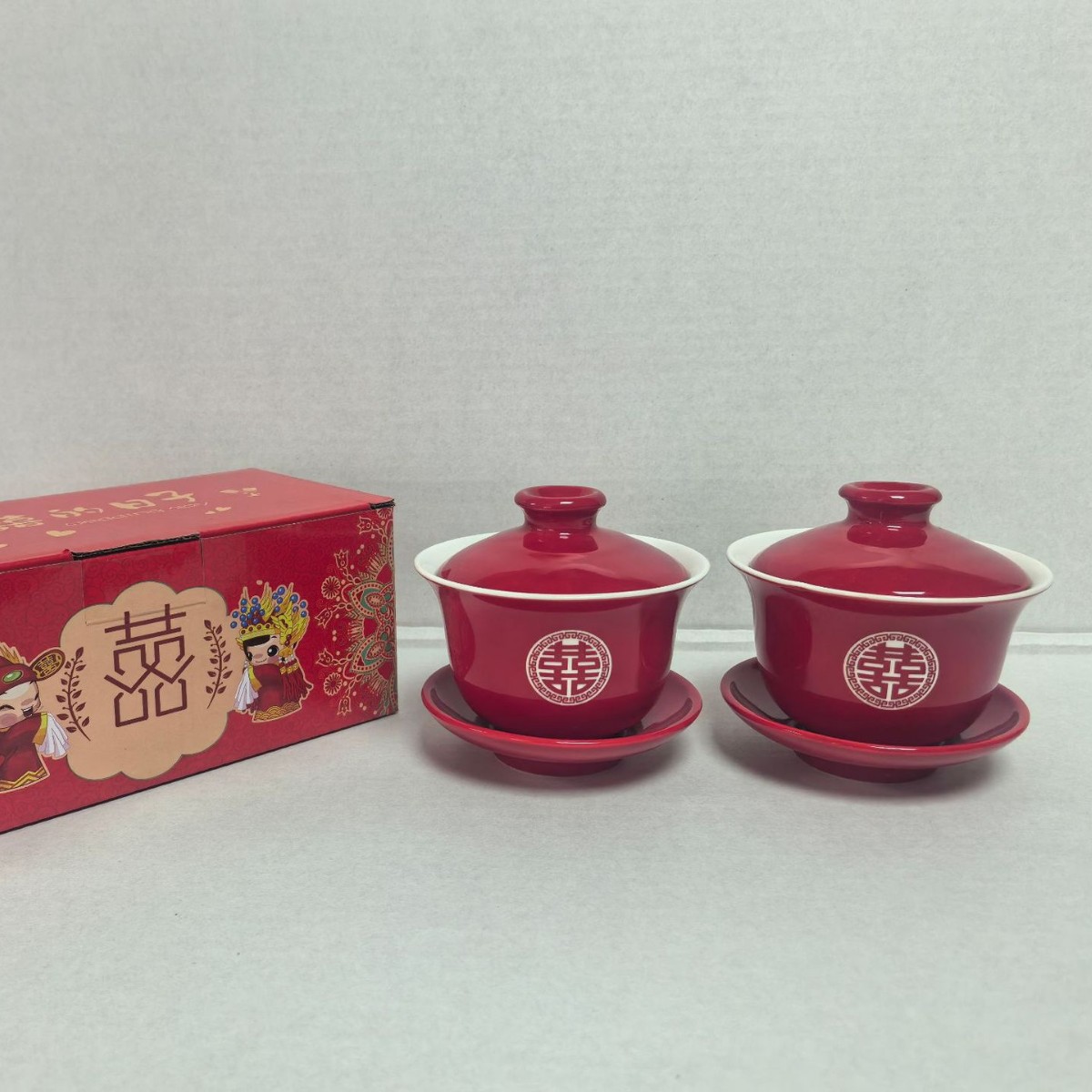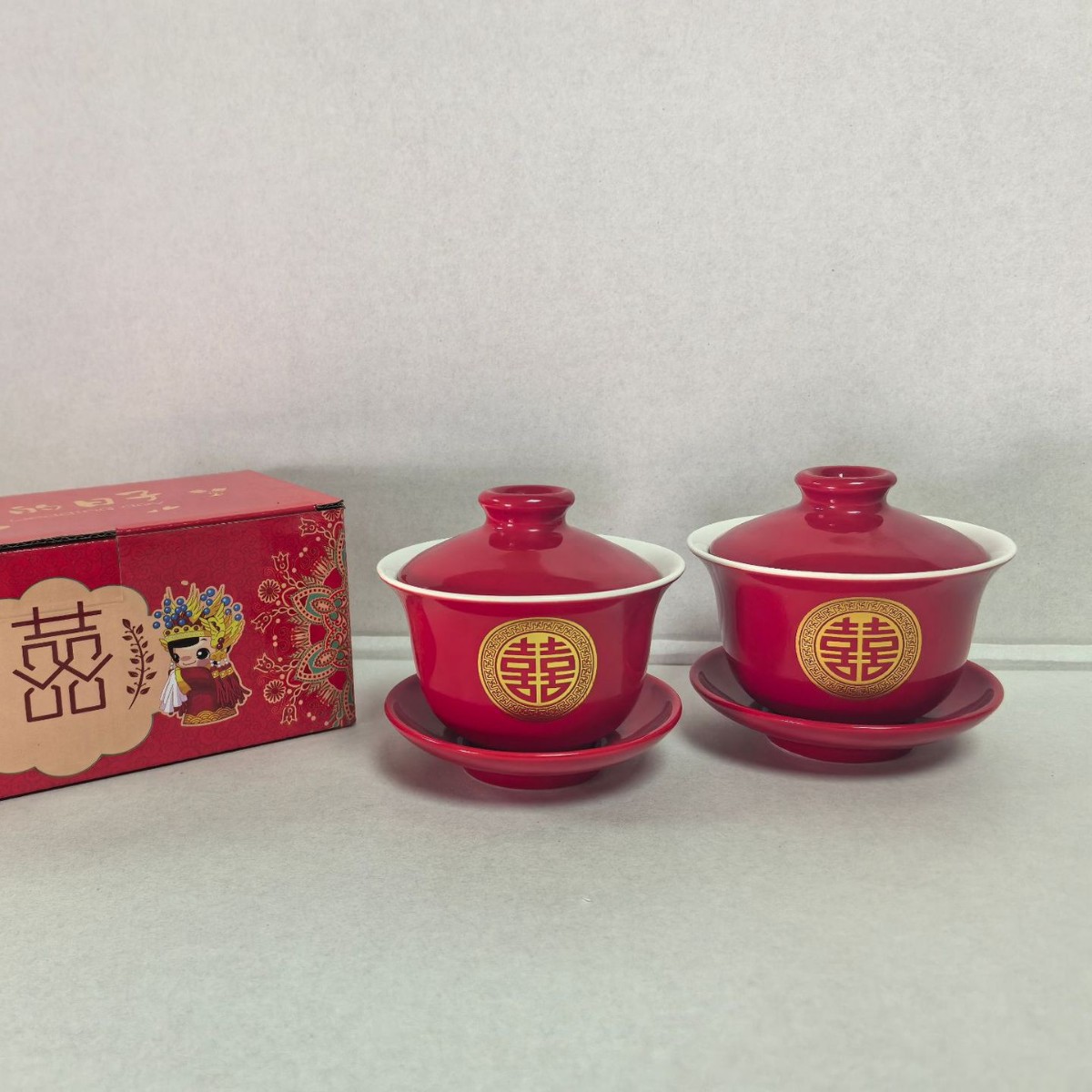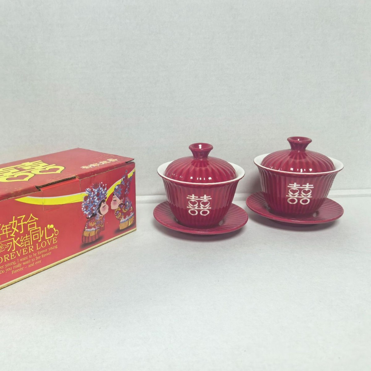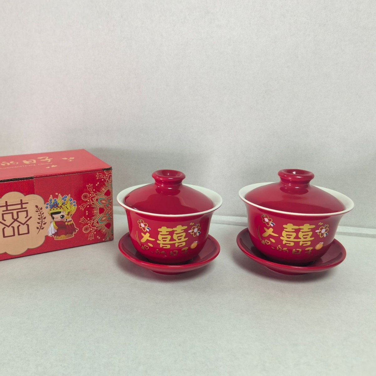 中国风结婚喜事改口敬茶杯套装喜结连理陪嫁对杯婚庆礼品陶瓷盖碗