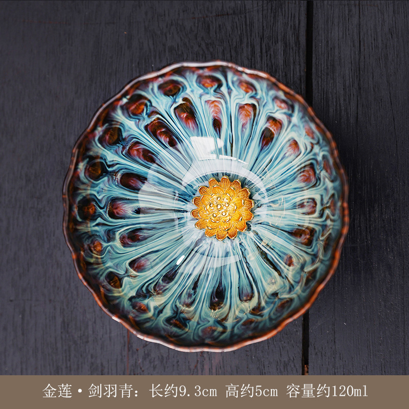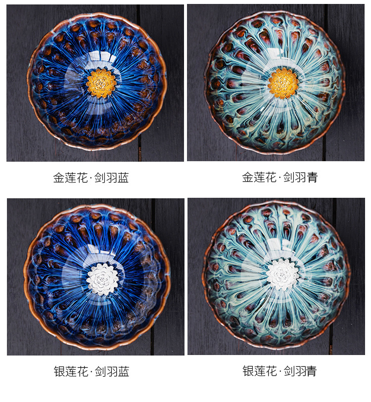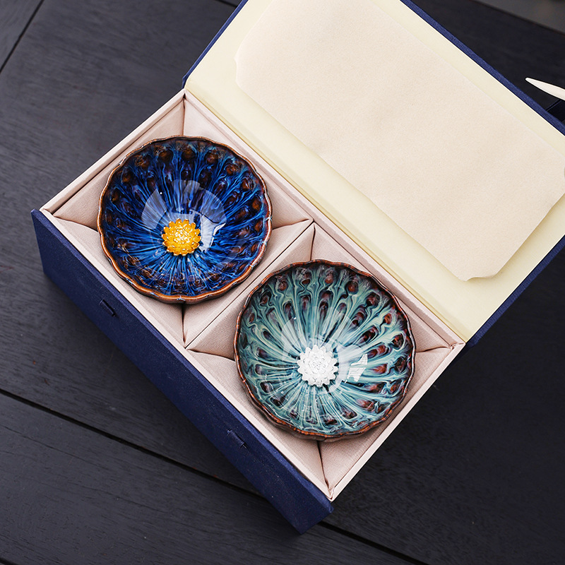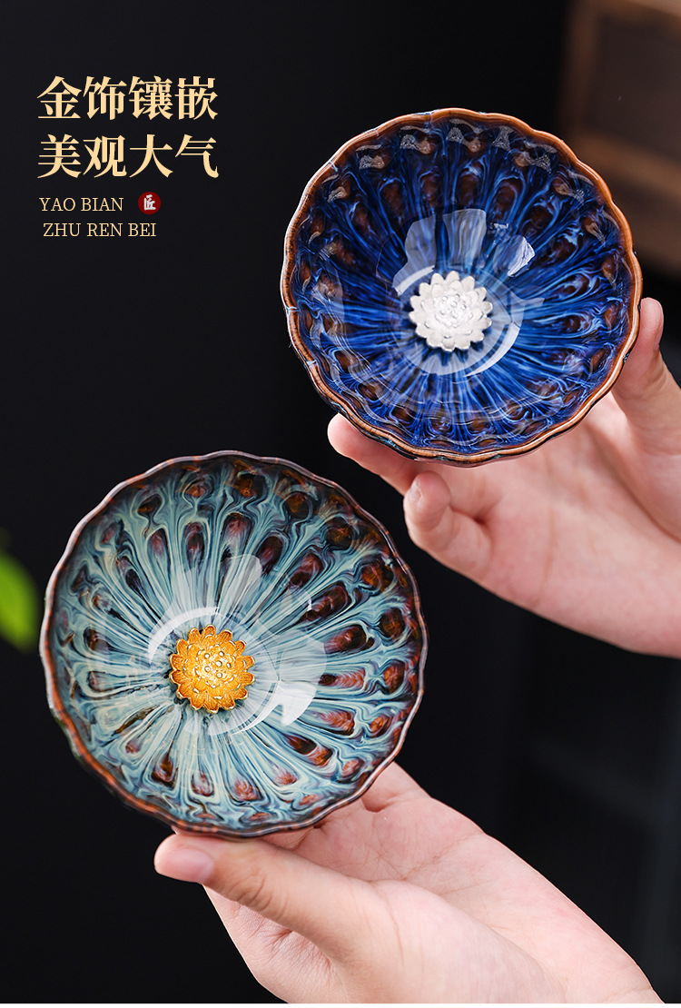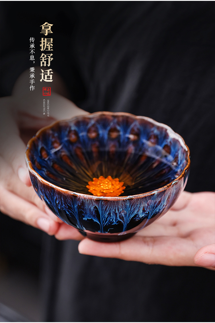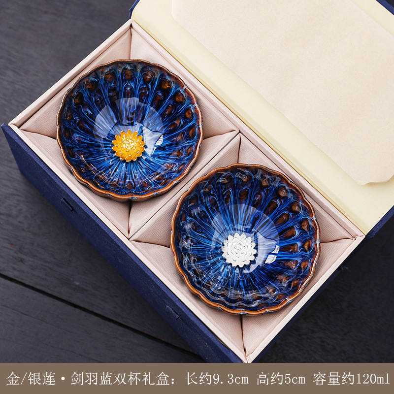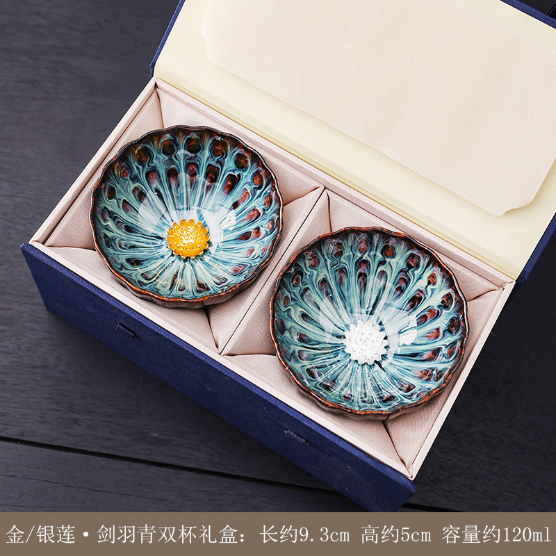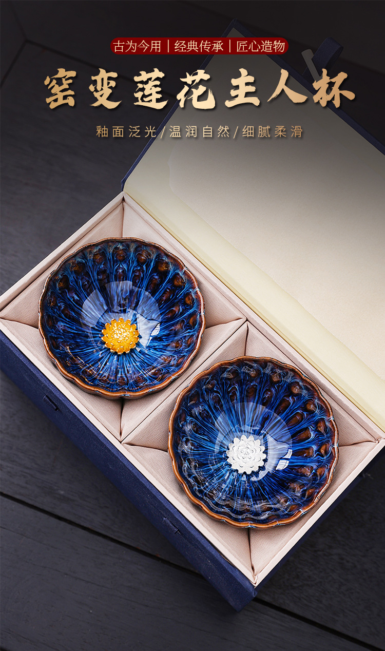 敦煌莲花茶杯主人杯建盏陶瓷功夫茶盏窑变结婚对杯家用送老外礼盒