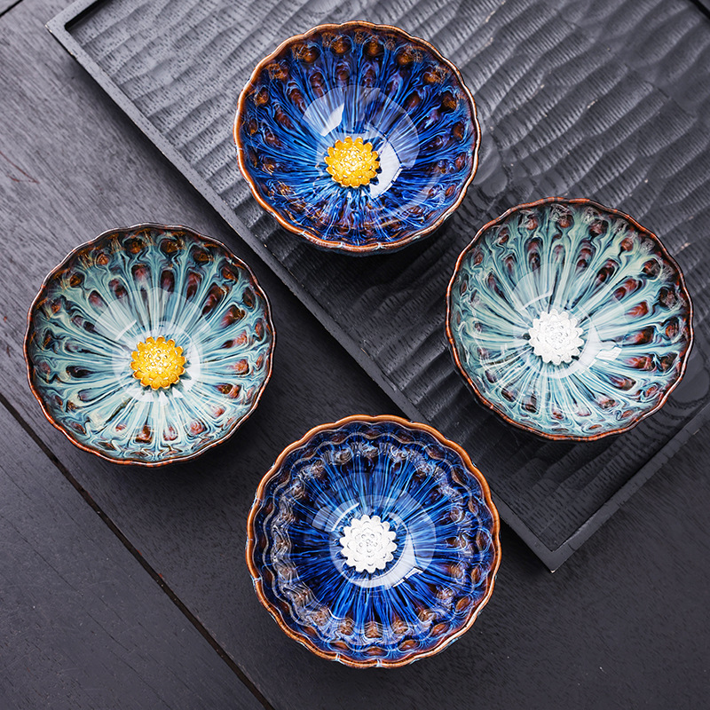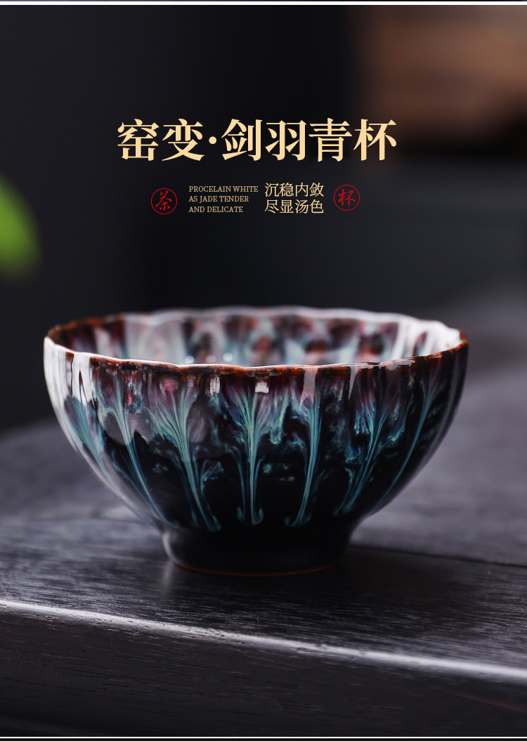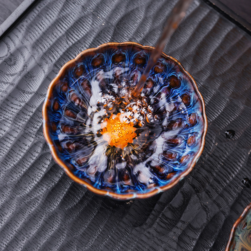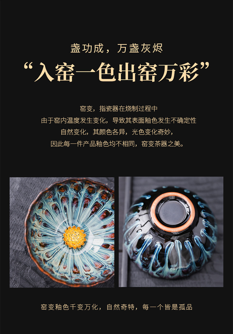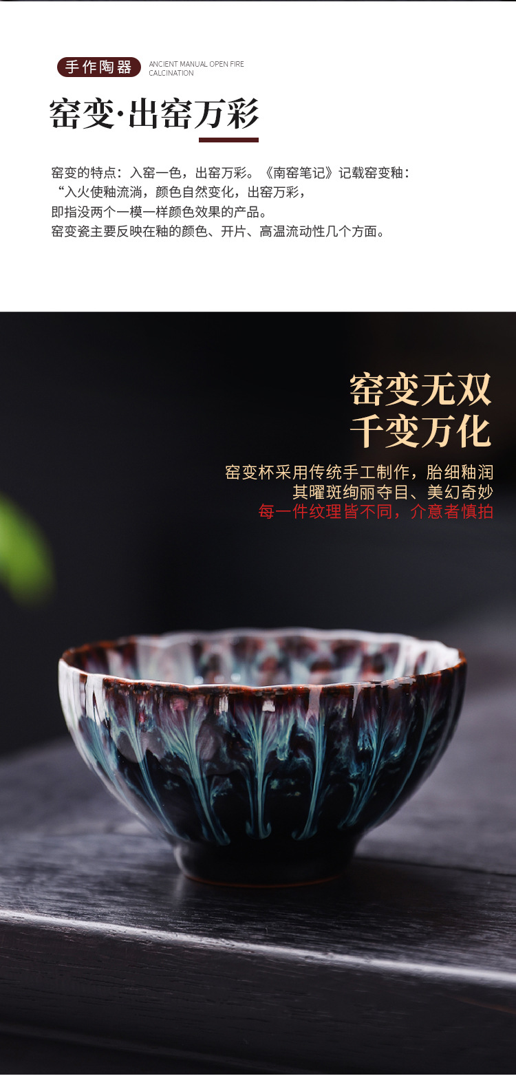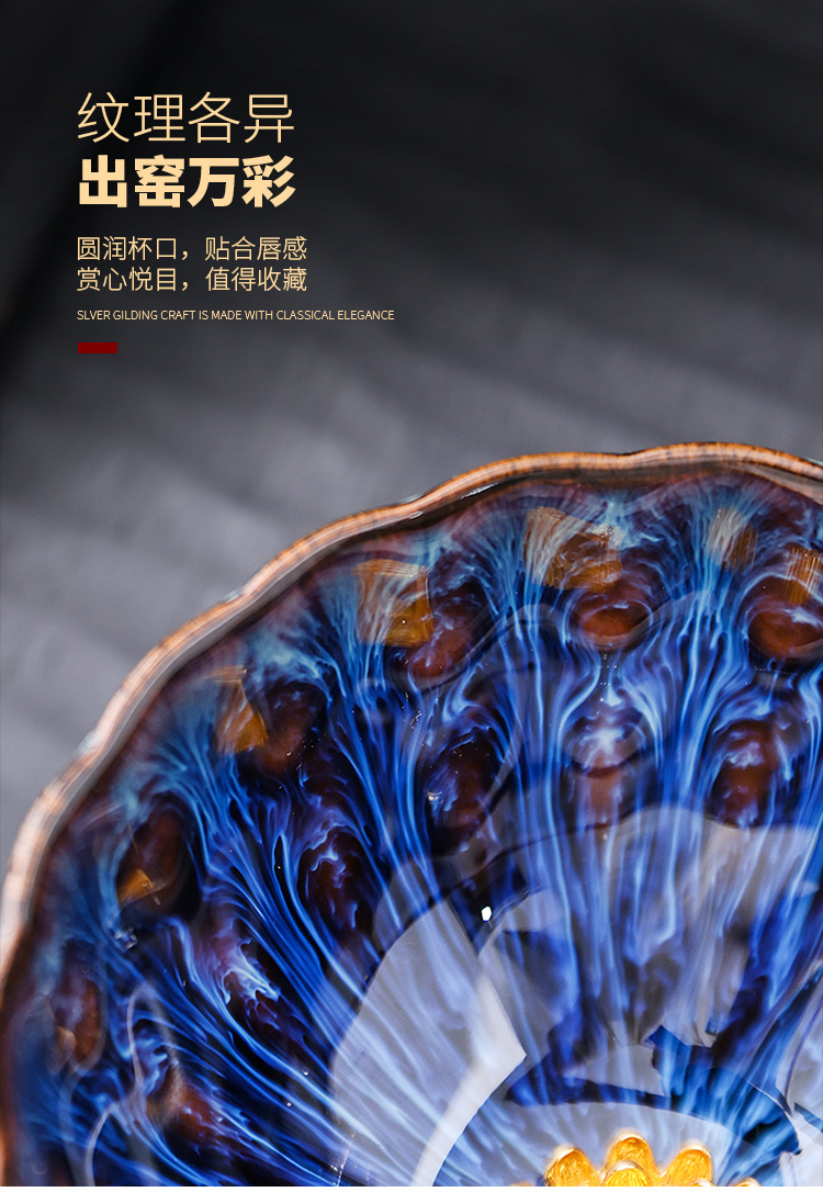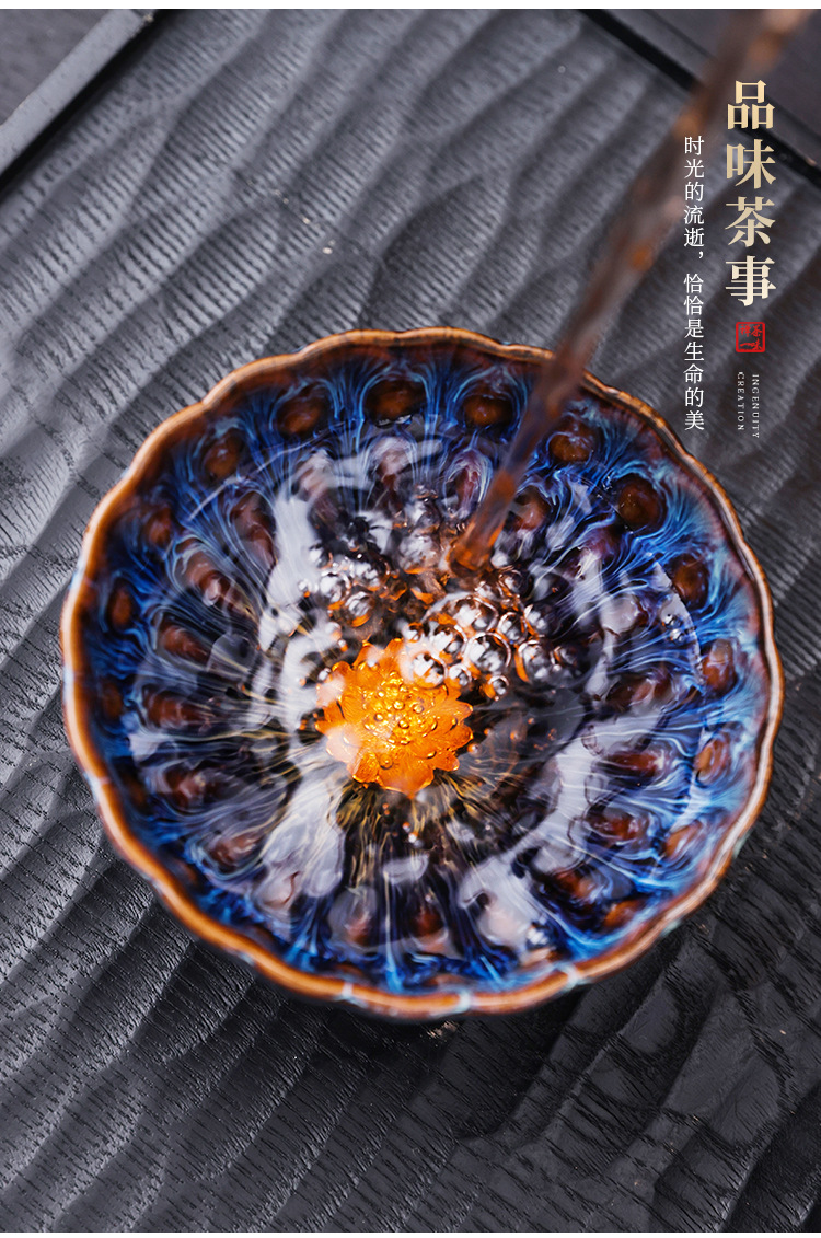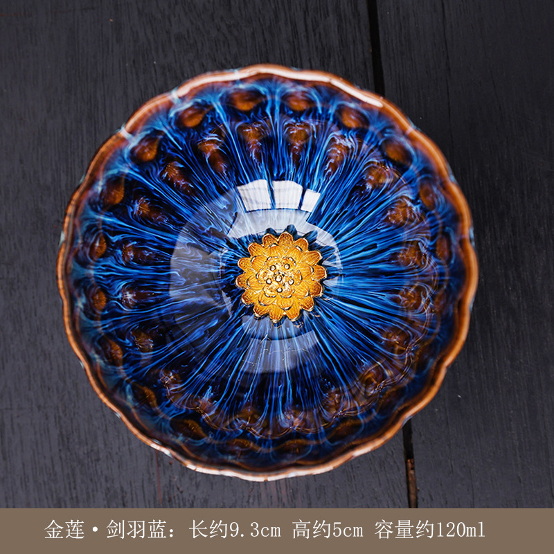 敦煌莲花茶杯主人杯建盏陶瓷功夫茶盏窑变结婚对杯家用送老外礼盒