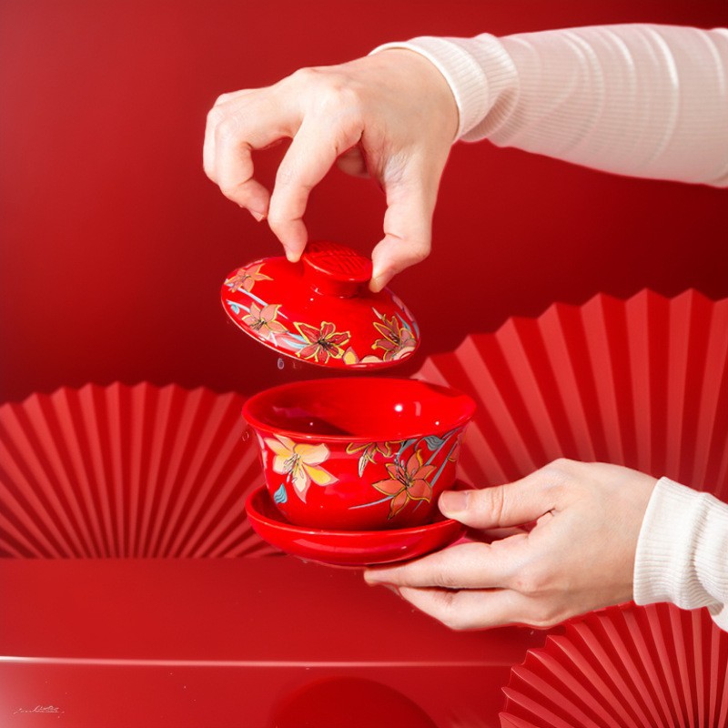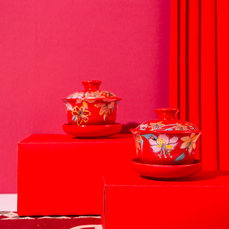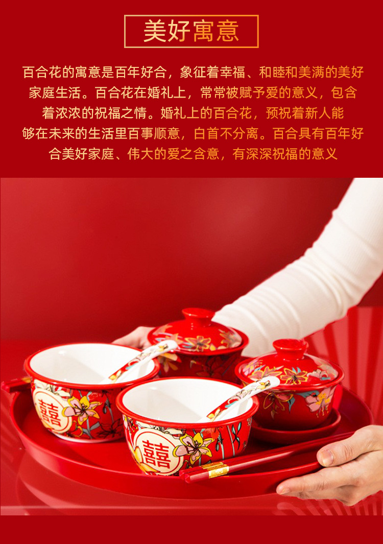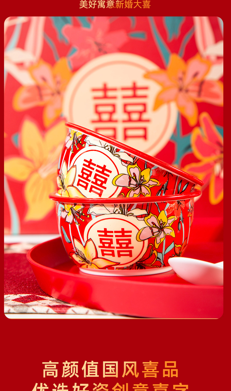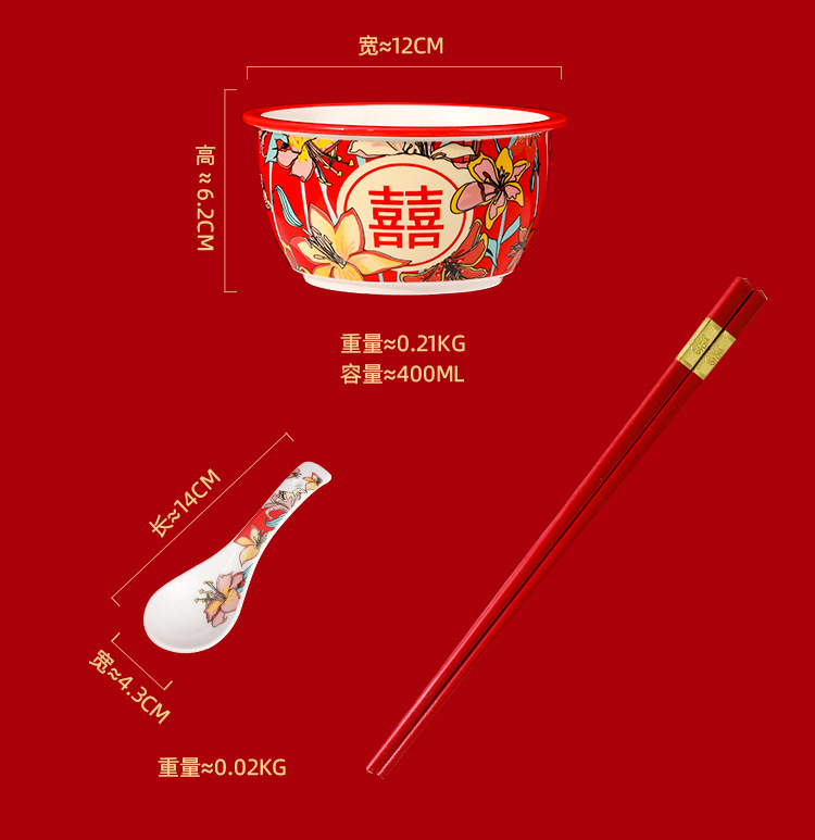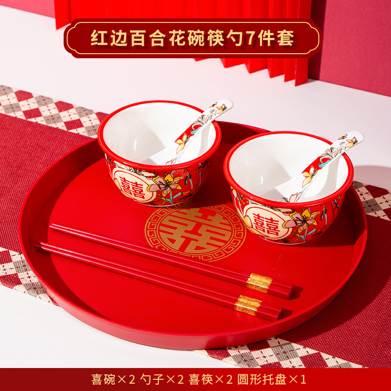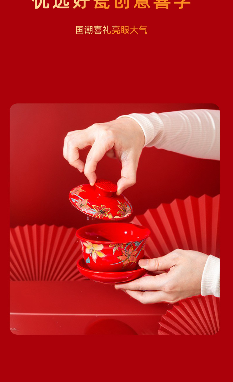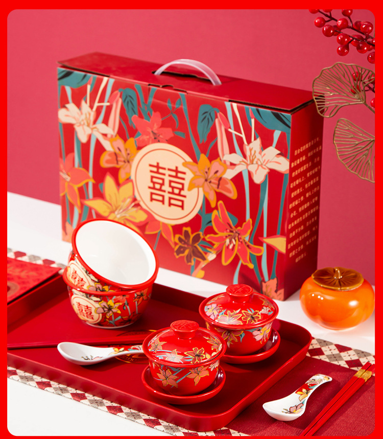 婚庆陶瓷餐具结婚用品敬茶杯新人改口一对红色茶具喜碗筷茶杯套装