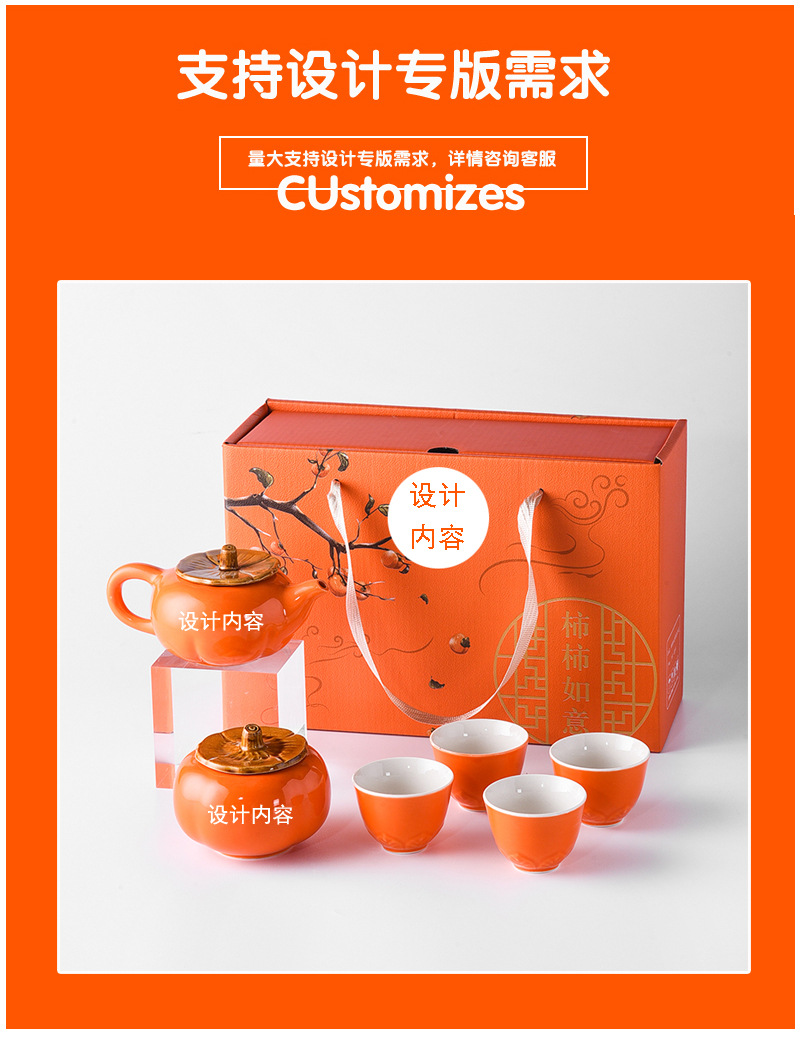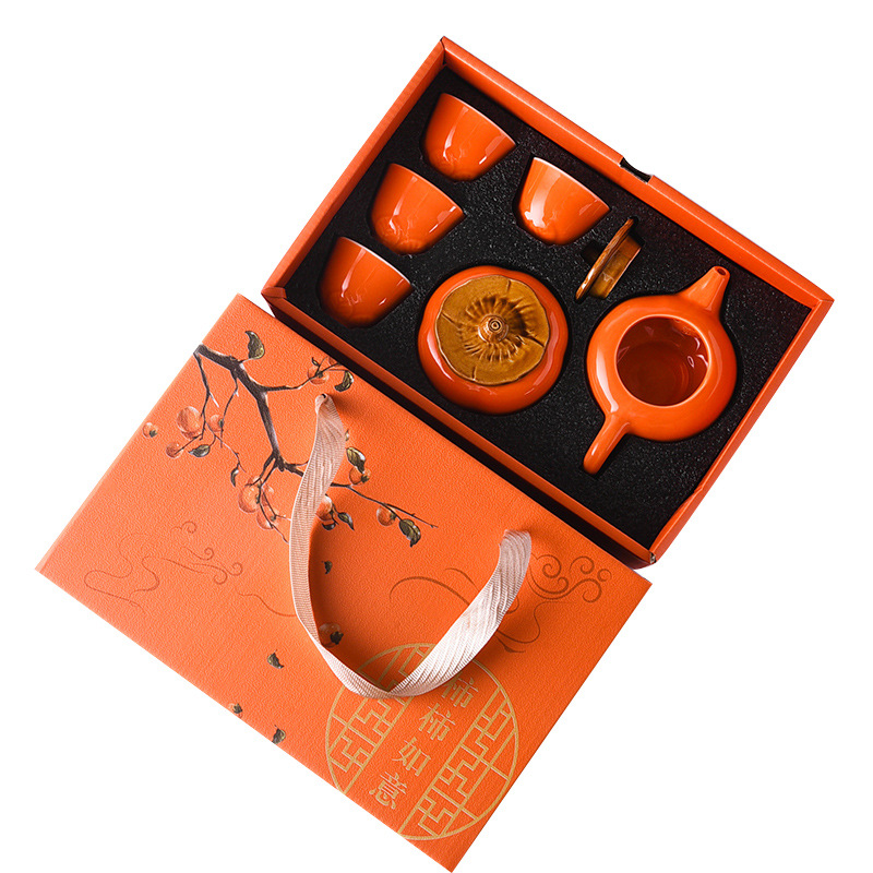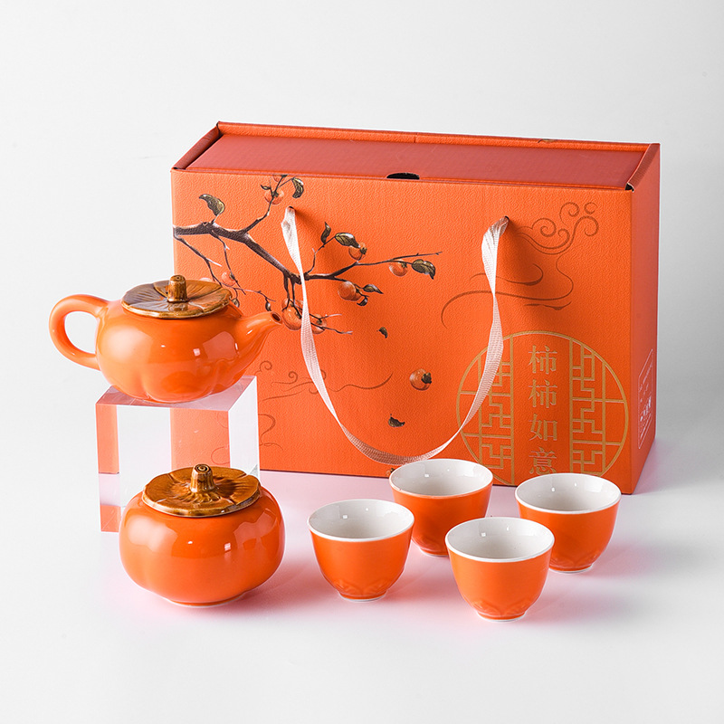 柿柿如意茶具套装柿子陶瓷茶壶茶杯橙色结婚伴手礼高档礼品礼盒装