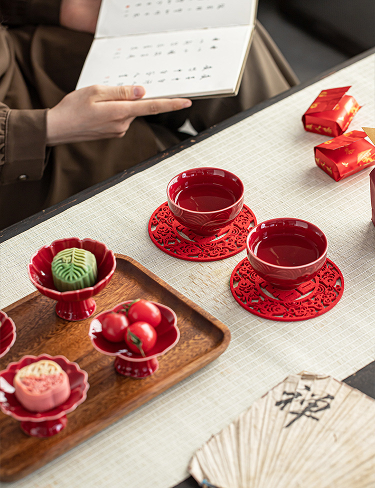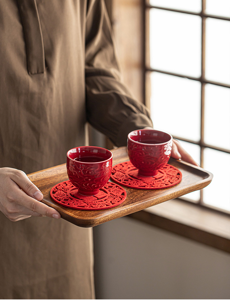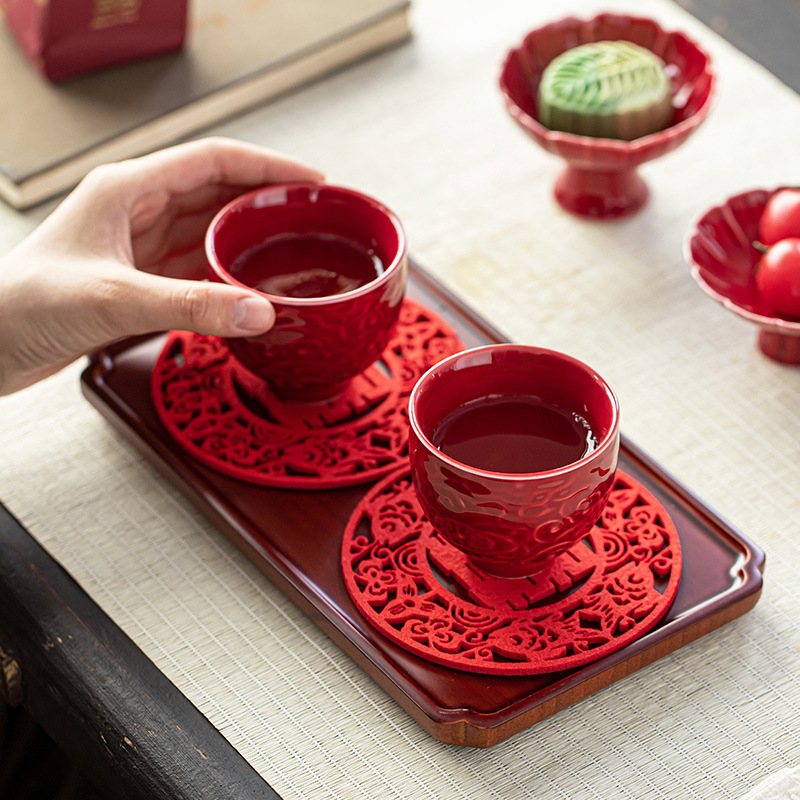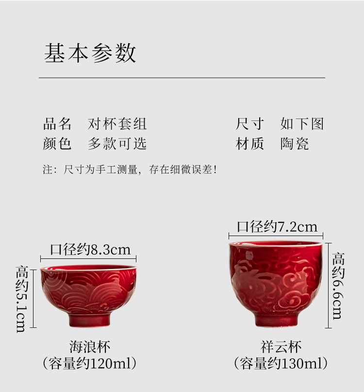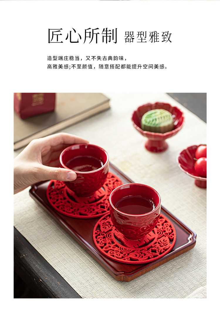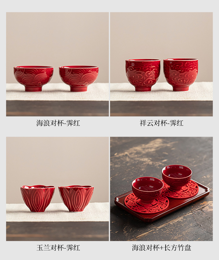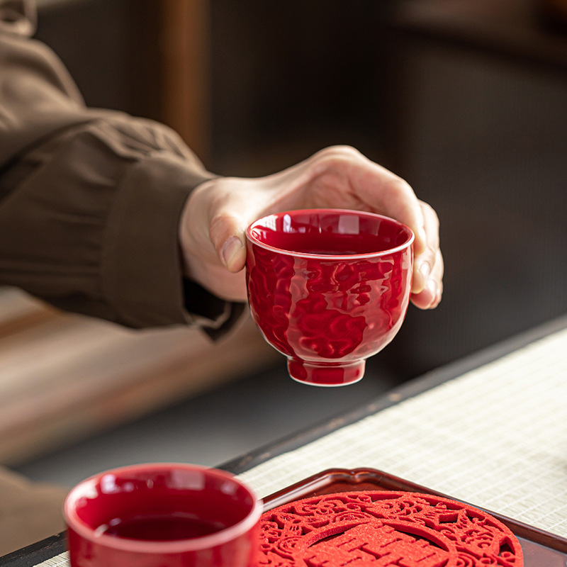 陶瓷复古主人杯泡茶杯个人杯茶盏茶室品茗杯结婚红色喜庆敬茶杯子