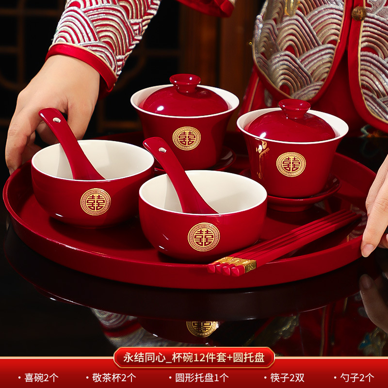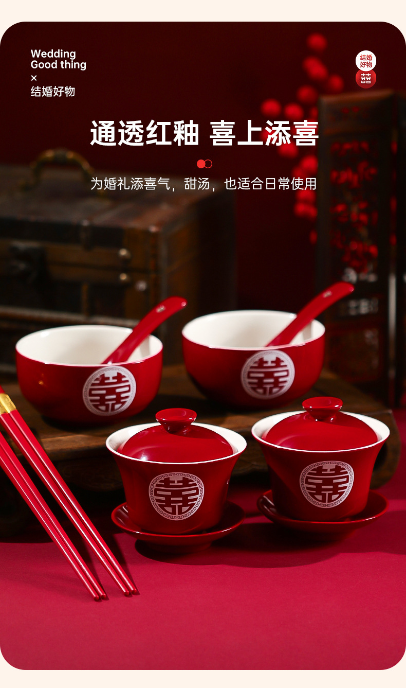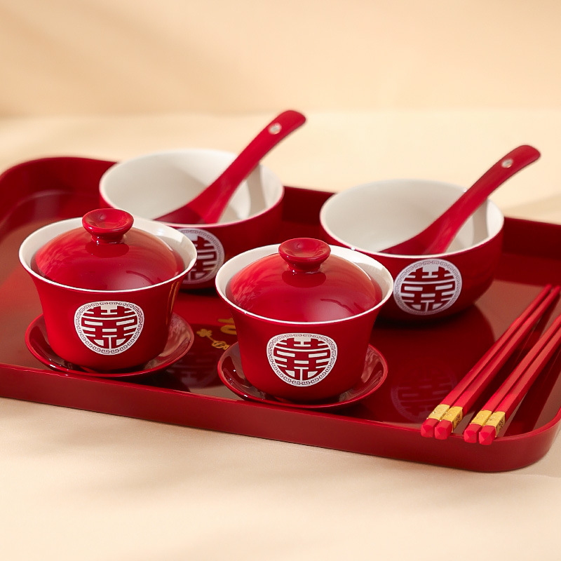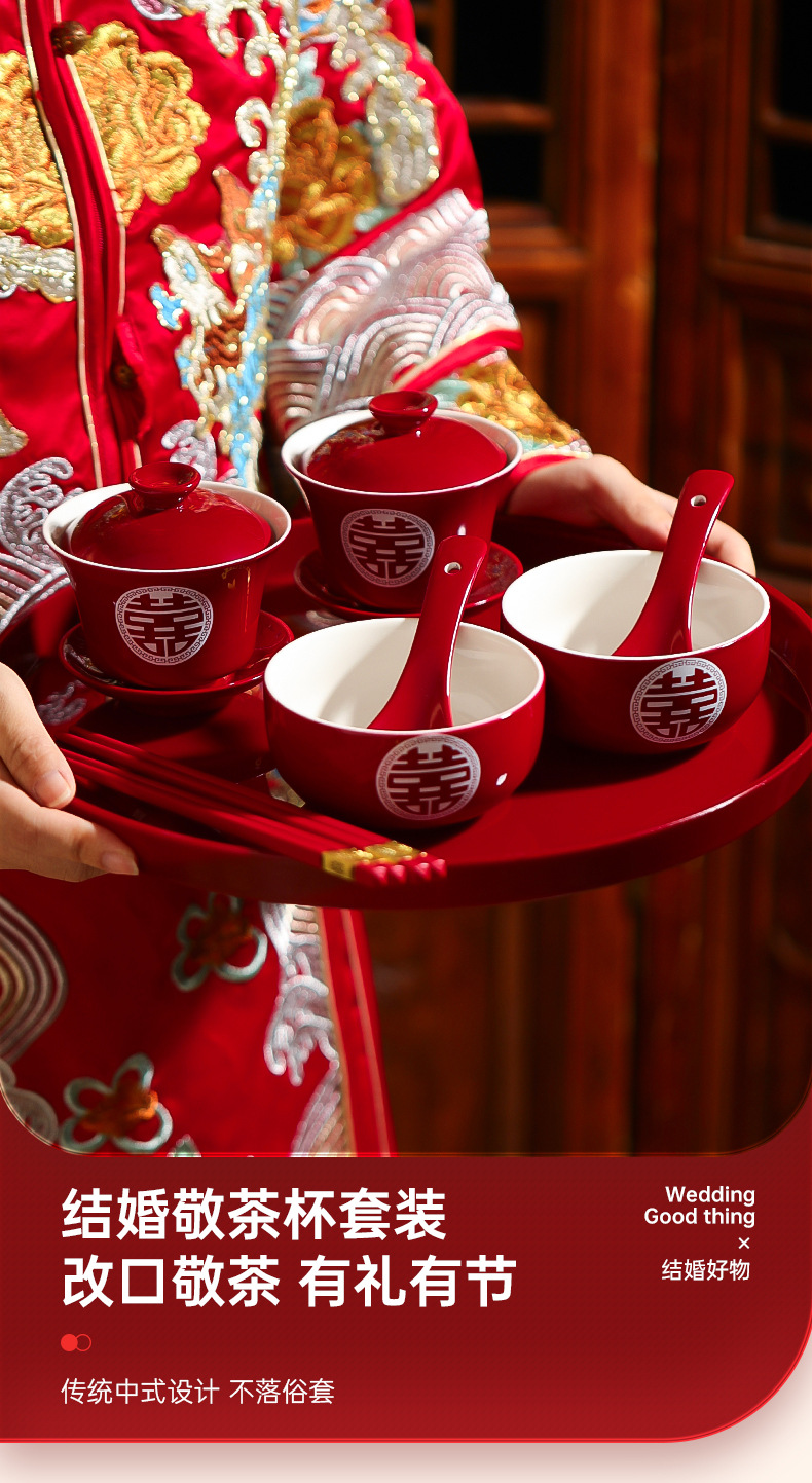 敬茶杯子结婚喜碗婚礼改口敬酒茶具一对红色碗筷套装陪嫁用品大全