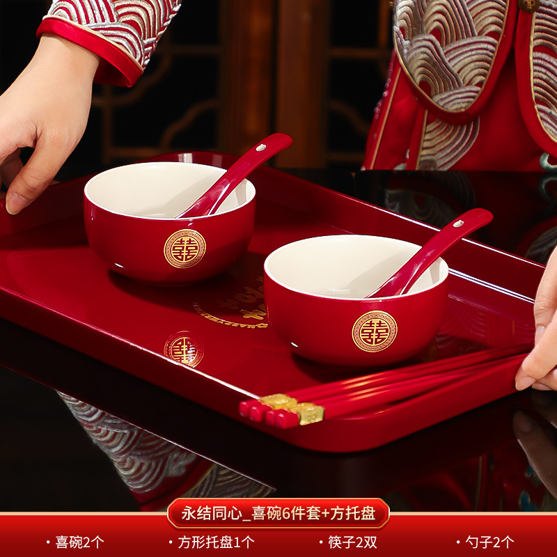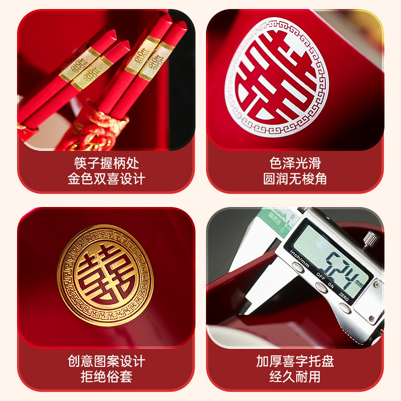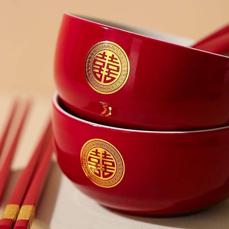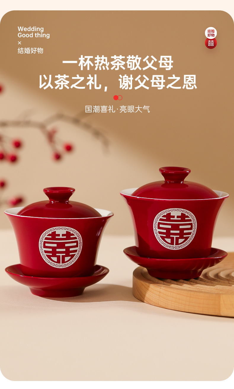 敬茶杯子结婚喜碗婚礼改口敬酒茶具一对红色碗筷套装陪嫁用品大全