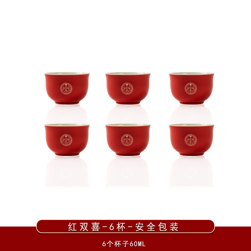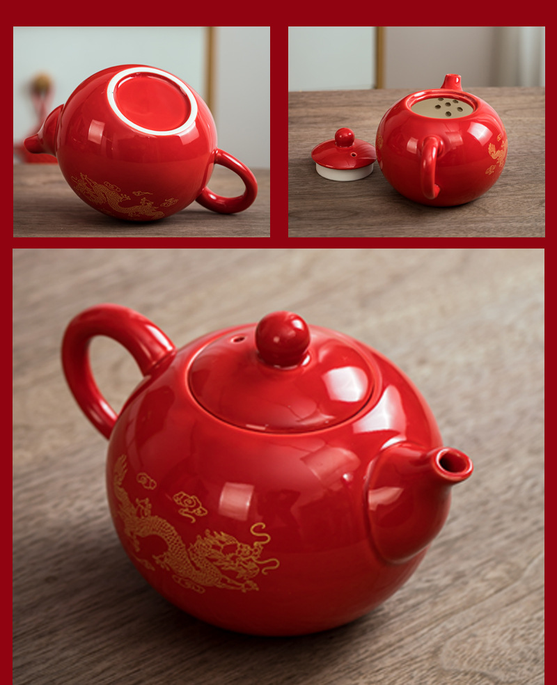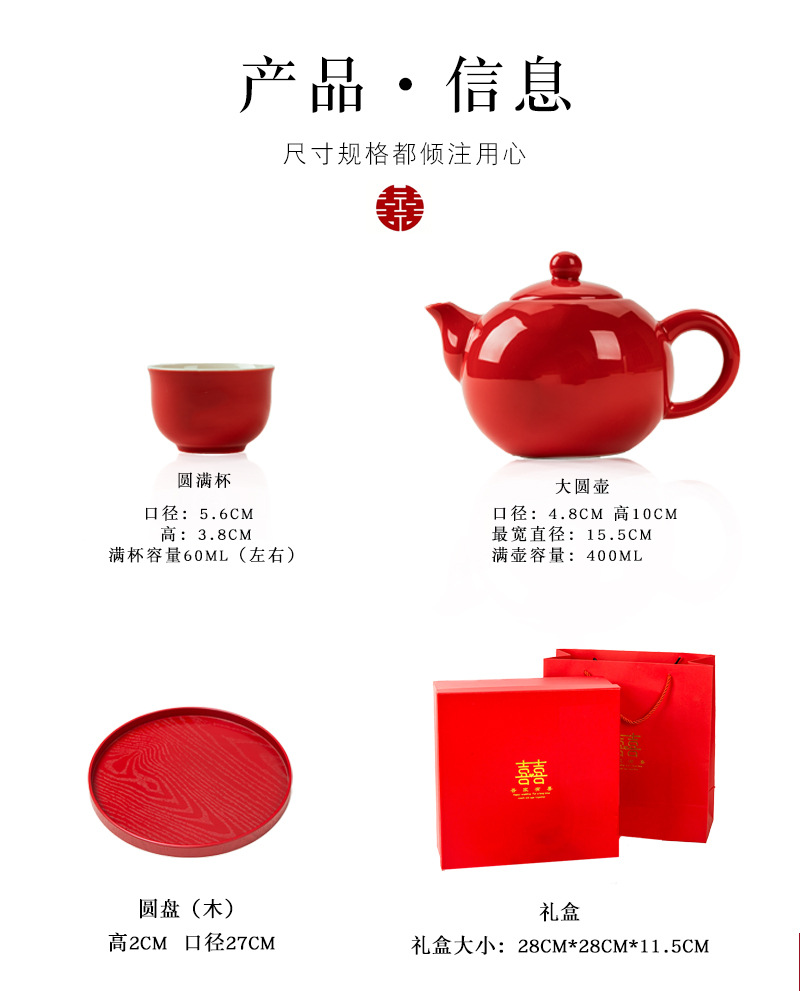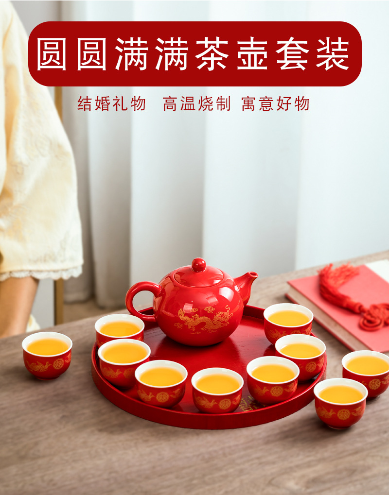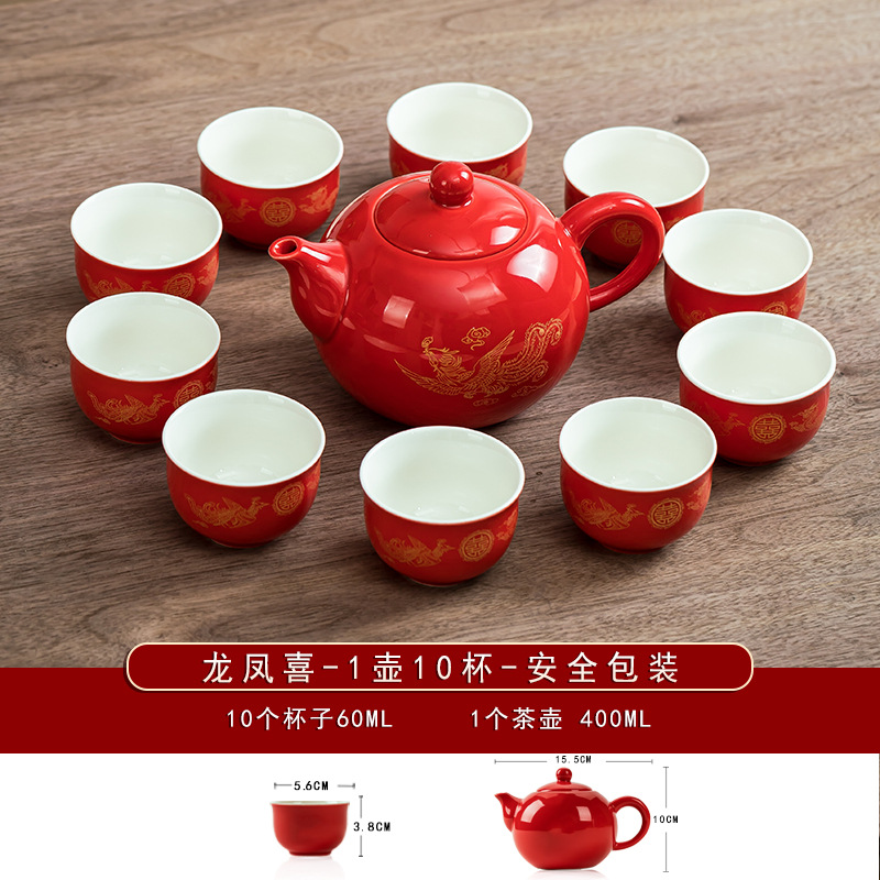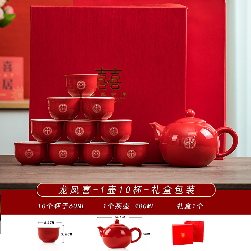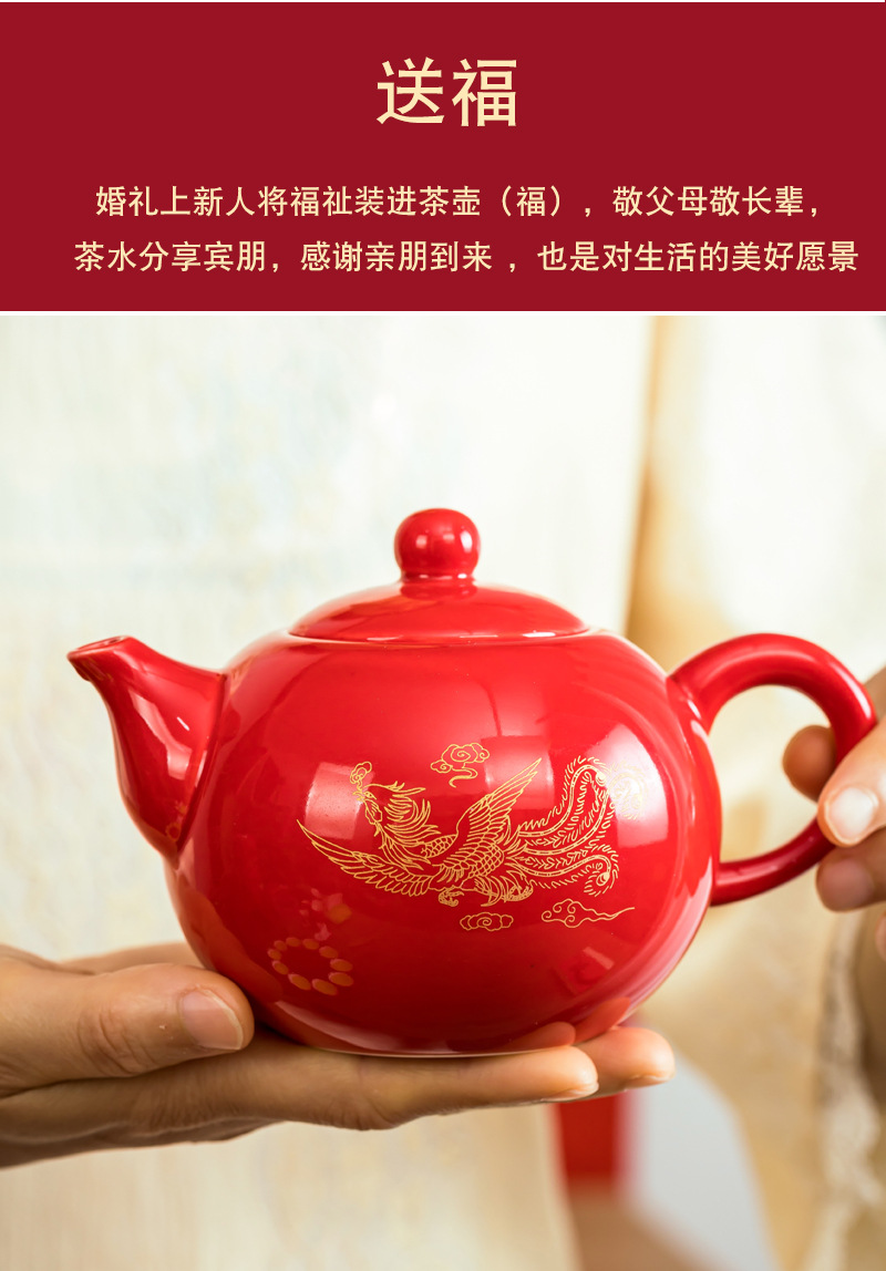 结婚茶具套装双喜壶组合婚礼敬茶杯红色陶瓷婚庆礼品托盘改口茶杯