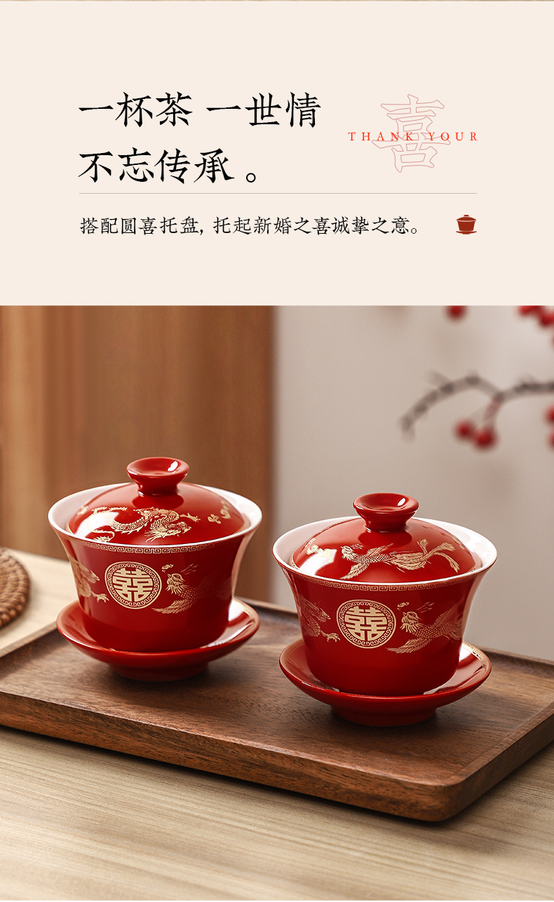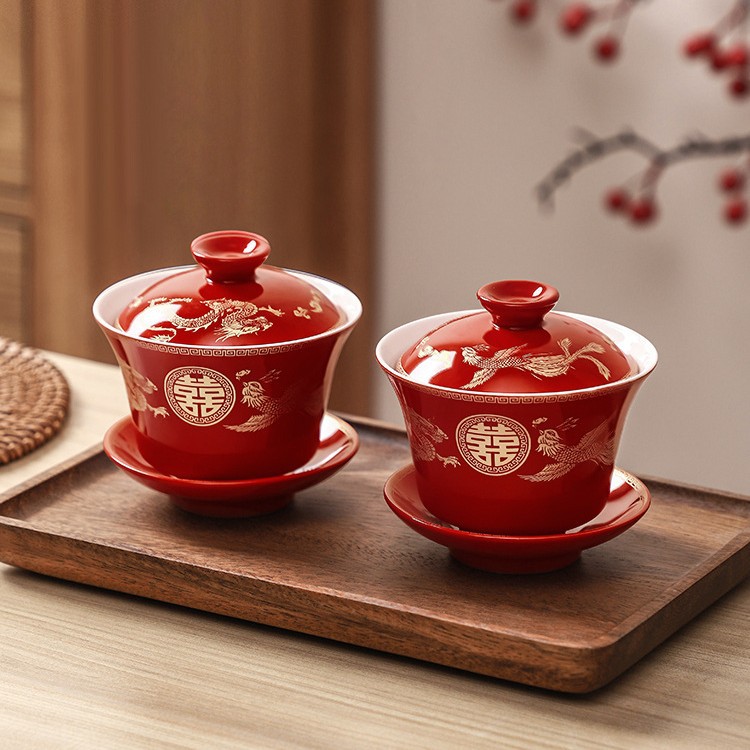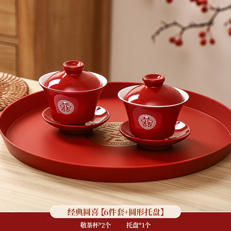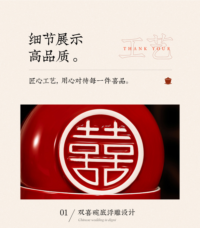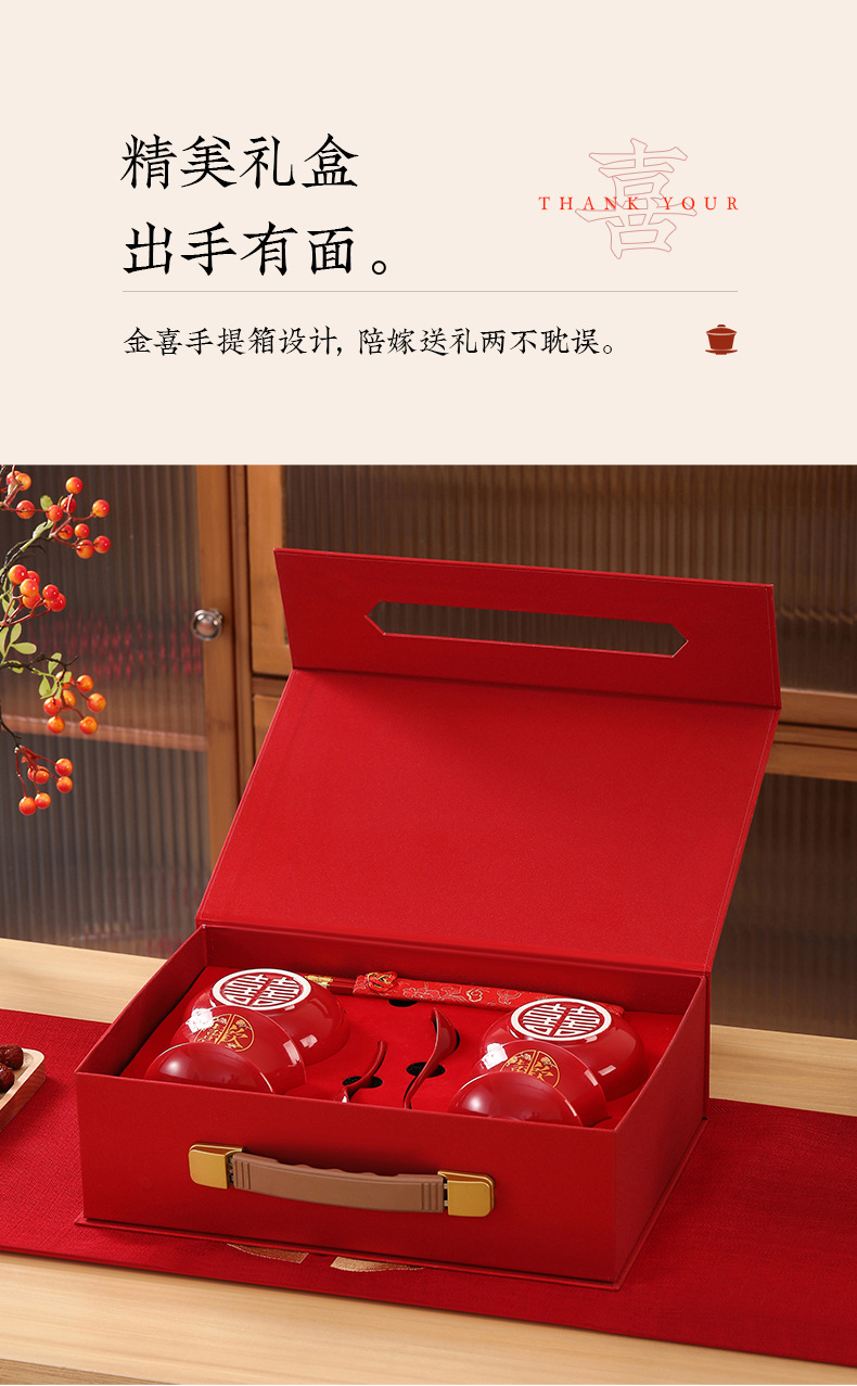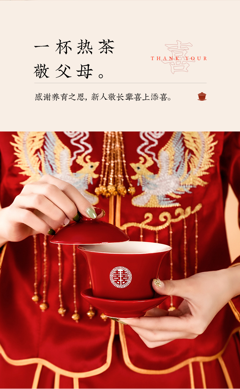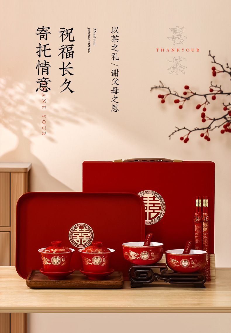 结婚碗筷套装喜碗改口敬酒茶具敬茶杯一对碗红色婚礼陪嫁用品大全