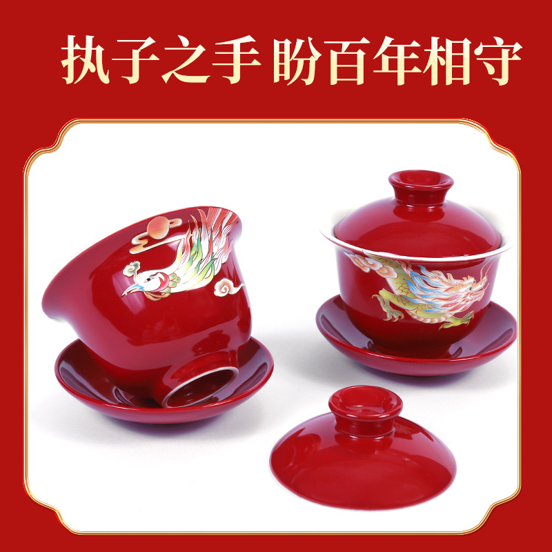 新人改口杯套装结婚敬茶杯陶瓷茶具茶碗喜碗敬茶杯婚礼用品