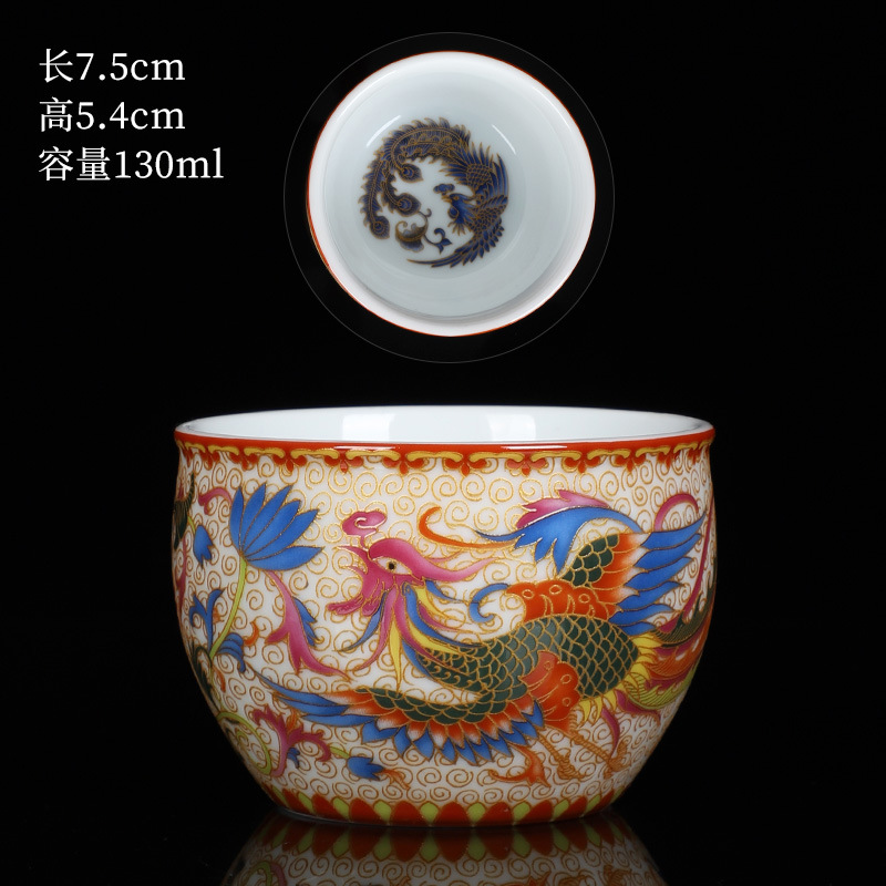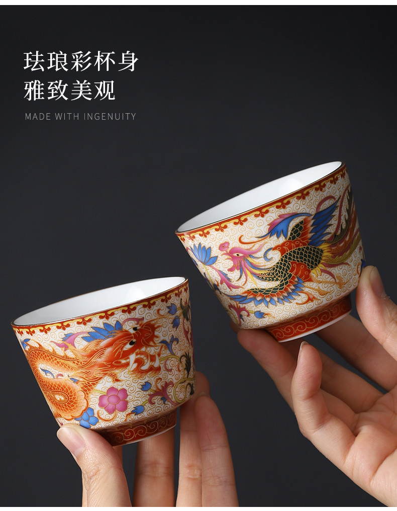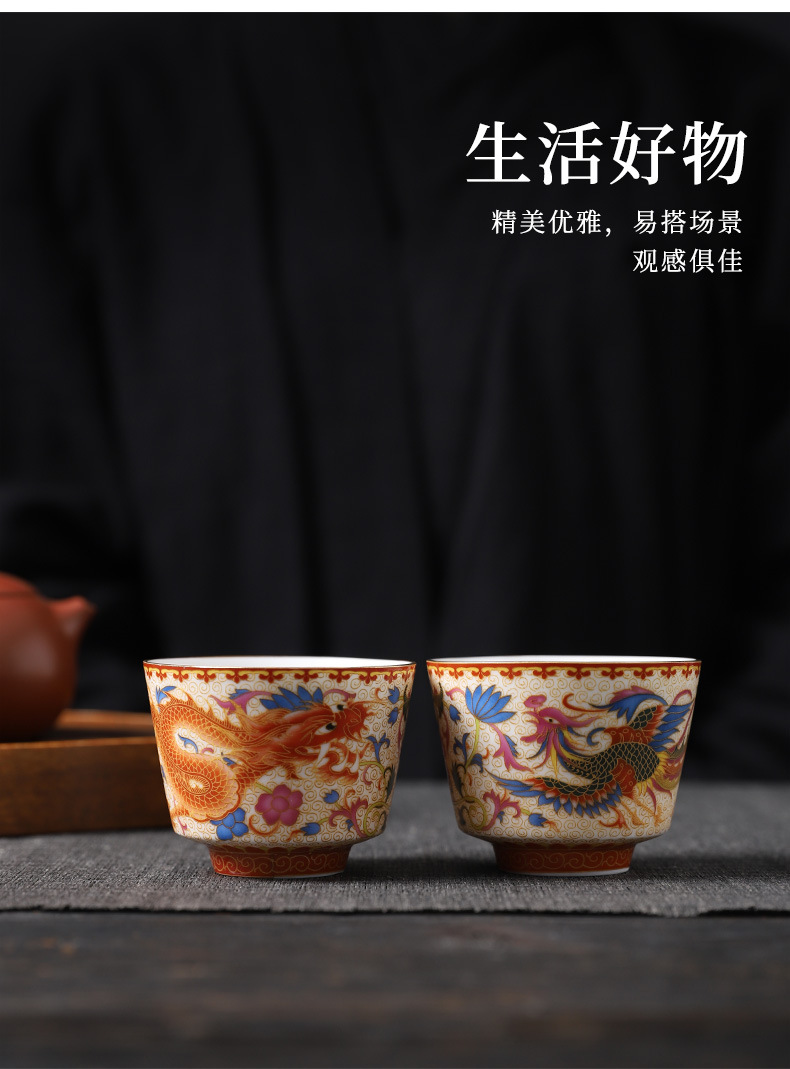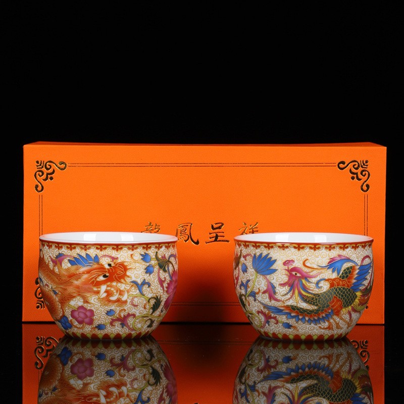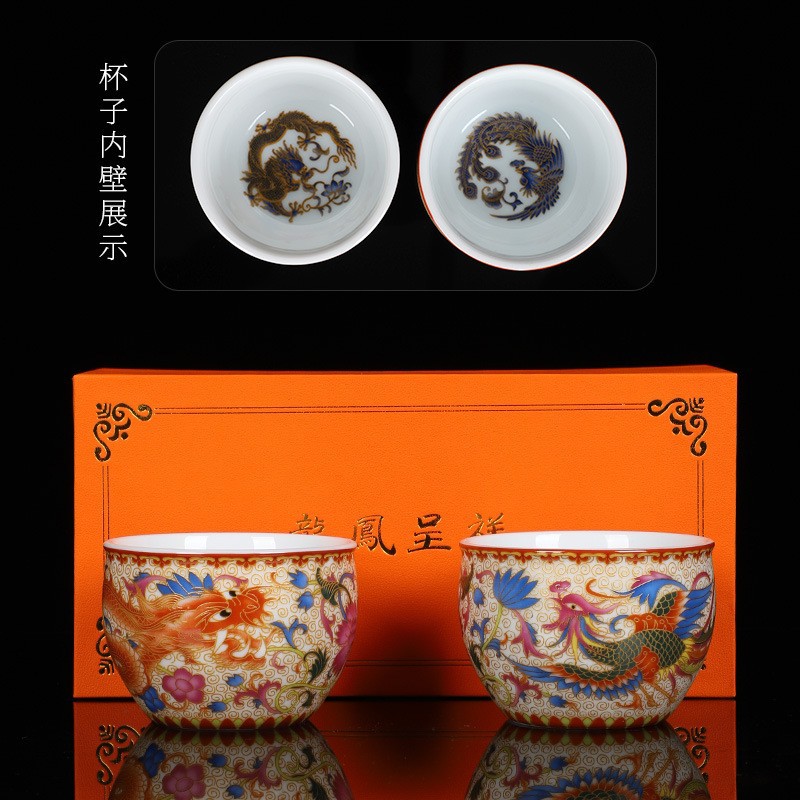 景德镇珐琅彩茶杯功夫茶盏龙凤主人杯情侣一对单杯敬茶杯结婚批发