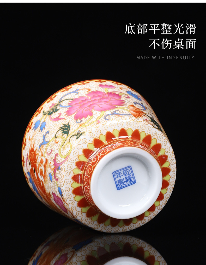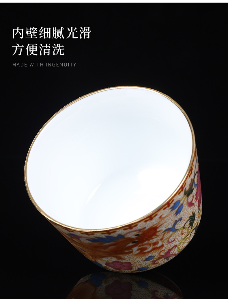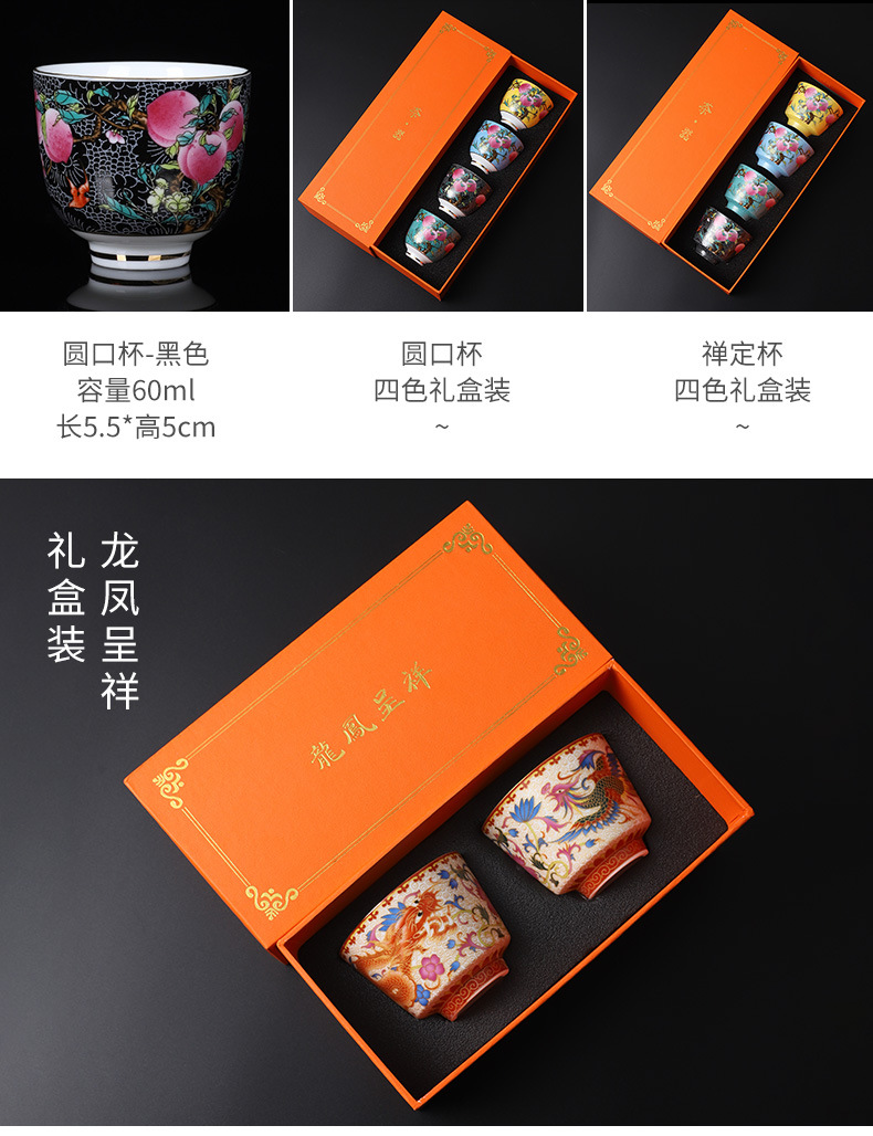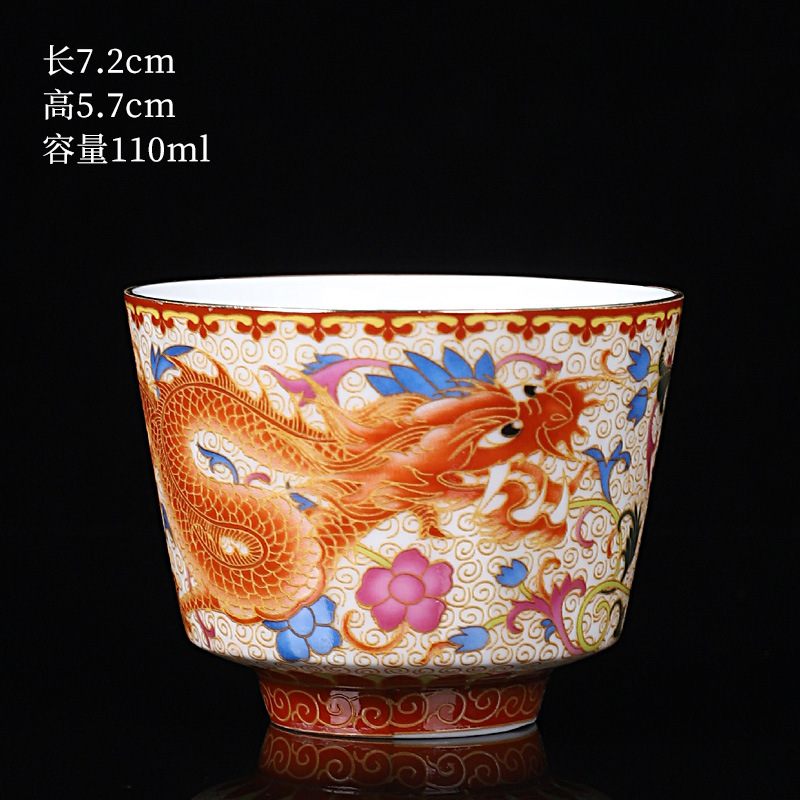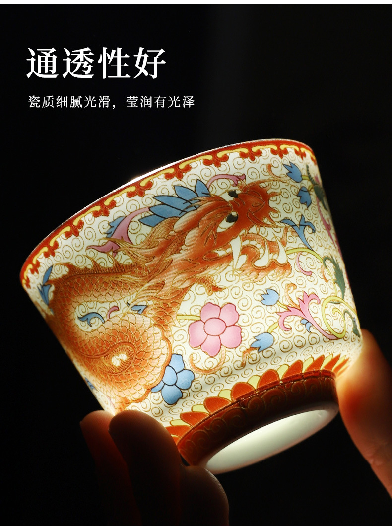 景德镇珐琅彩茶杯功夫茶盏龙凤主人杯情侣一对单杯敬茶杯结婚批发