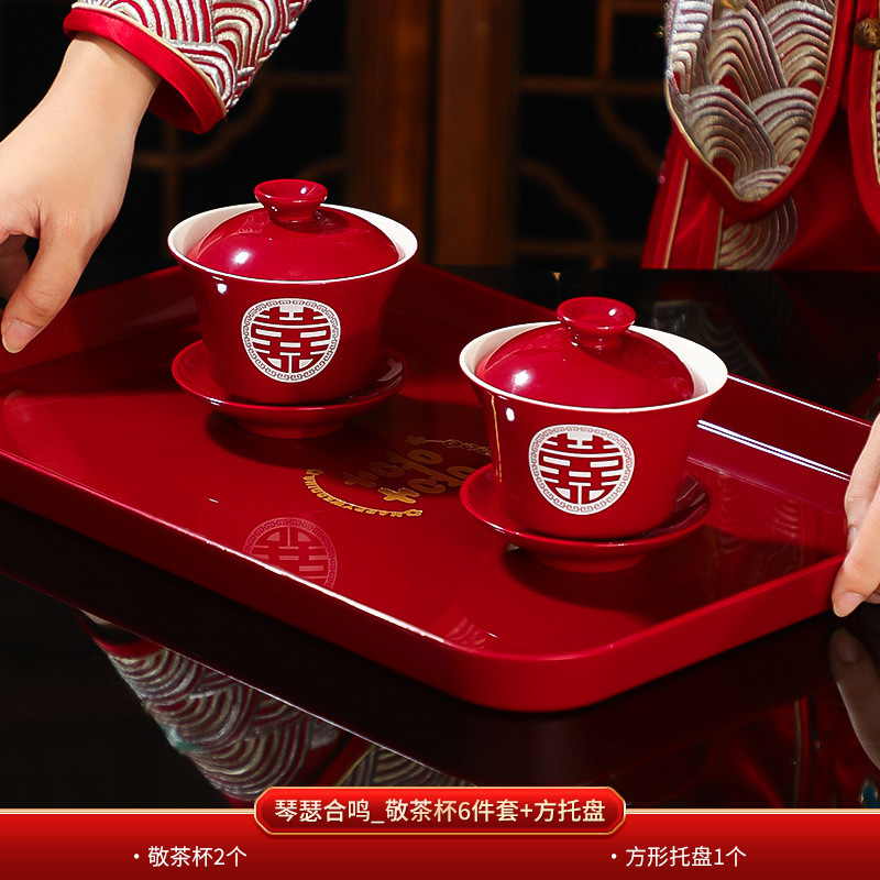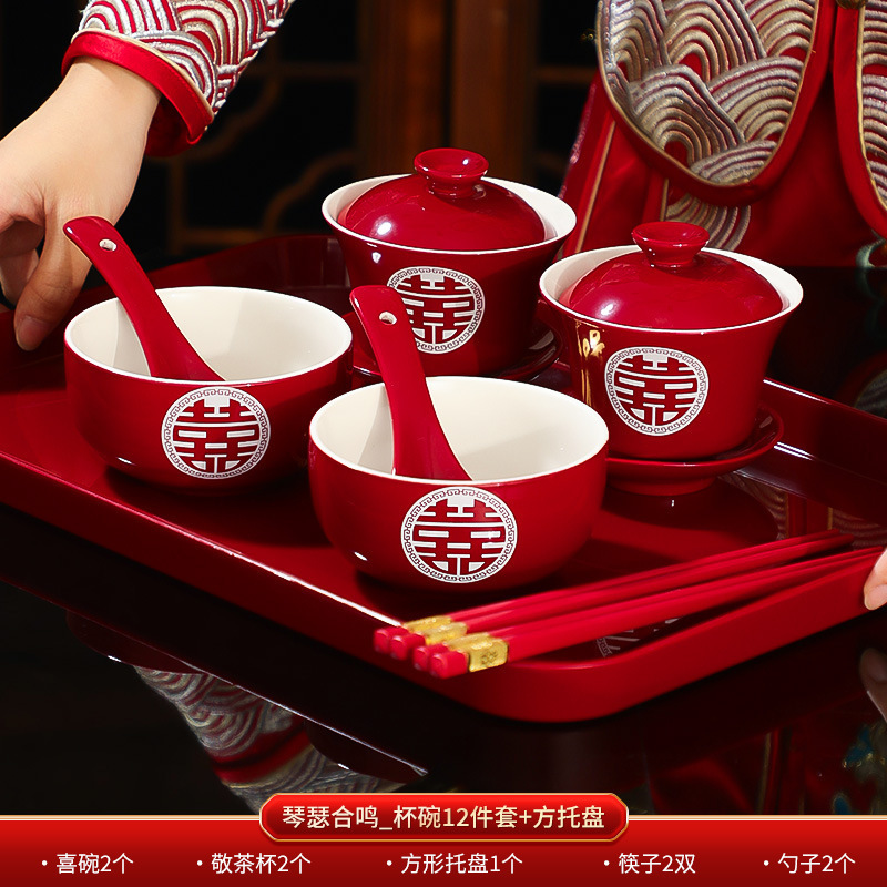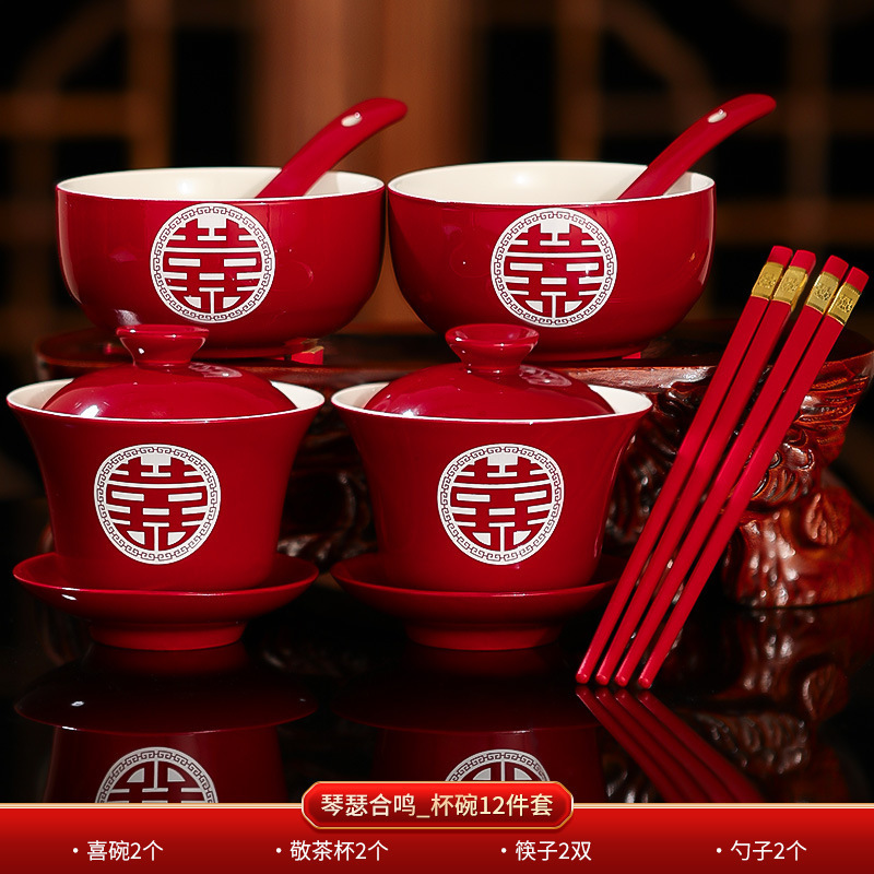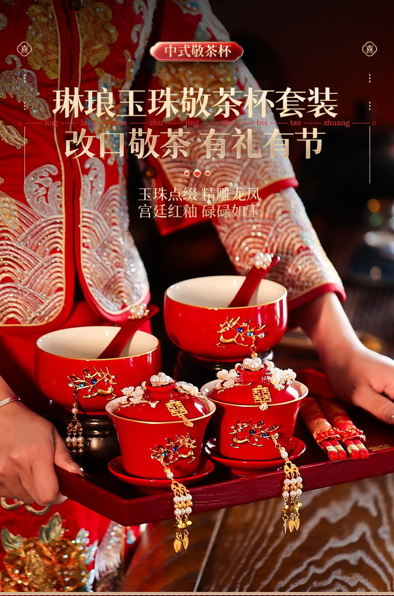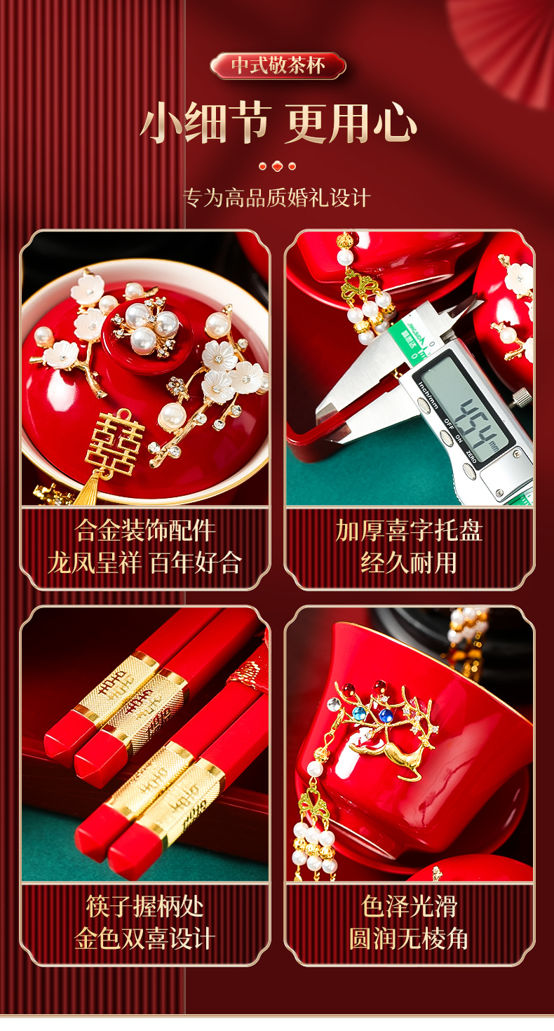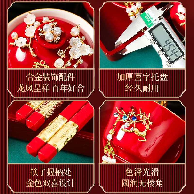 结婚敬茶杯套装一对喜碗筷红色婚礼新人茶具改口敬酒陪嫁用品大全