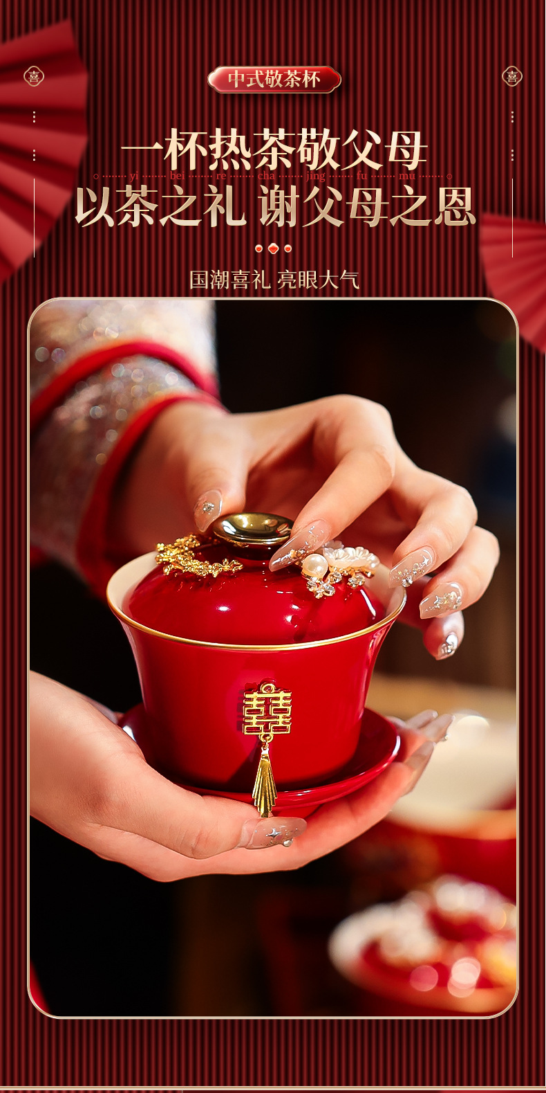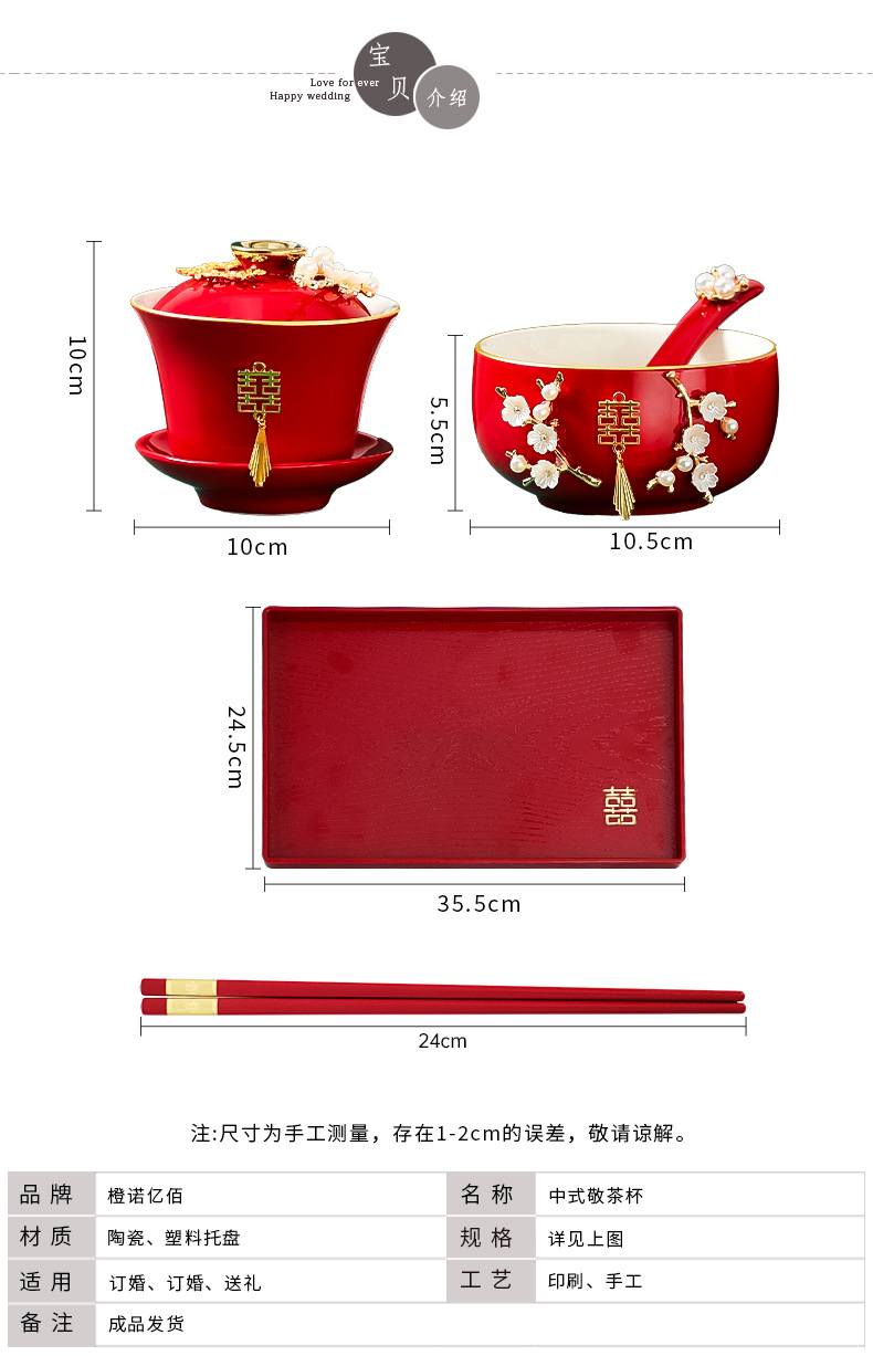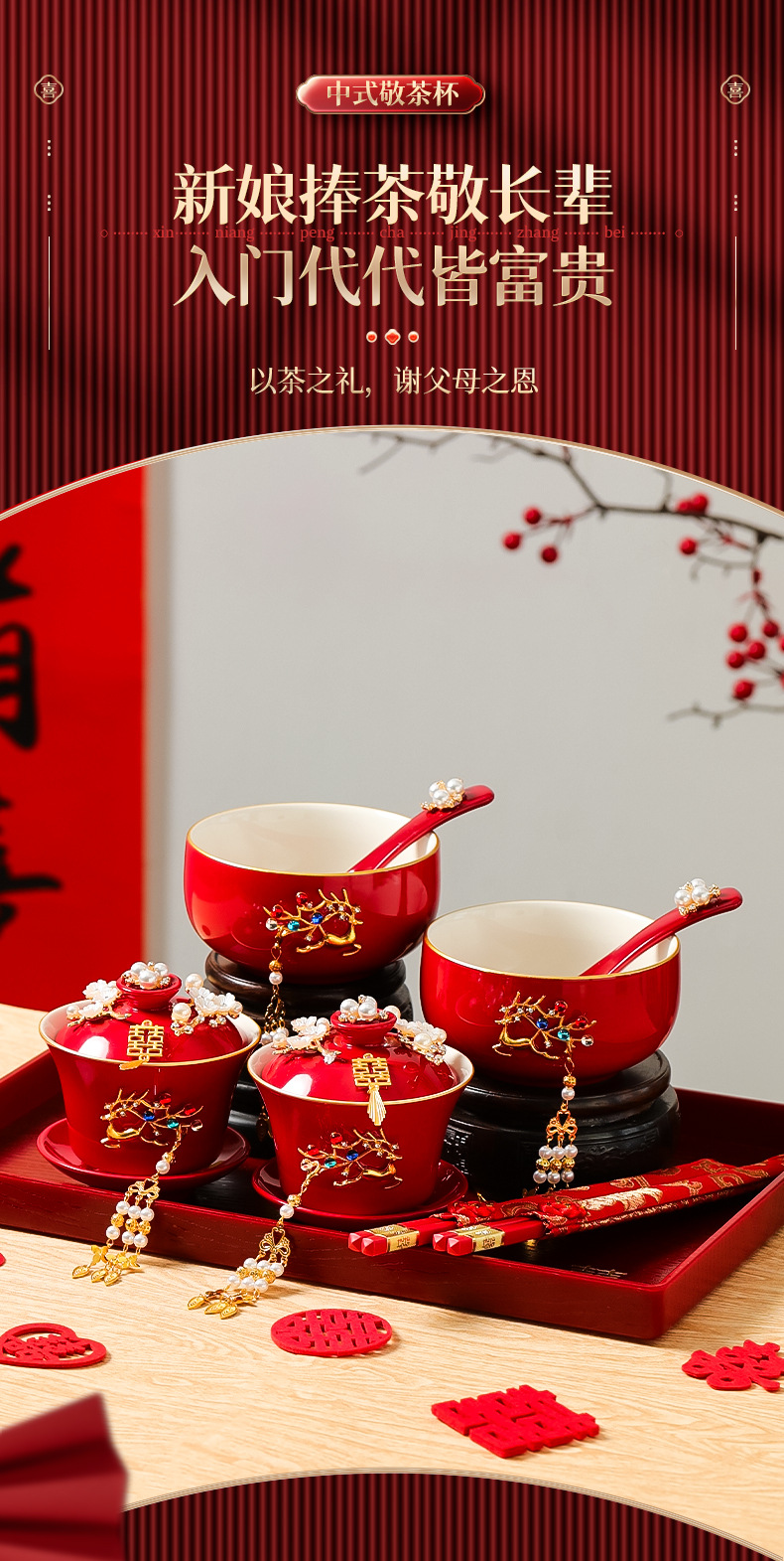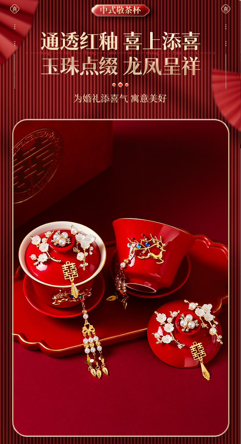 结婚敬茶杯套装一对喜碗筷红色婚礼新人茶具改口敬酒陪嫁用品大全