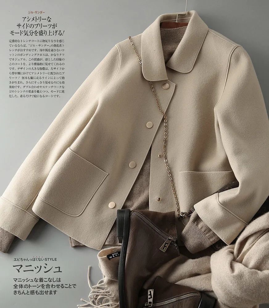 双面毛呢大衣女西装大衣2025秋冬季新款韩版翻领短款外套新品上衣