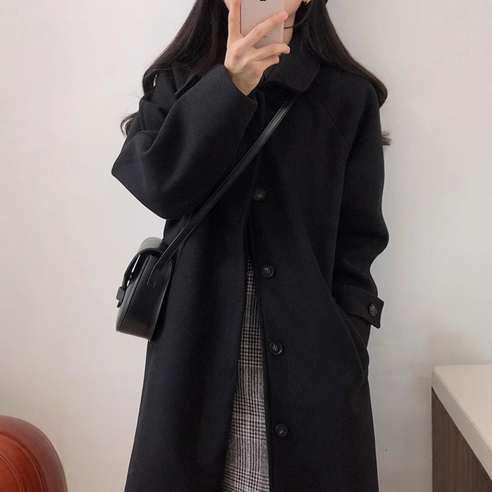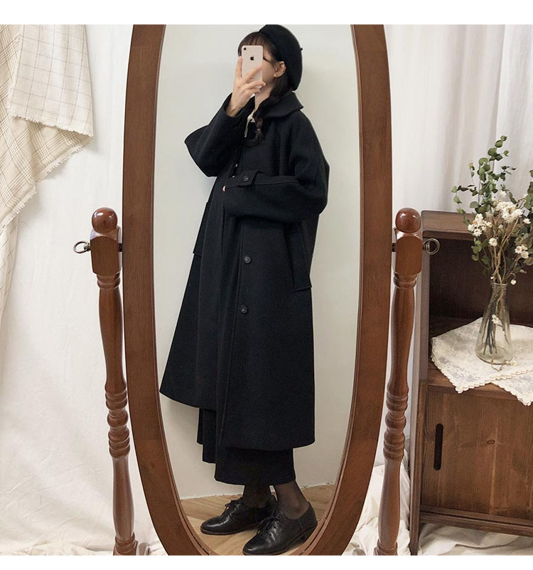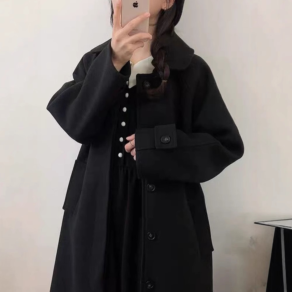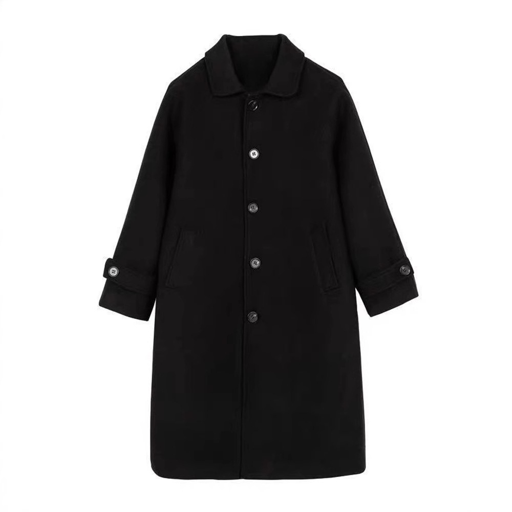 黑色毛呢外套2025秋冬季新款中长款双面呢子大衣赫本风小个子女装