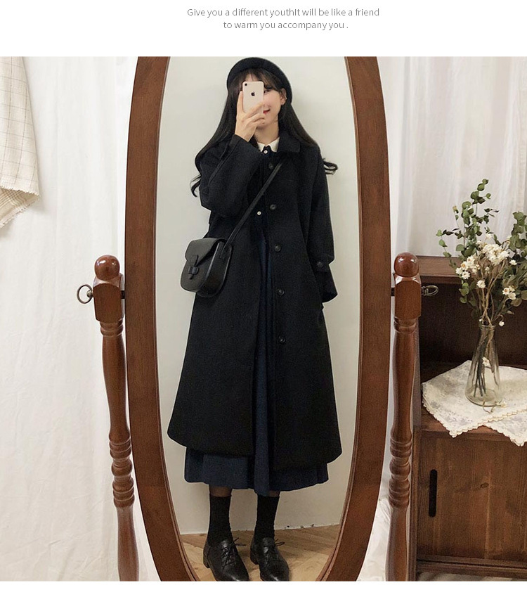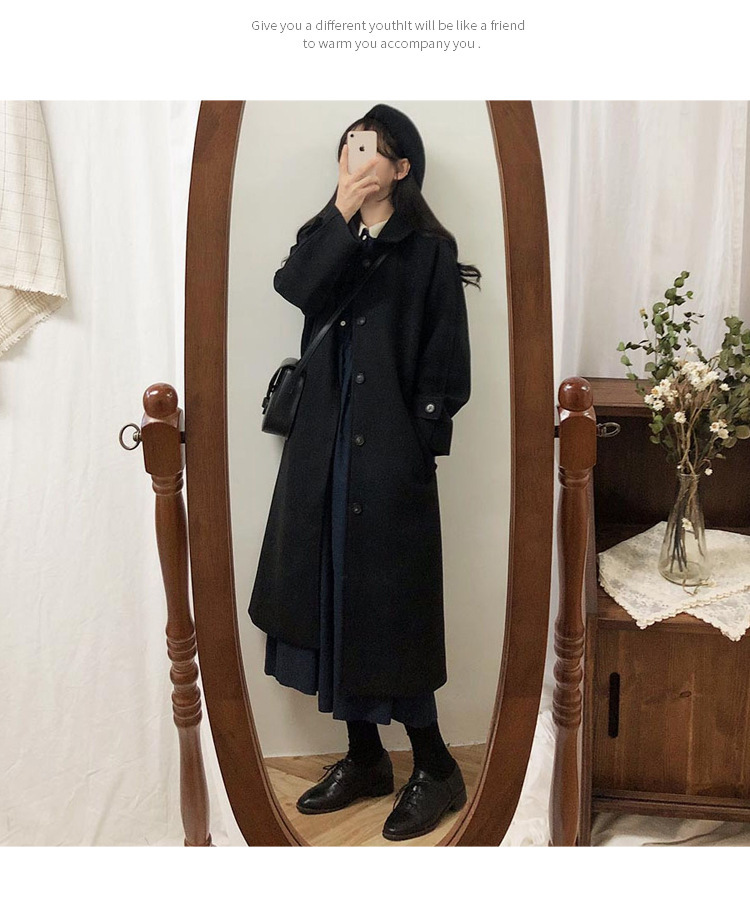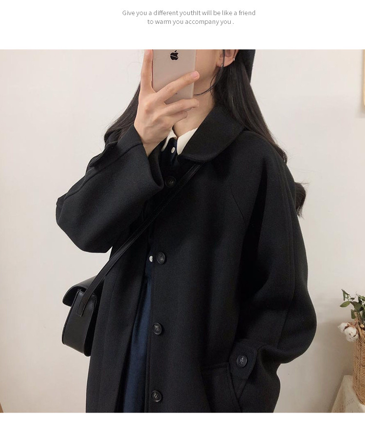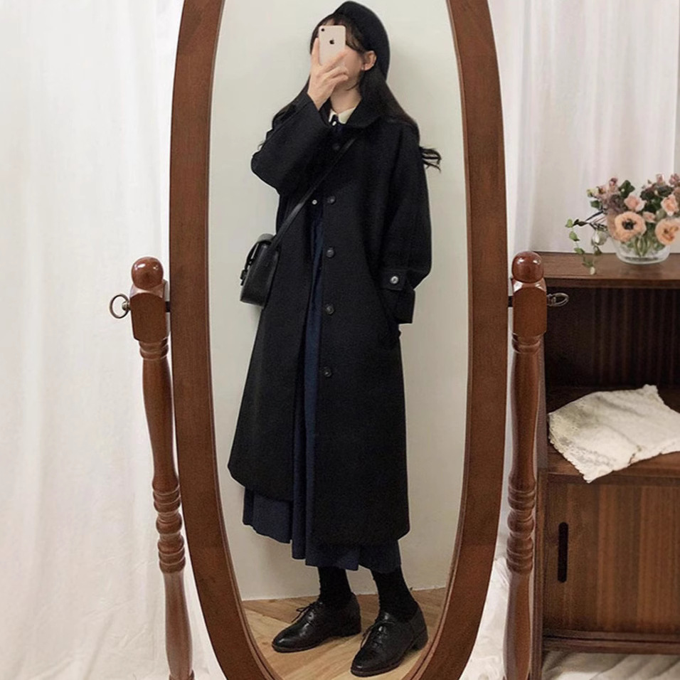 黑色毛呢外套2025秋冬季新款中长款双面呢子大衣赫本风小个子女装